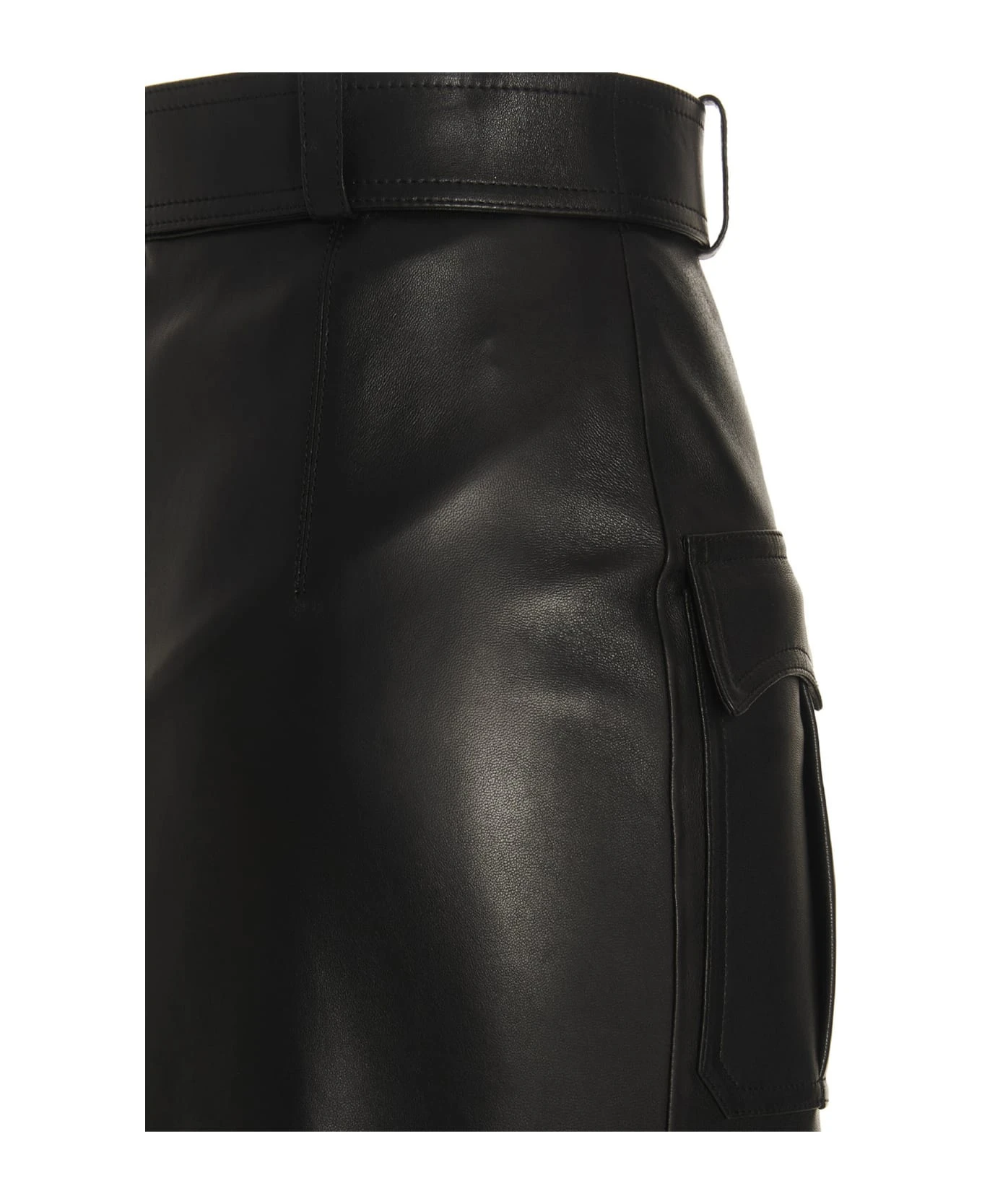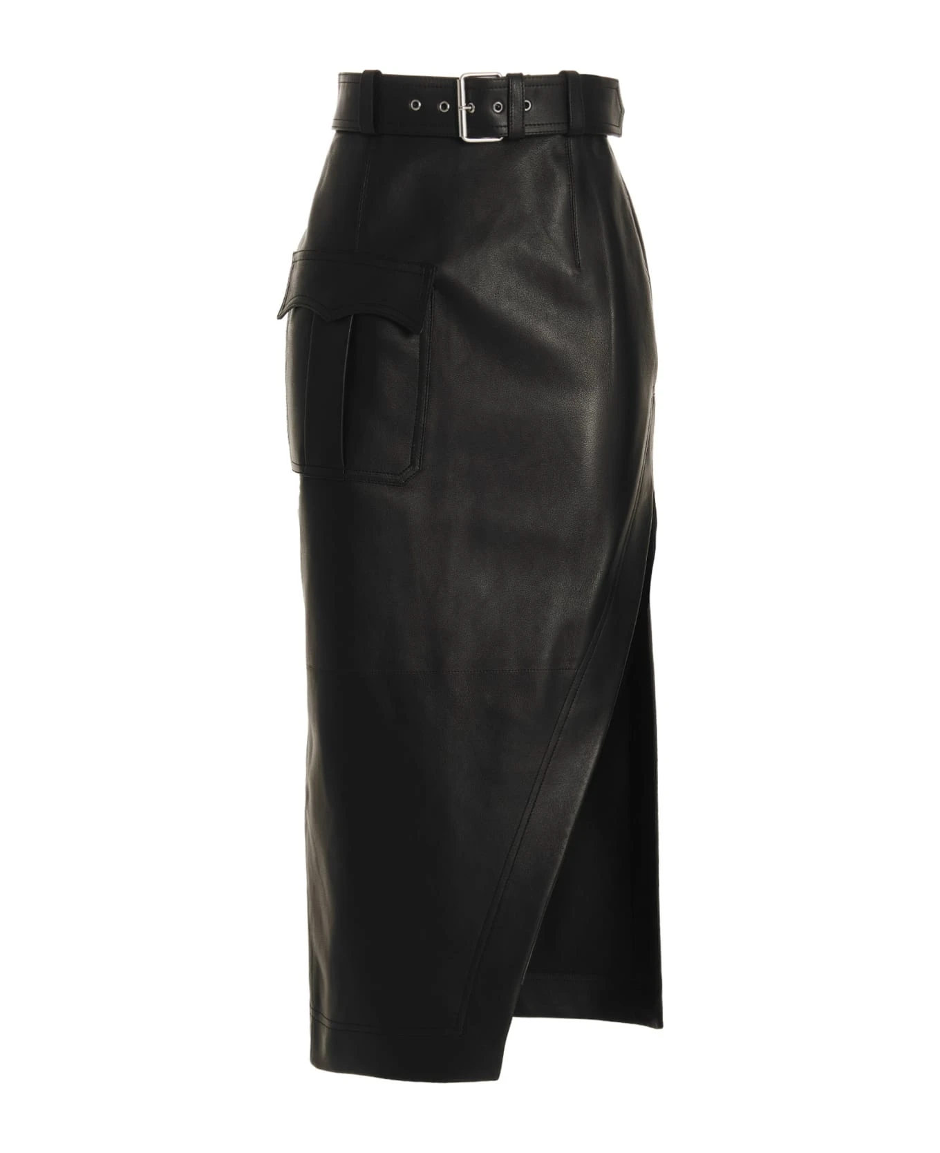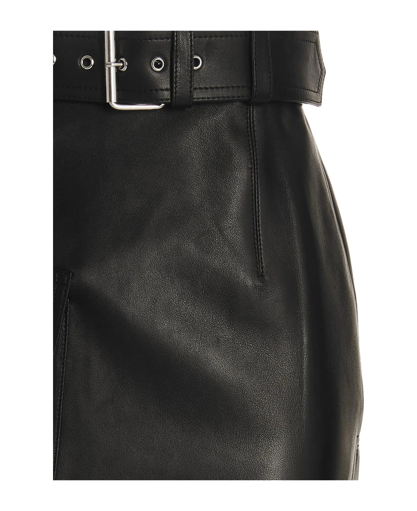 Slash’ leather skirt with back zip closure, belt at the waist and metal details.