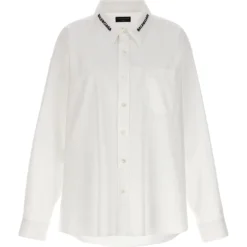 ‘Dropped Neckline’ cotton poplin shirt with front pocket, button closure, long cuffed sleeves, logo embroidery on the collar.