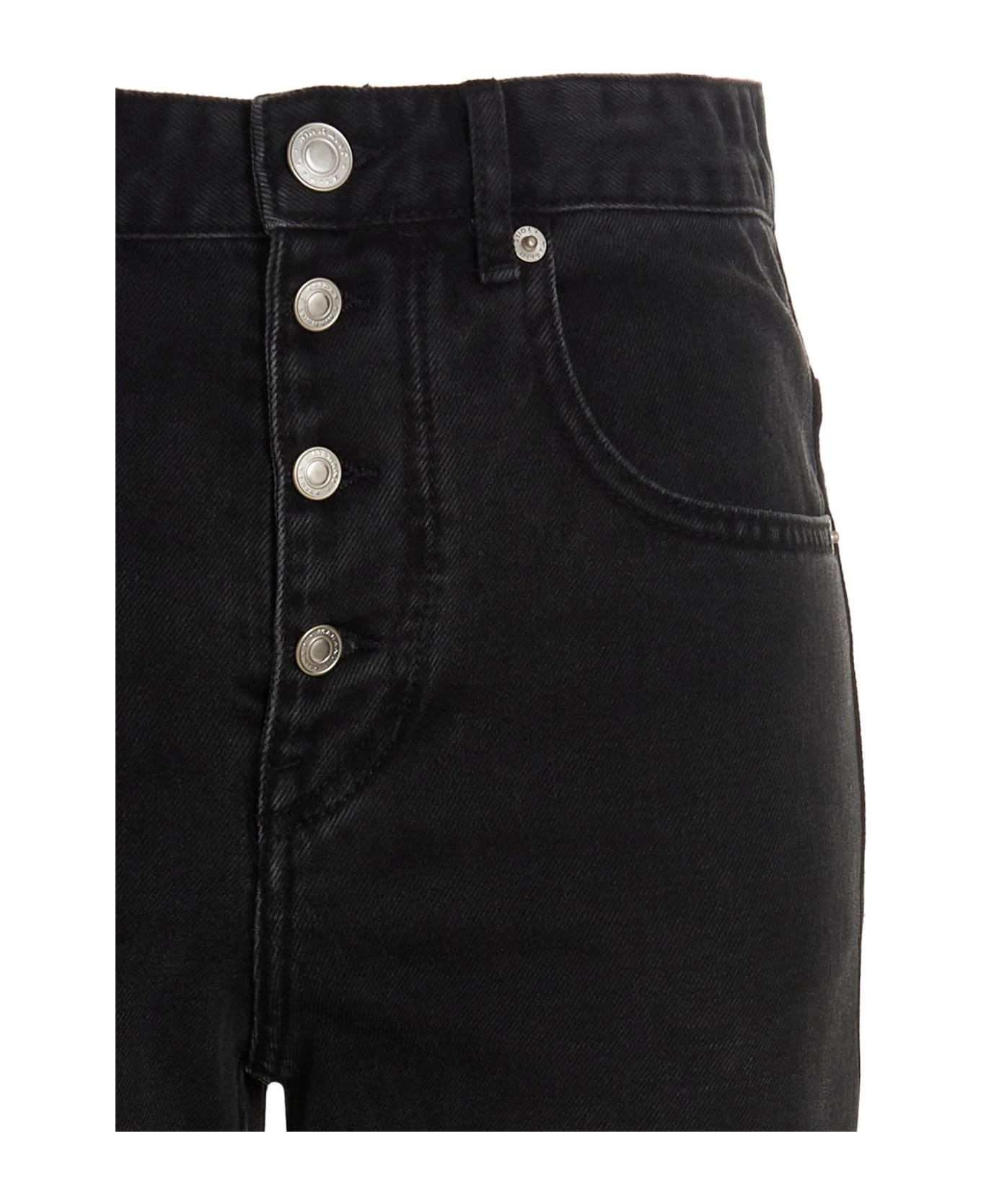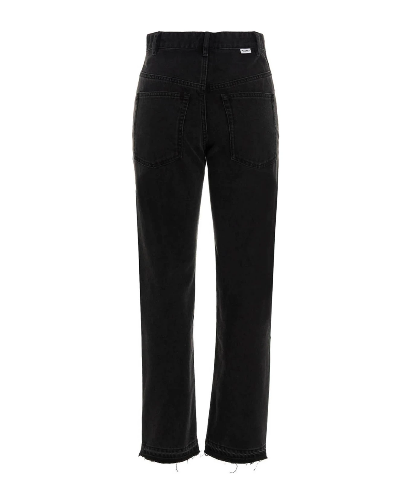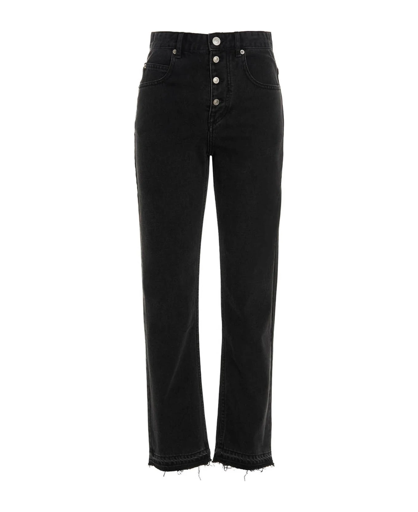 ‘Belden’ cotton denim jeans with button closure, five pockets, frayed hem.