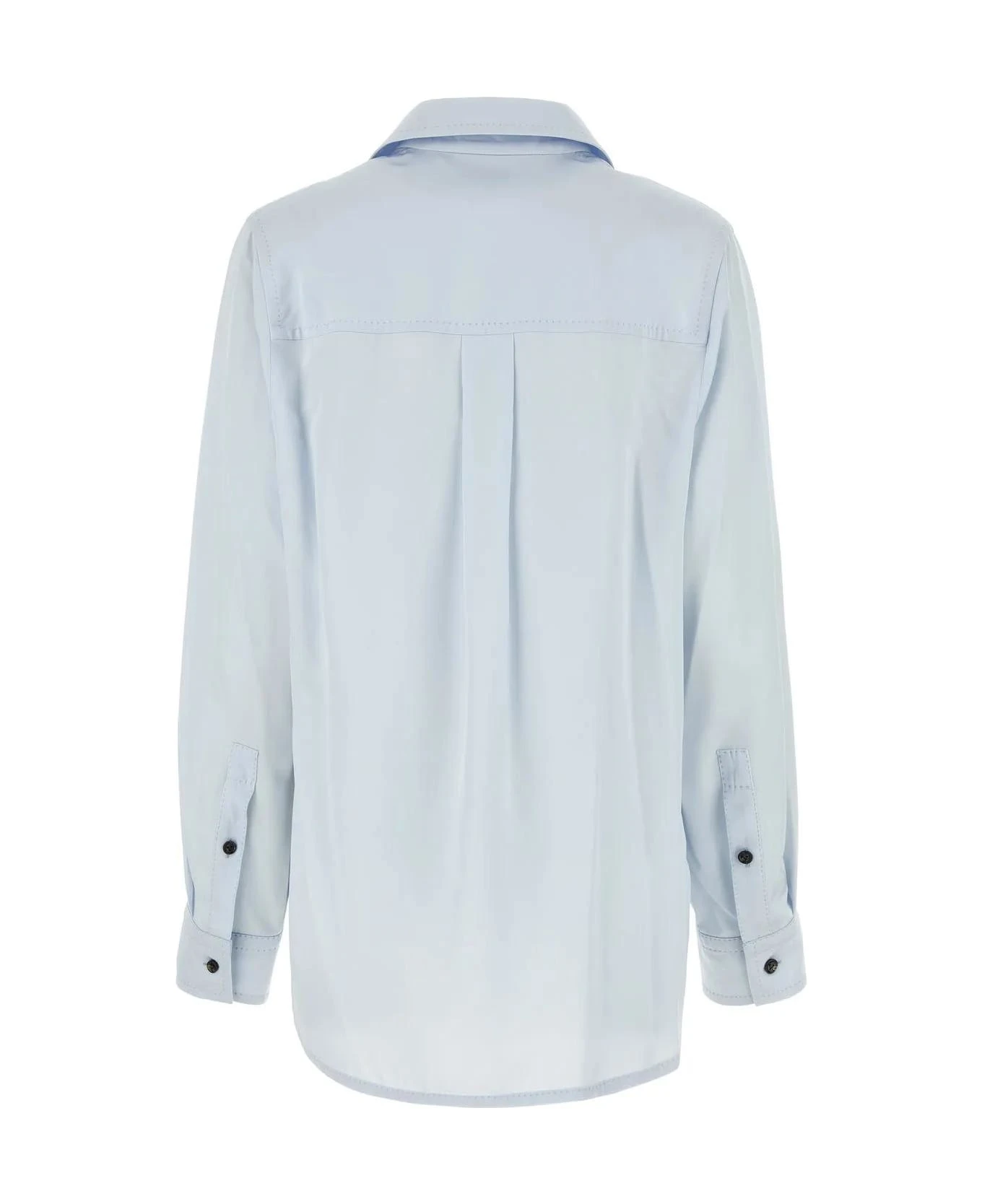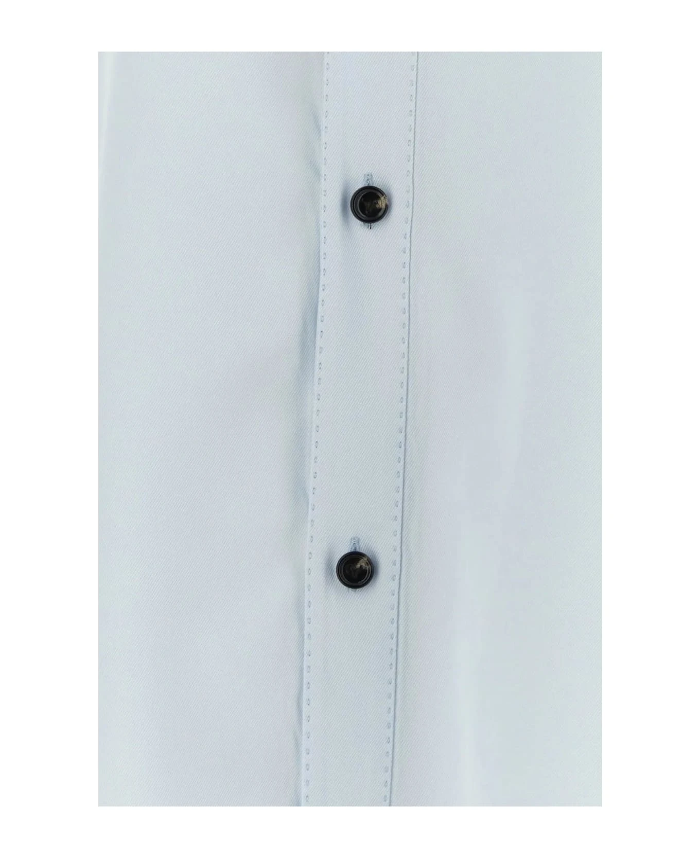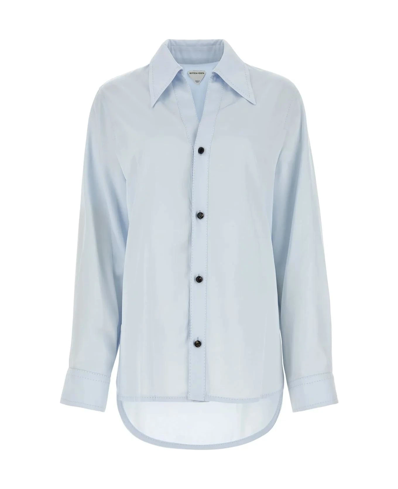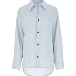 Shirt realized in viscose twill characterized by tonal stitchings on the trimmings.