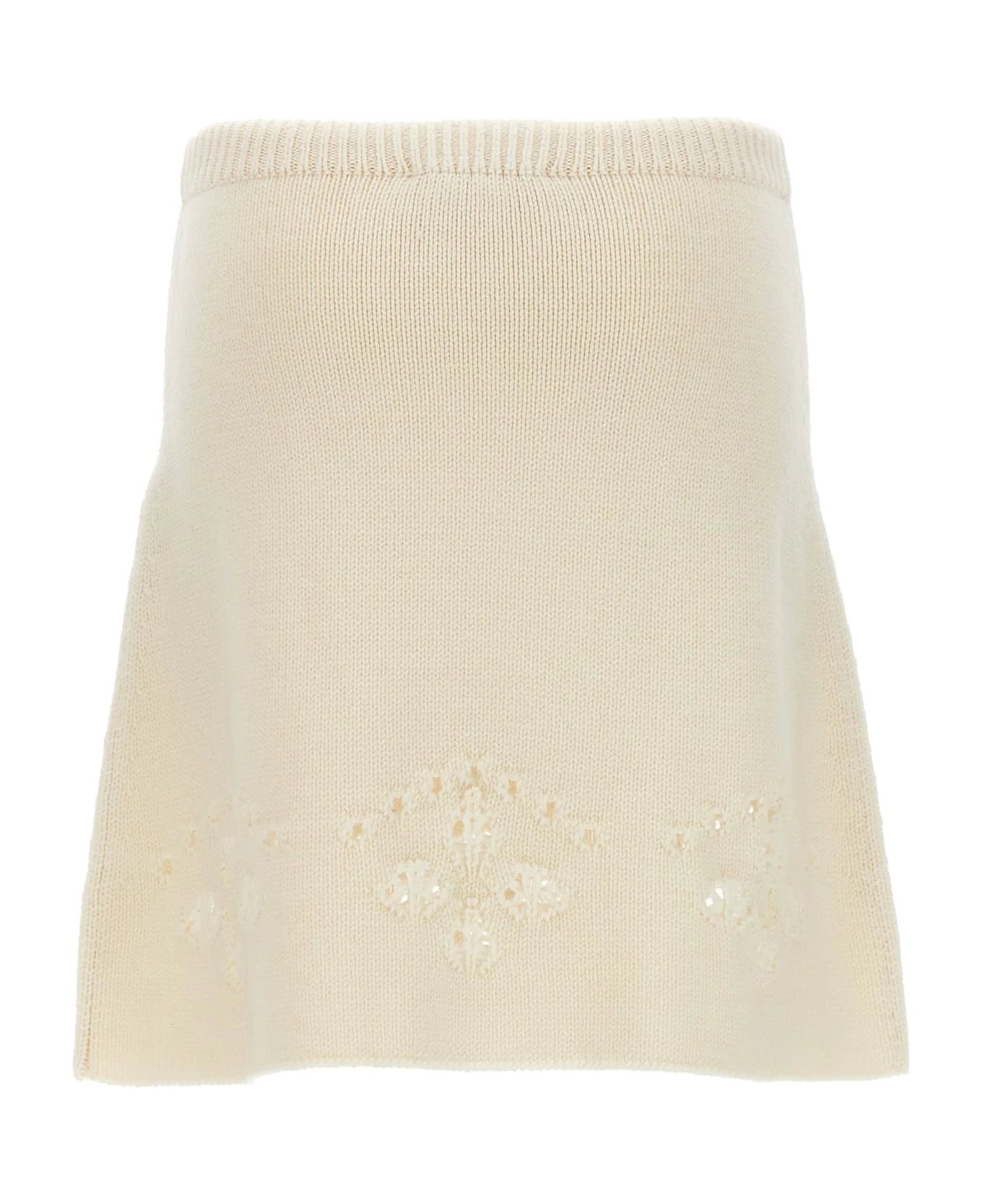 Knit wool skirt with openwork embroidery and elastic waistband.