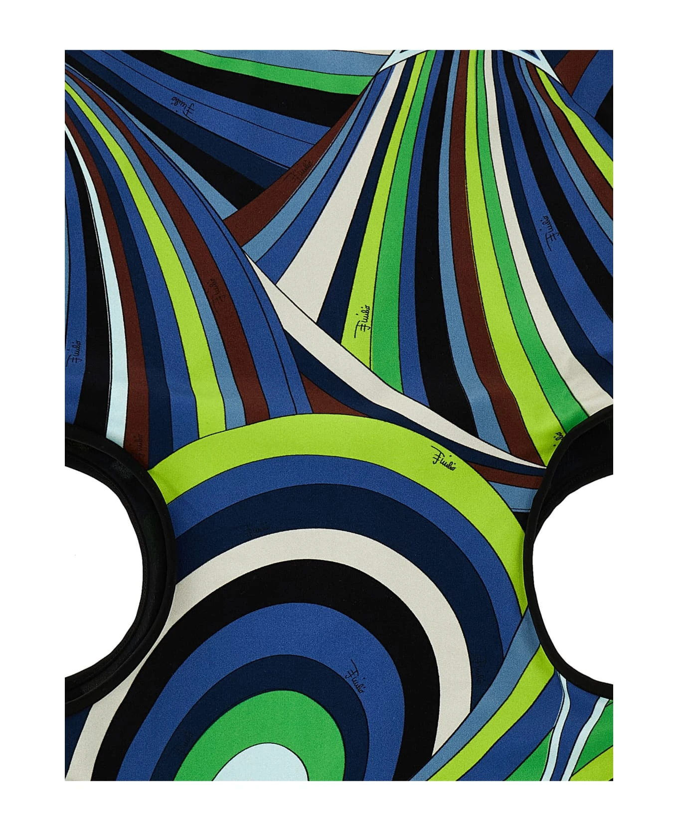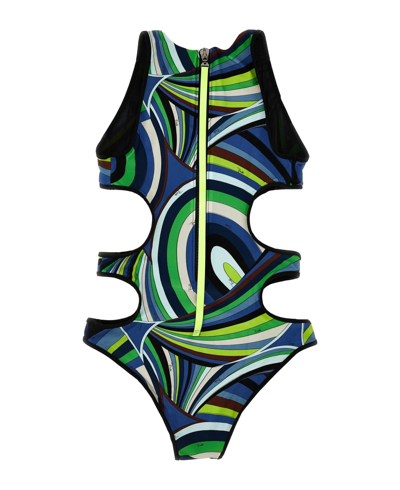 Stretch fabric one-piece swimsuit with all-over pattern, cut-out details on the sides, crewneck, and back zipper closure. This product, as well as many other Pucci items, is made with an allover print that falls differently on each garment the product shipped may differ from the one in the photo.