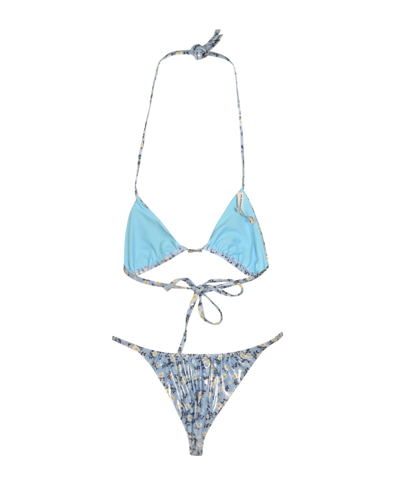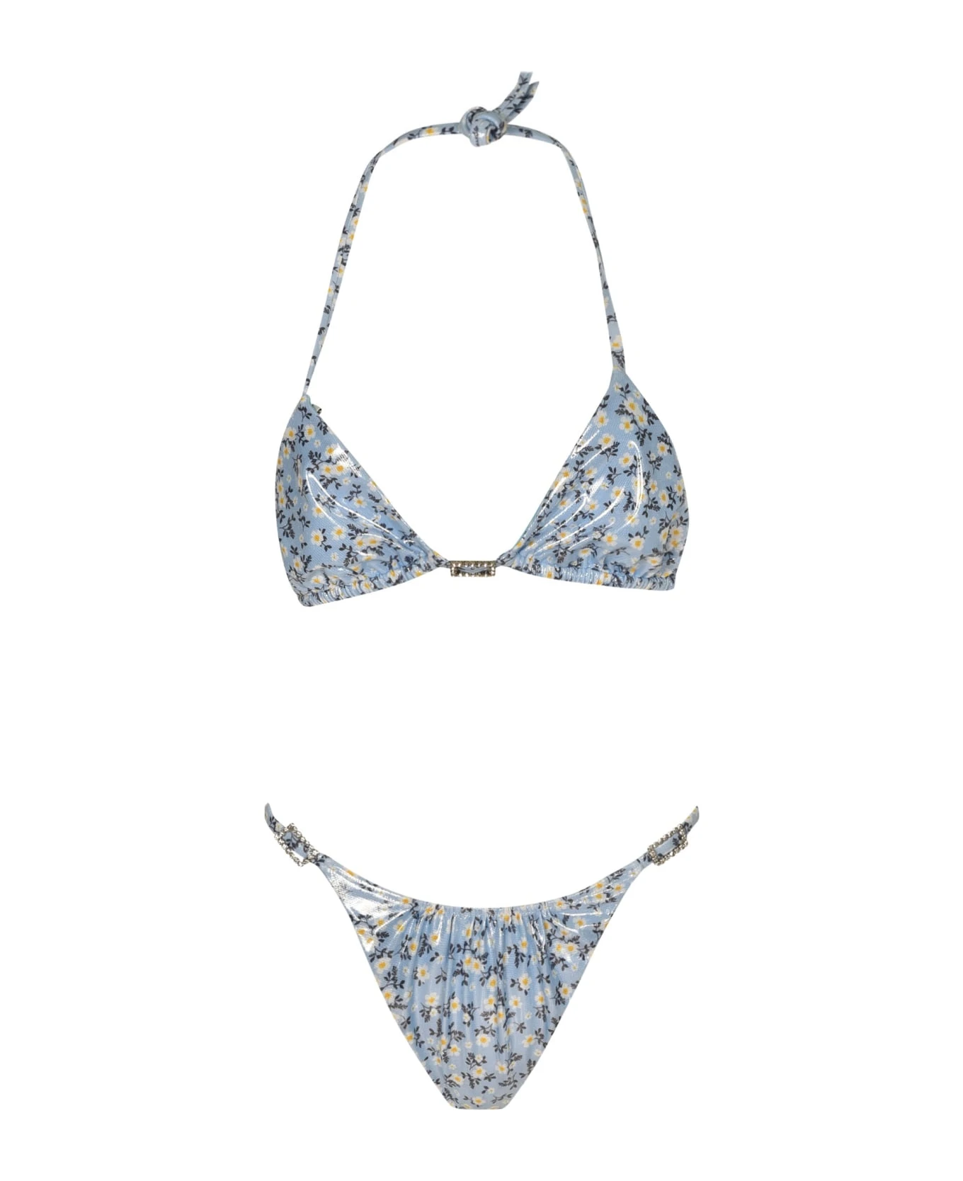Daisy Print Laminated Ruched Lycra Bikini from Alessandra Rich