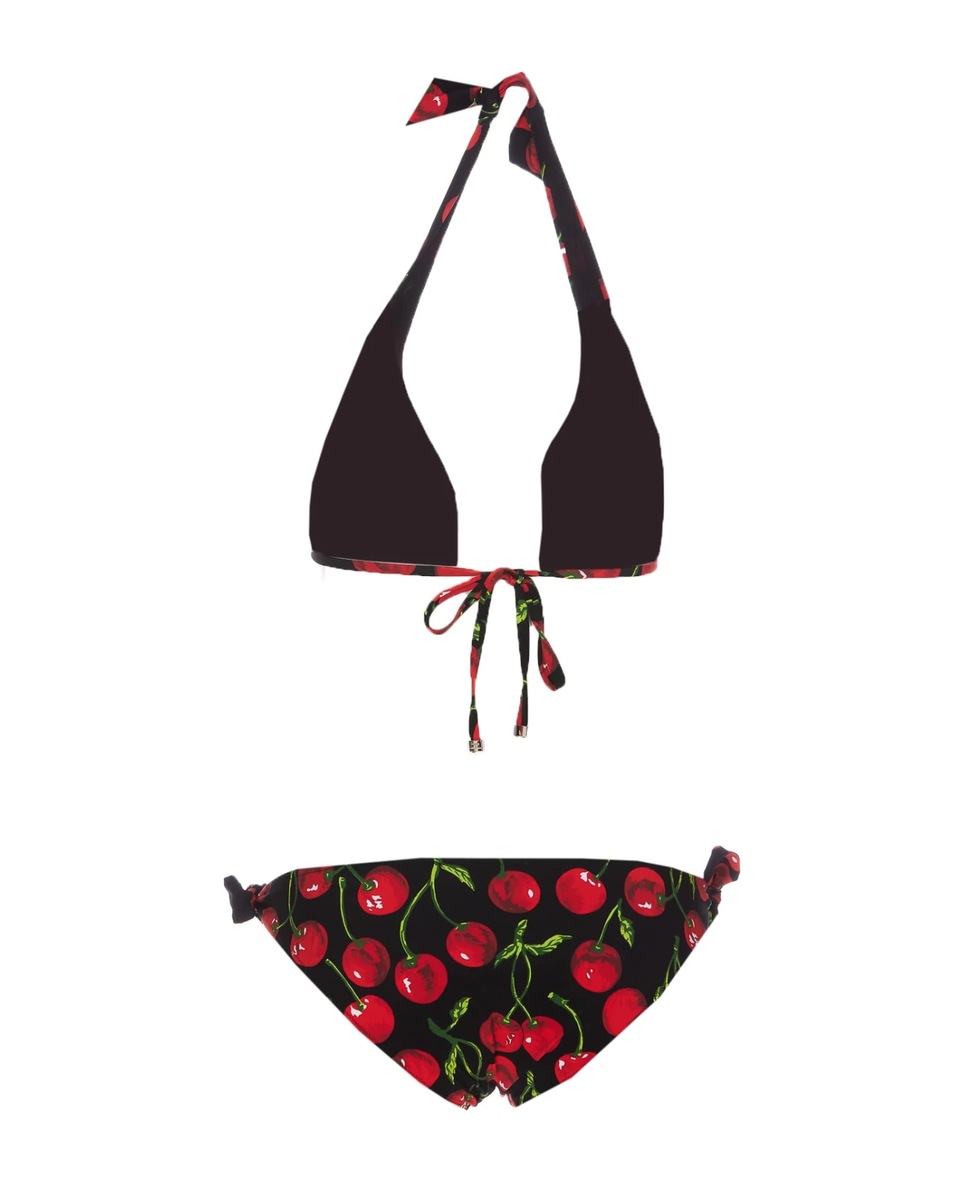 Dolce&Gabbana black bikini, cherry print, laces closure