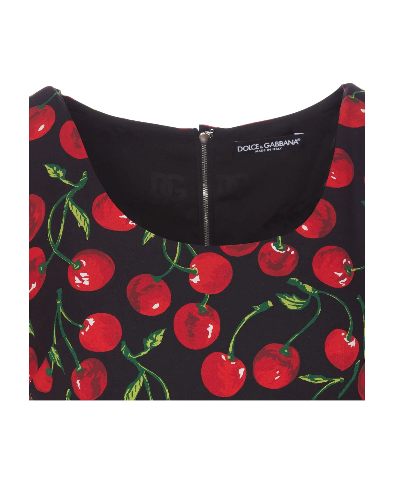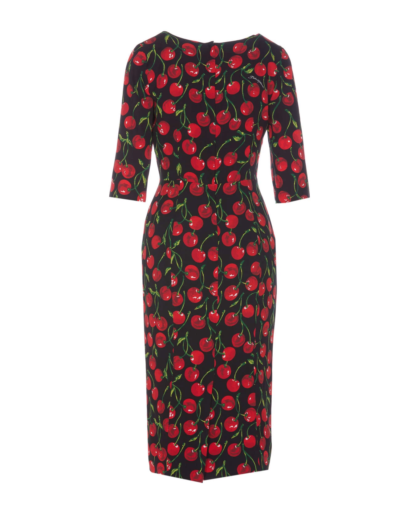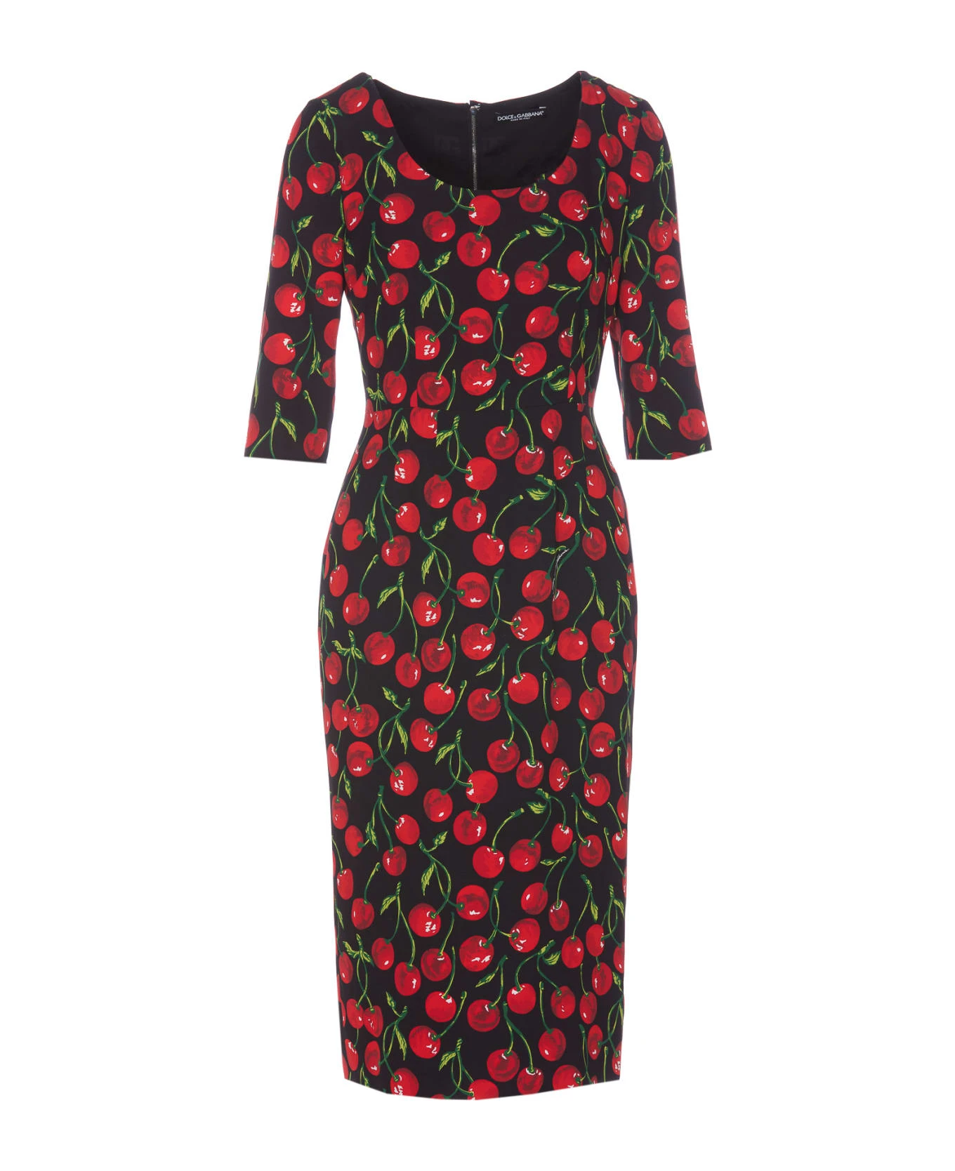 Dolce&Gabbana black Cherry print dress, zip closure on the front, crewneck, 3/4 sleeves, cherries print, midi model