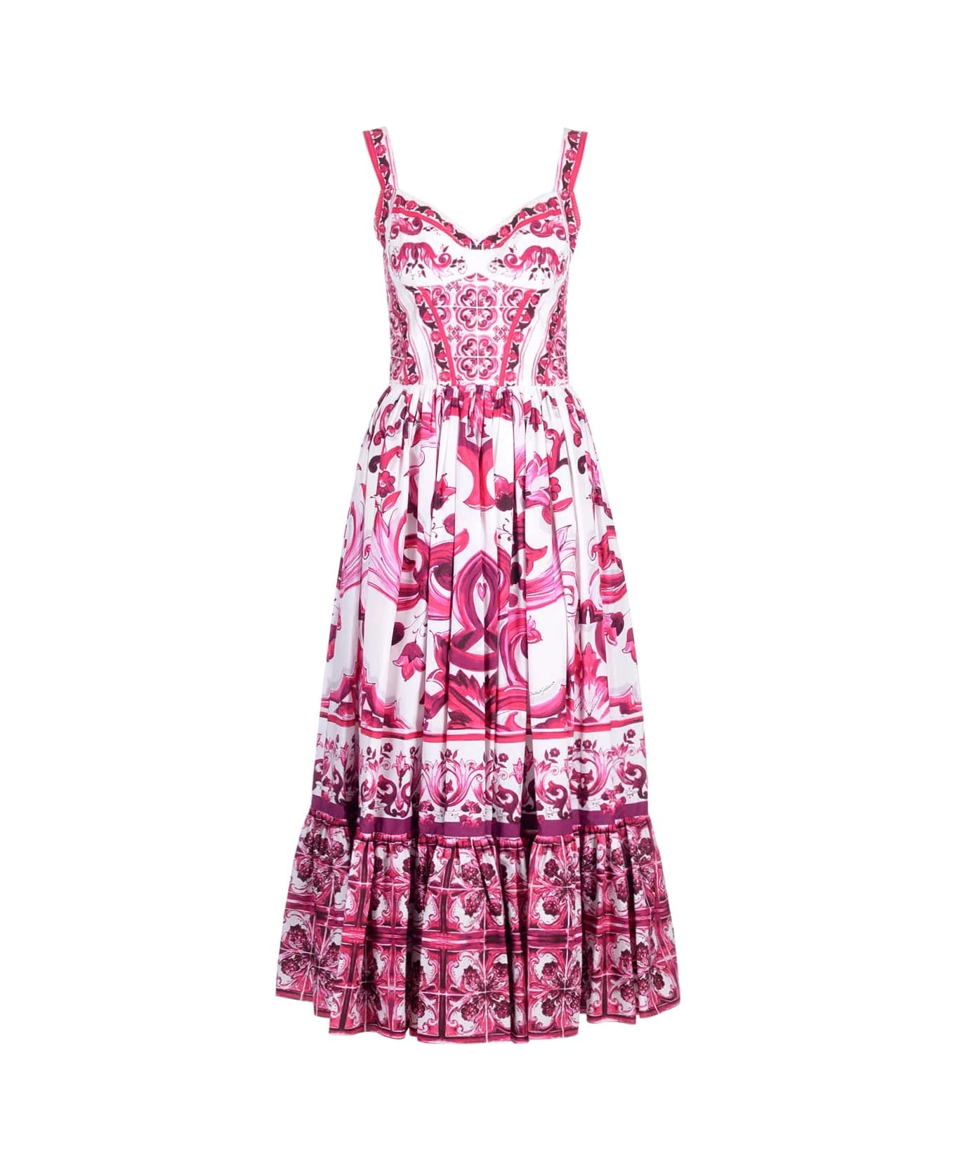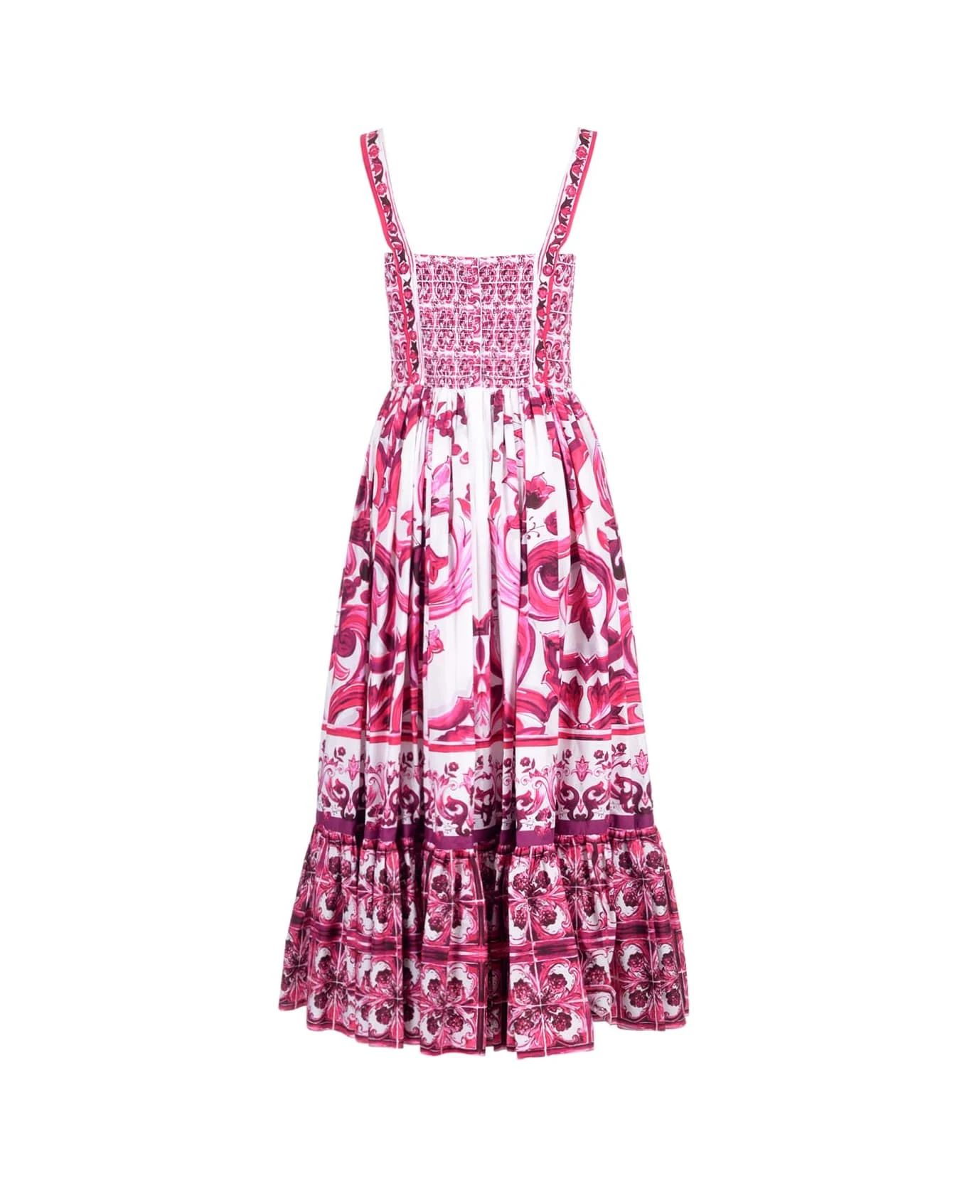 ABITO LUNGO CON BRETELLE TRIS MAIOLICHE FUXIA