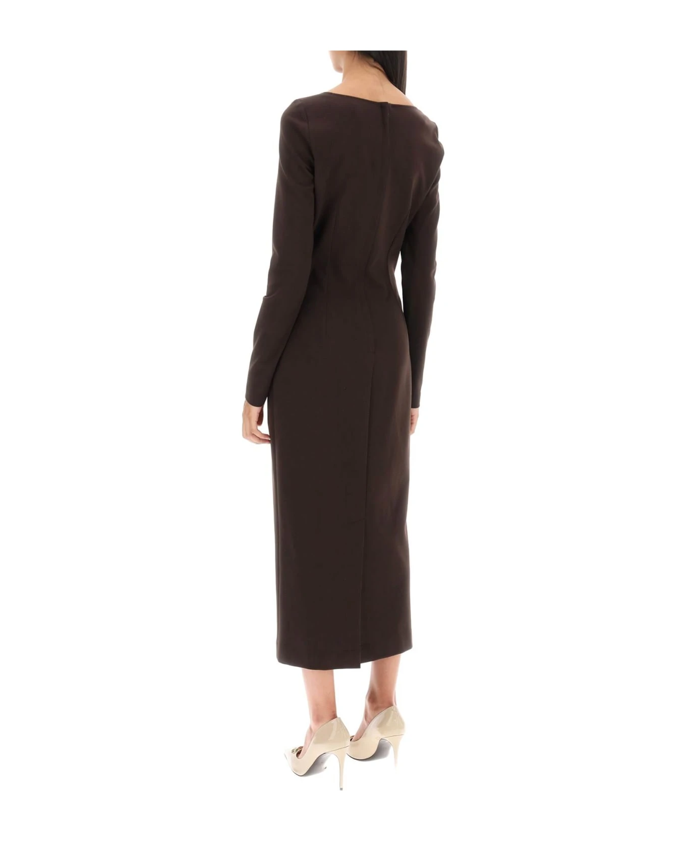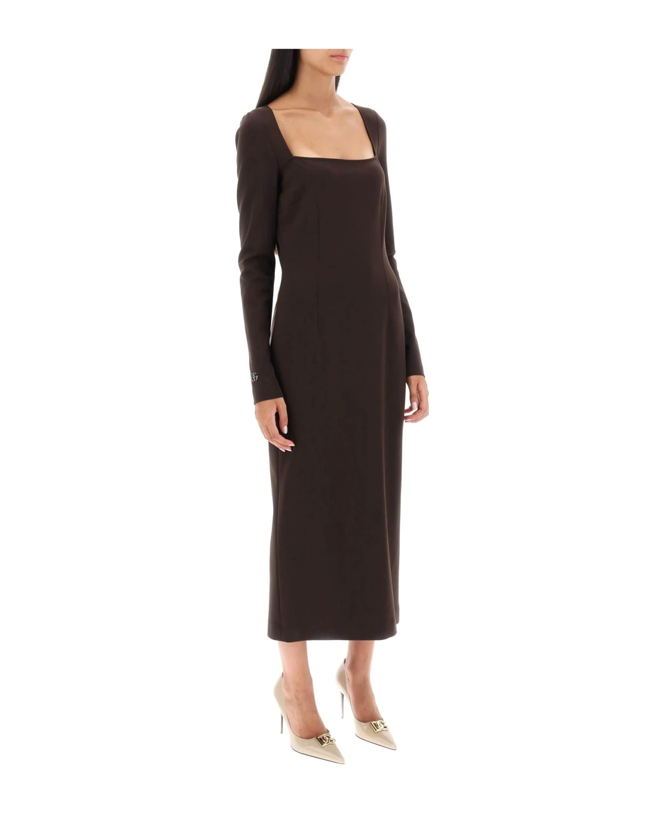Dolce & Gabbana midi sheath dress crafted in compact jersey with a neat appearance, enhanced by a square neckline and long sleeves with DG metal detail at the right cuff. Back zip closure. The model is 177 cm tall.