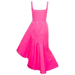 Alexander McQueen Maxi Fuchsia Dress With Square Neckline And Maxi Ruffle In Polyfaille Woman