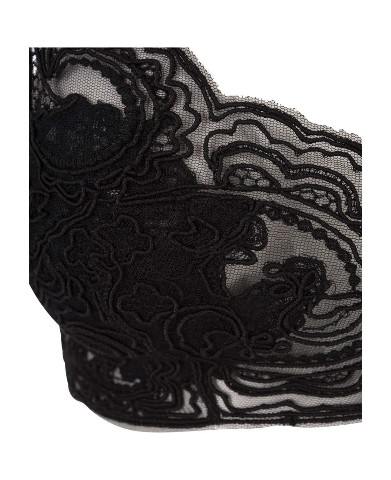 Ermanno Scervino short top made entirely of delicate black tulle with tonal embroidery. The lingerie-style brassiere features thin silk satin straps, a deep V-neckline and a back hook-and-eye closure. The fit of this garment is regular, we recommend buying your usual size.