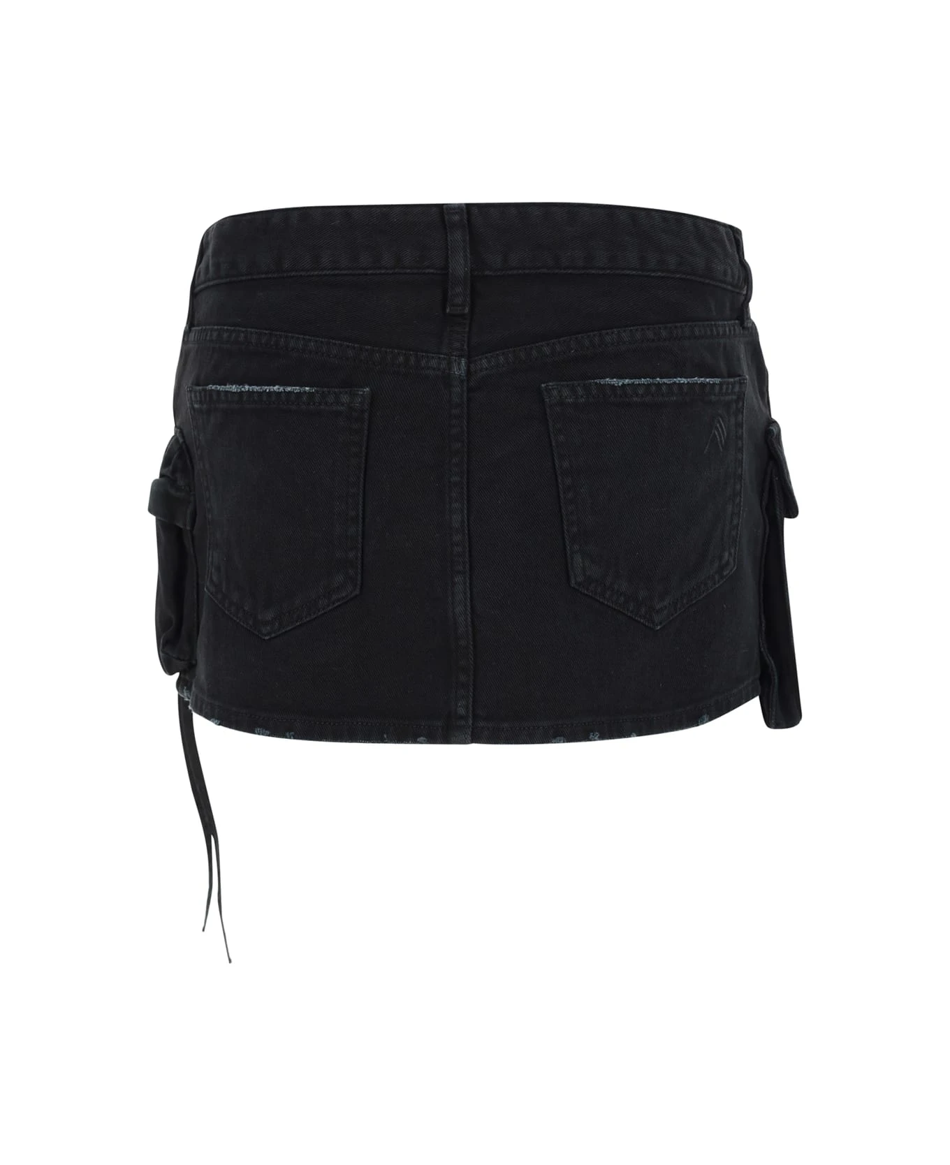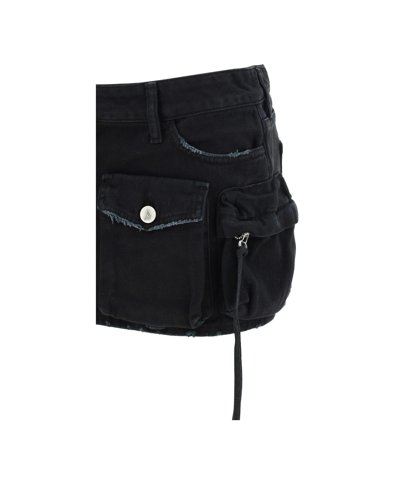 Cotton fay mini skirt by the attico, denim design, straight five-pocket style, front zipper and button closure, waist belt loops, two large front pockets, regular fit.