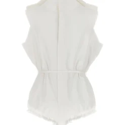 Fendi ‘ff’ Crop Top In Pink Fabric With All-over Logo Pattern, White And Square Lace-up Fastening At The Back And A Straight Hem.