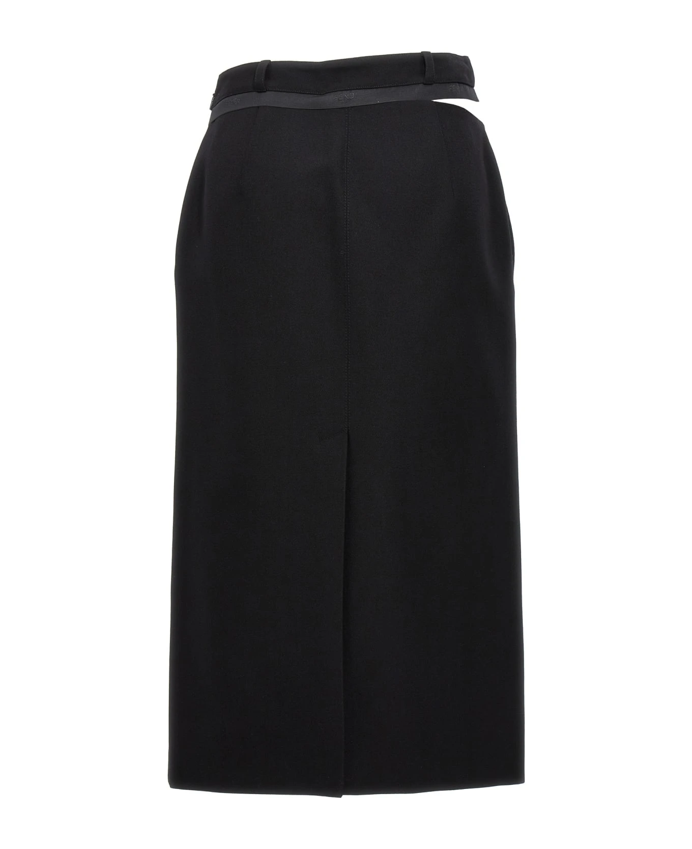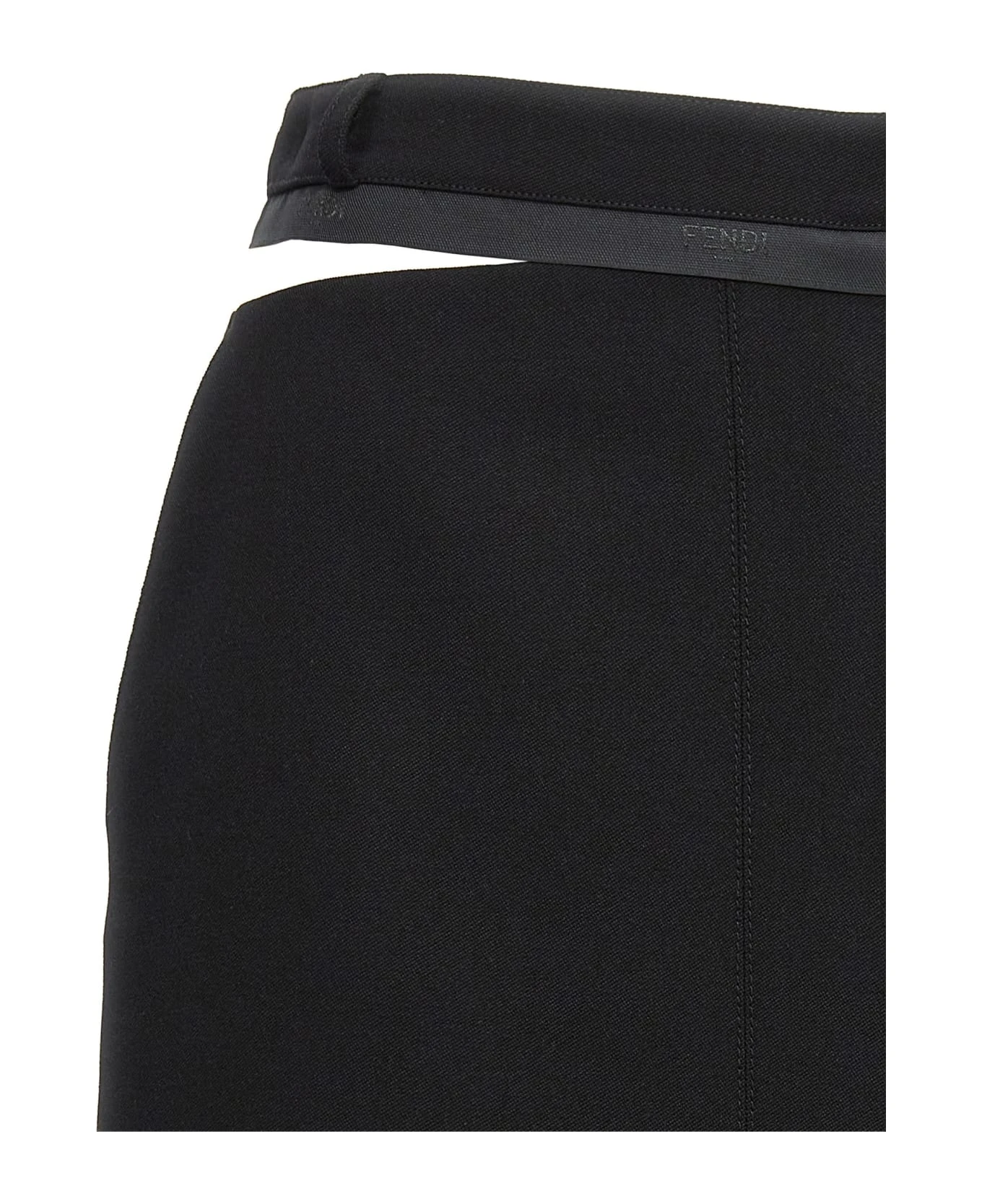 Grain de poudre wool mini skirt, cut out detail at the waist with tone-on-tone logo band.