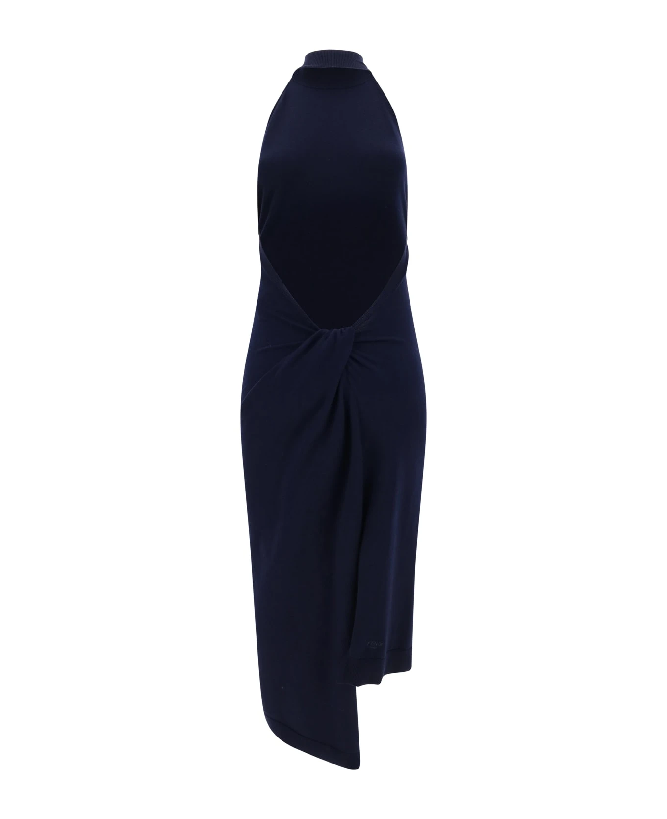 Wool twisted dress by fendi, ribbed turtleneck, wide back opening, foot-length design, monochrome design, wide back slit, regular fit.