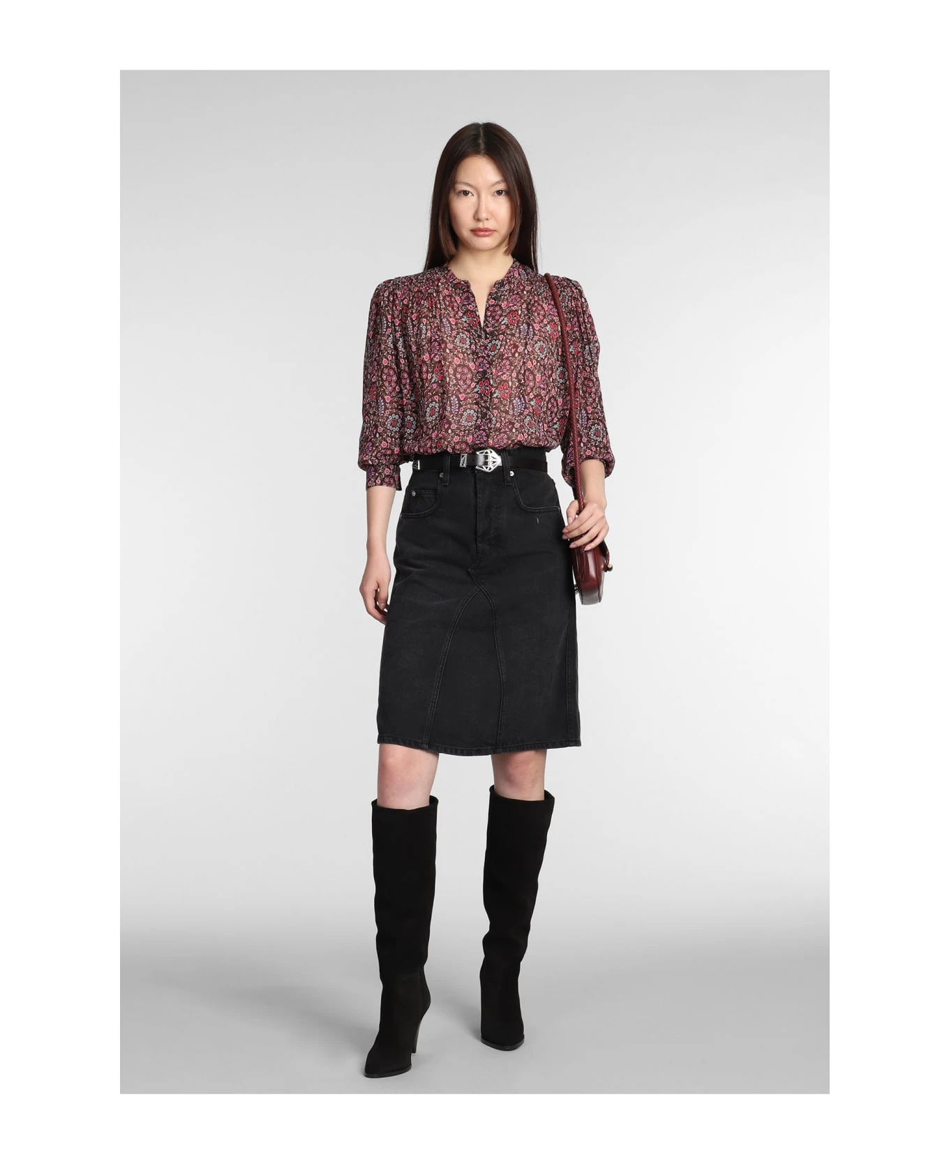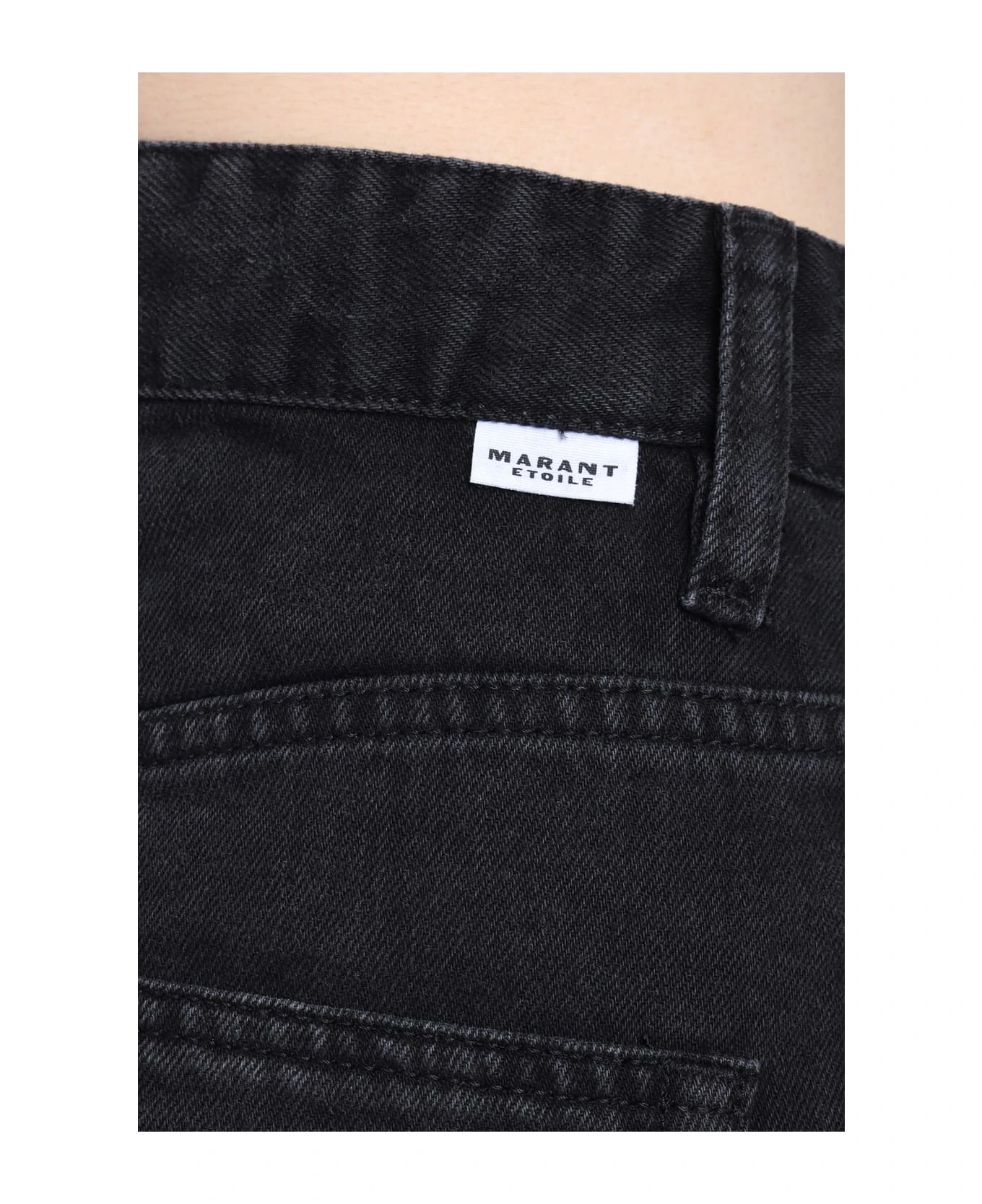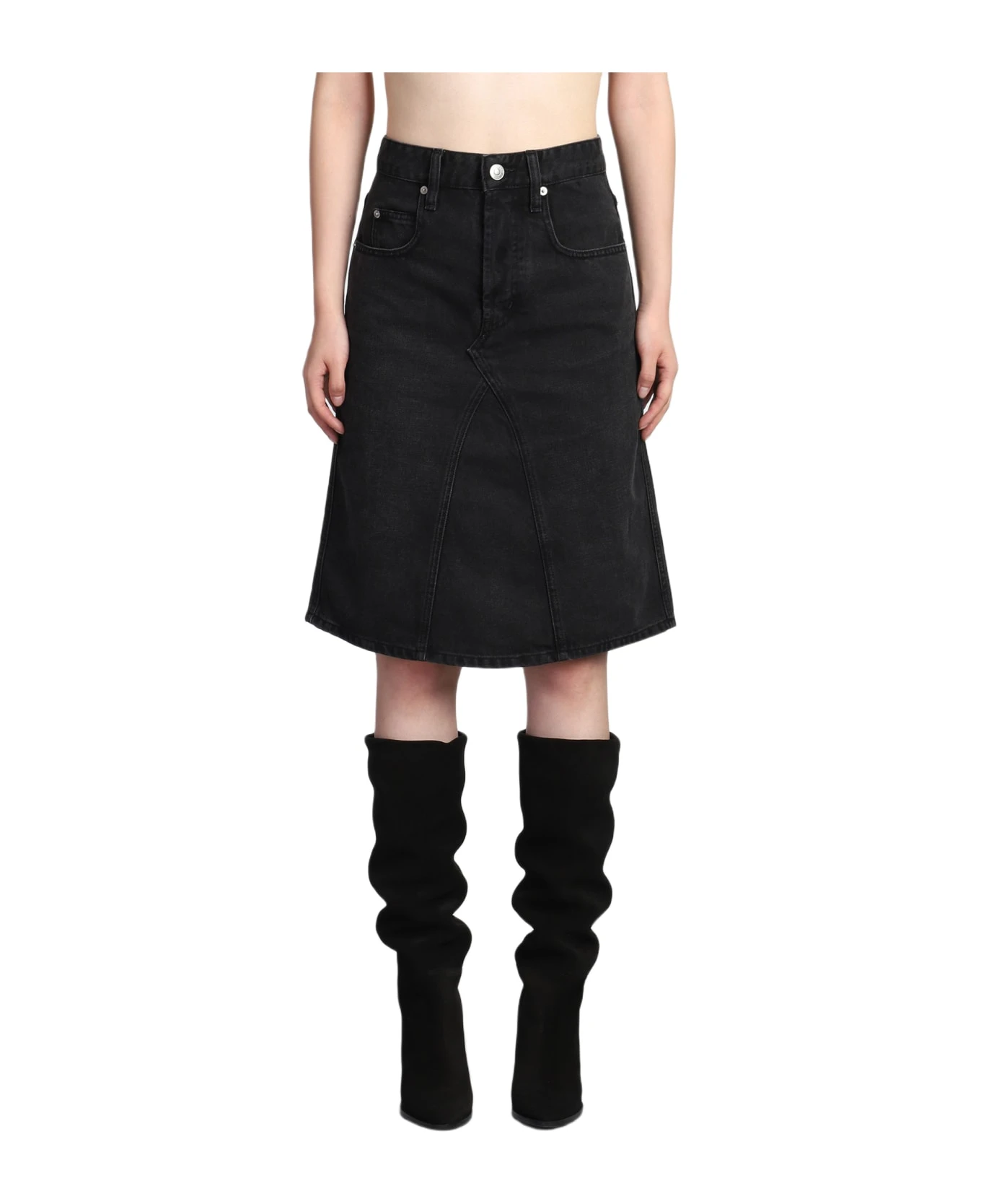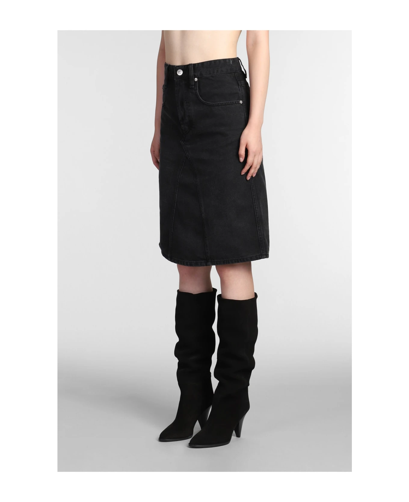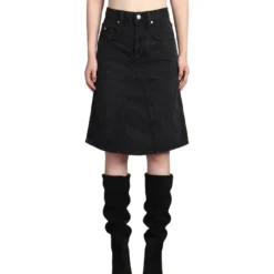 Fiali Skirt in black cotton, flap closure, five pockets, belt loops, rear logo label, 100% cotton, Made in Tunisia, Model is 1. 77 cm and wears size 36