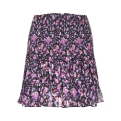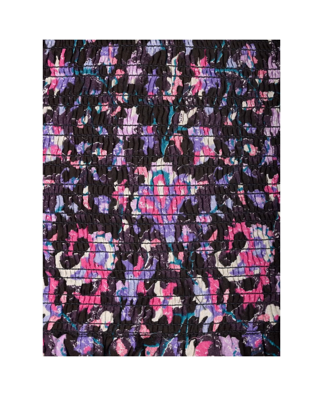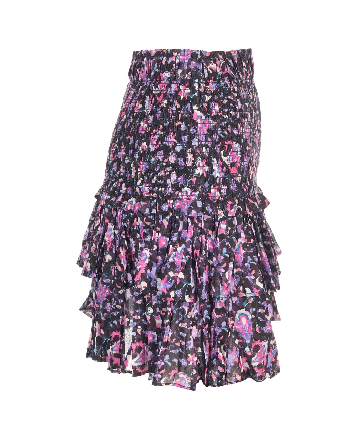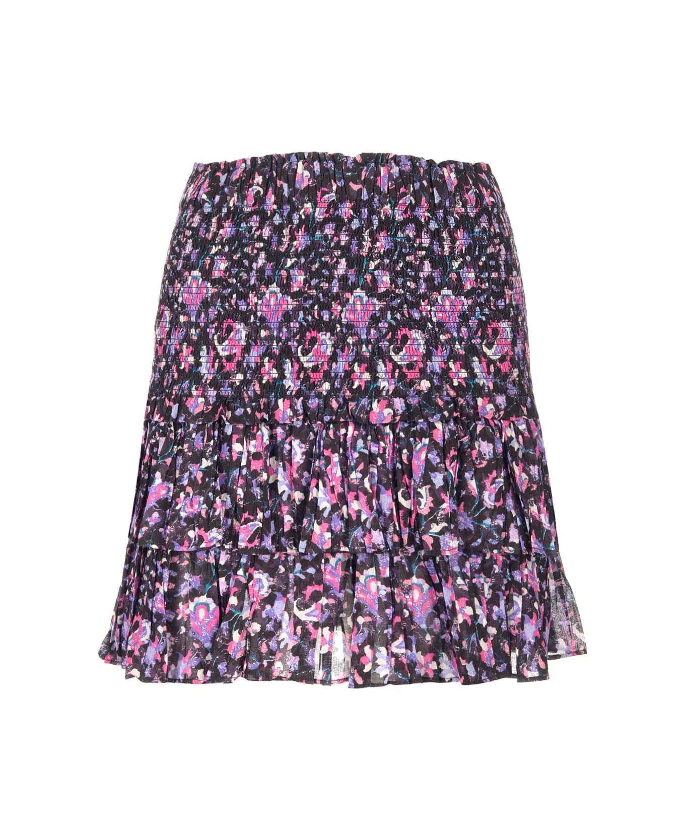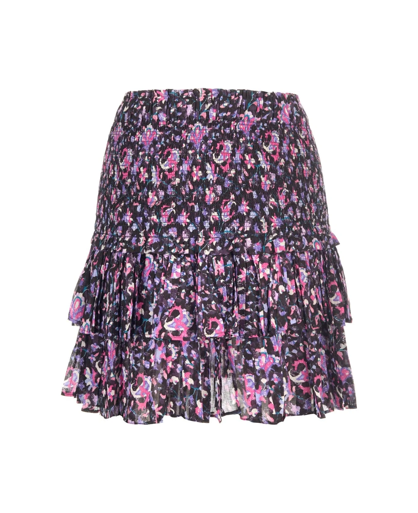 Floral “Naomi” mini skirt from Marant Etoile in cotton, ruffles and smocked stitches, elasticated waist.