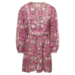 Mini dressAll-over floral print Round neck with front tie fastening Long Sleeves Above-knee lenght skirtPink Cotton Regular Fit