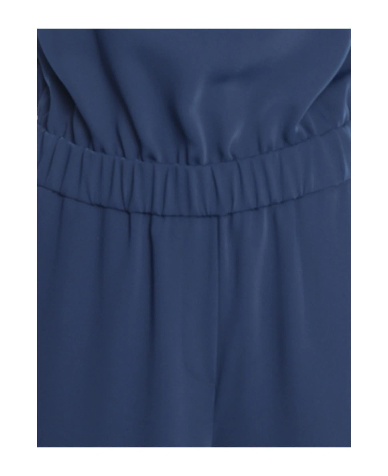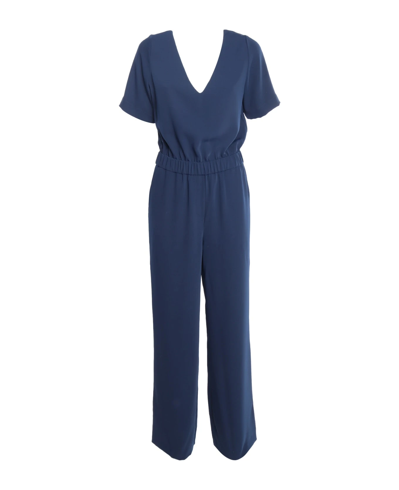 Anti-crease fabric jumpsuit, double sided V-neck, short sleeves, elasticated waist