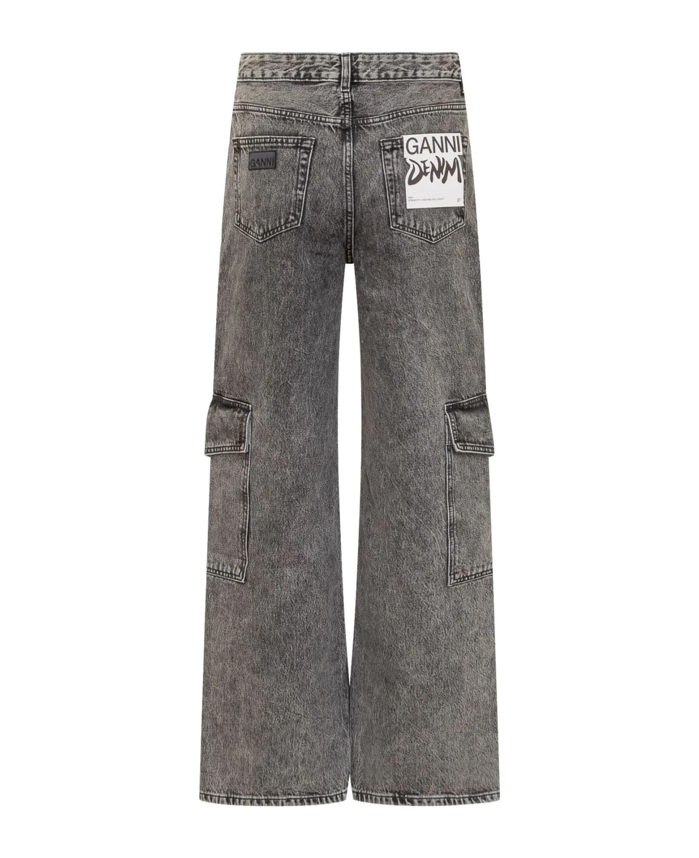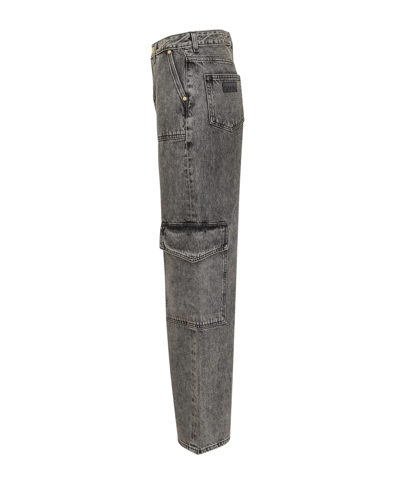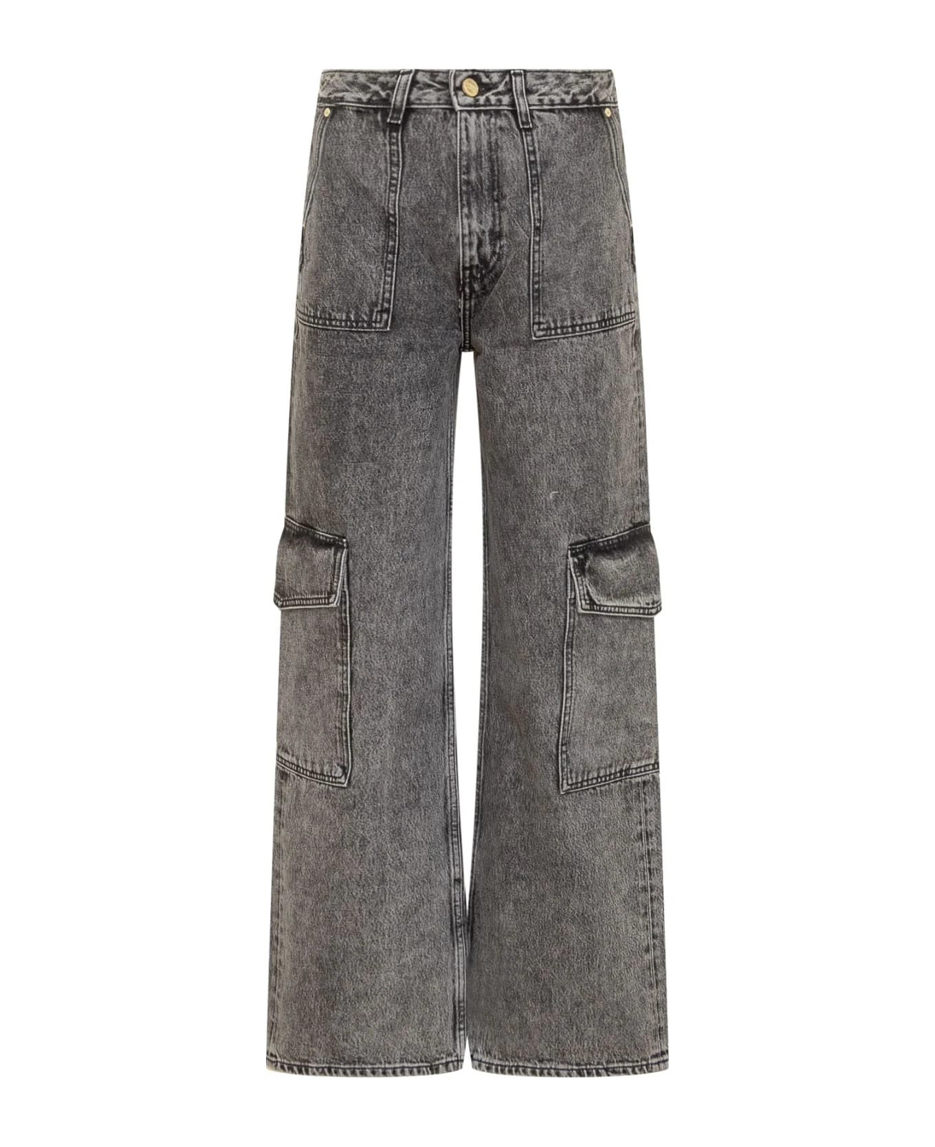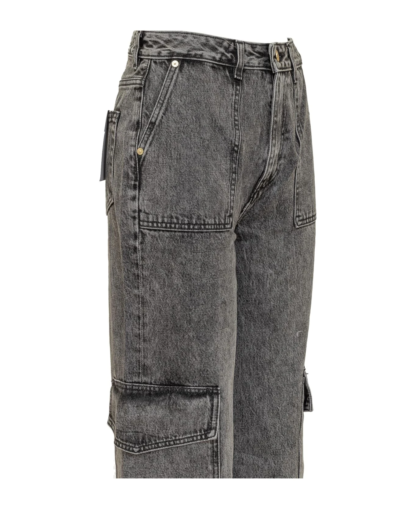 Long black jeans. Button and zip closure. Belt loops. Side and back pockets. Wide leg.