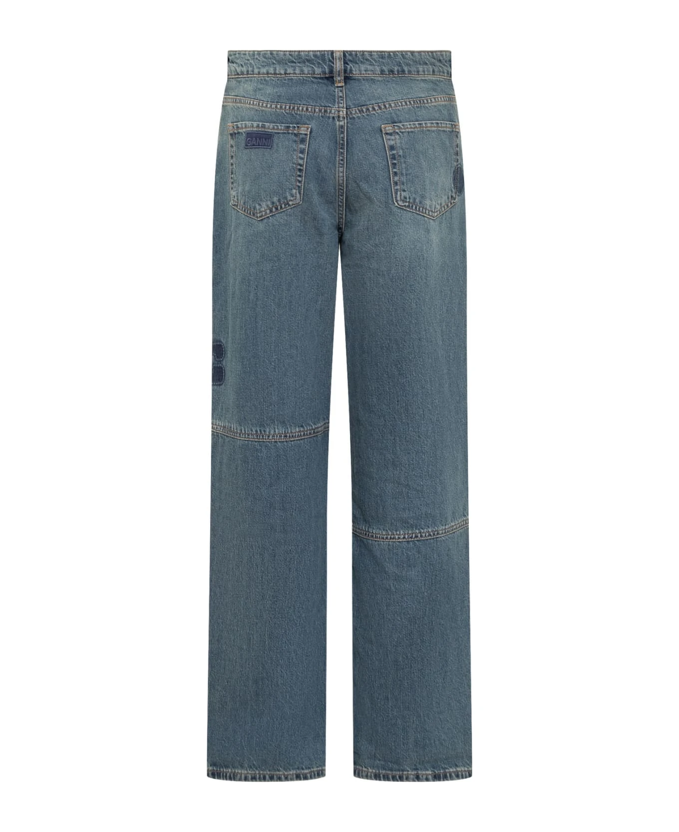 Long blue jeans. Button closure. Belt loops. 5 pockets. Wide leg. Embroidered logo.