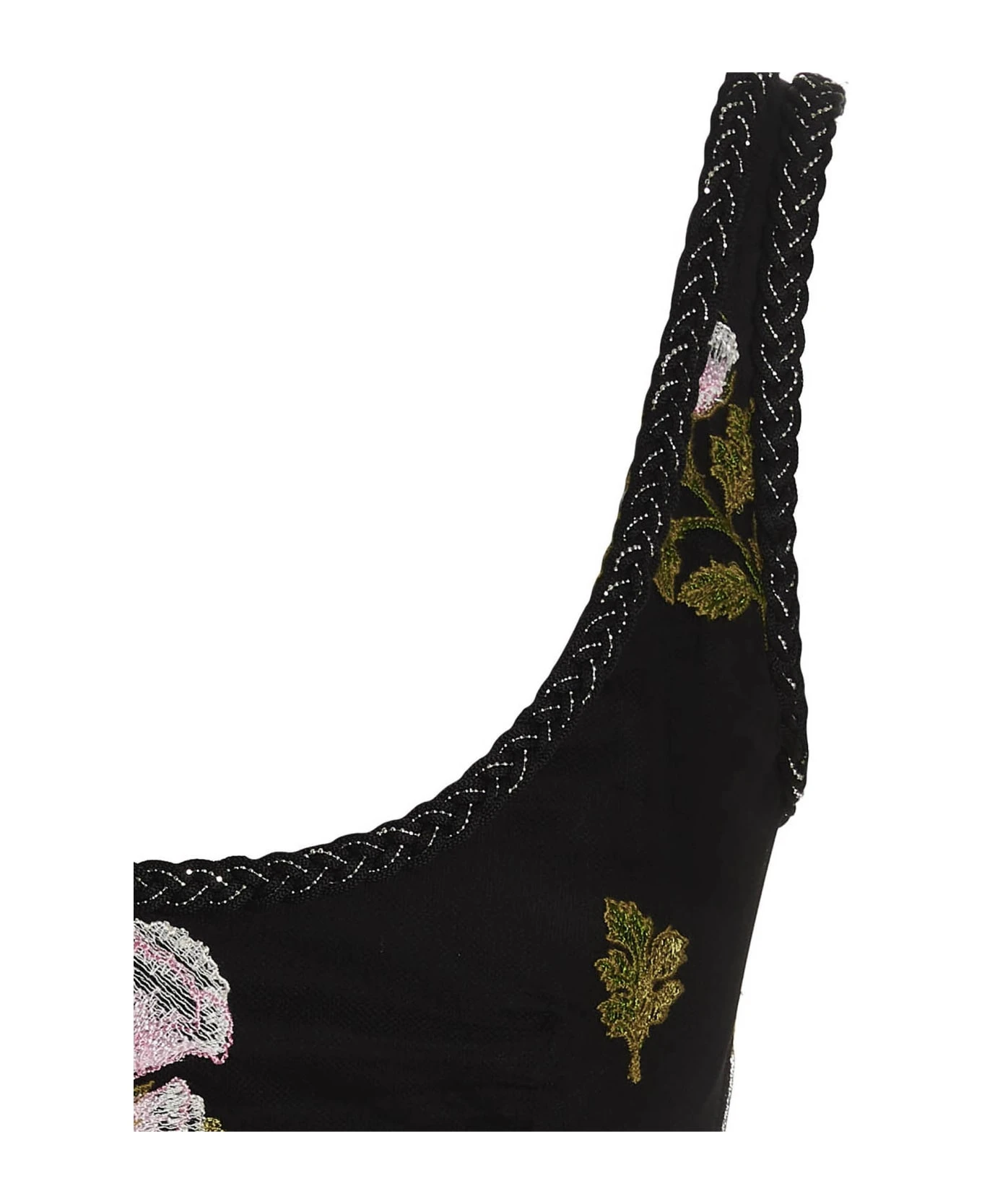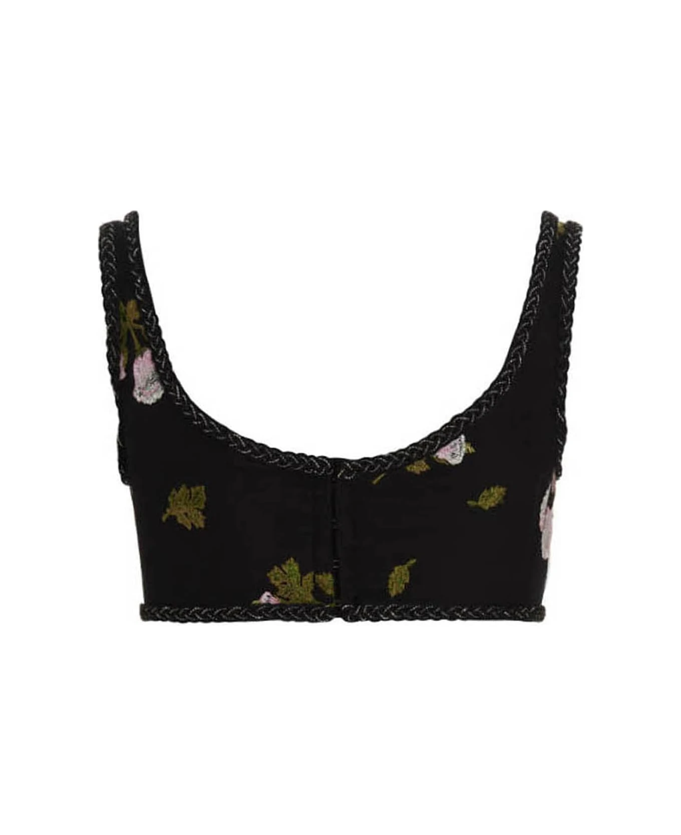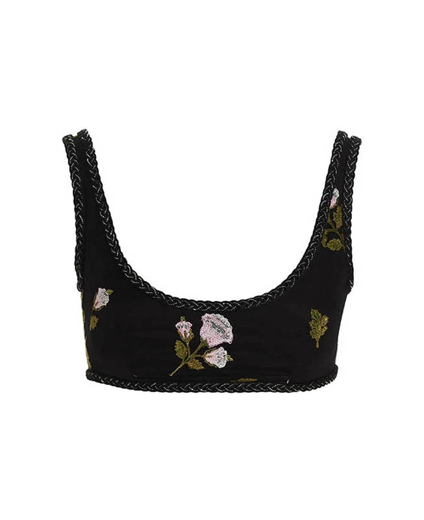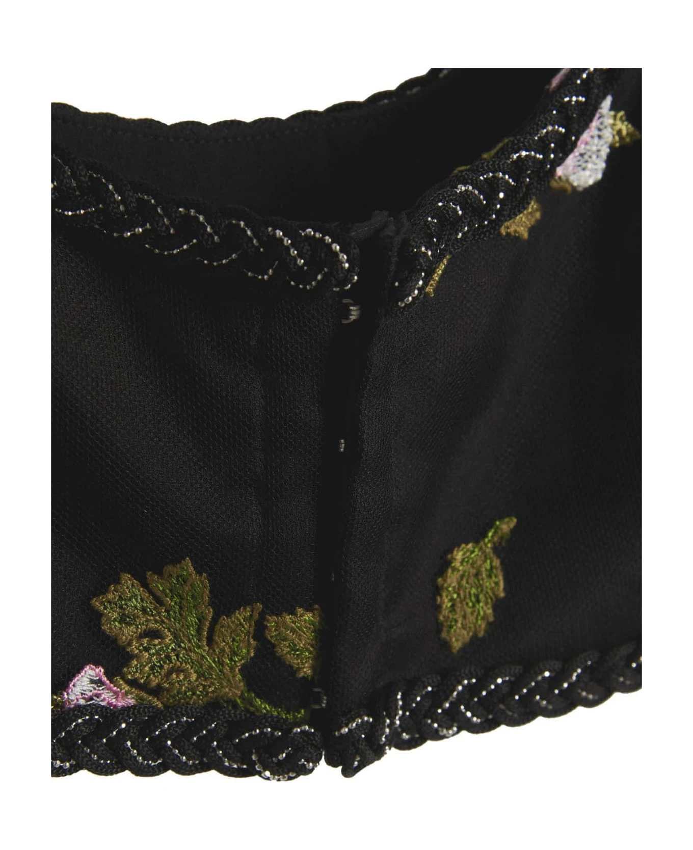 Tulle and georgette cropped top with all-over ‘Roses Au Vent’ embroidery and a back hook closure.