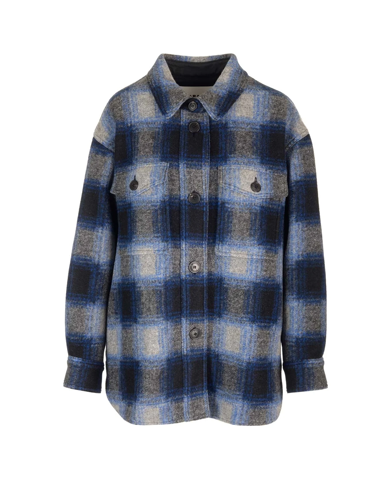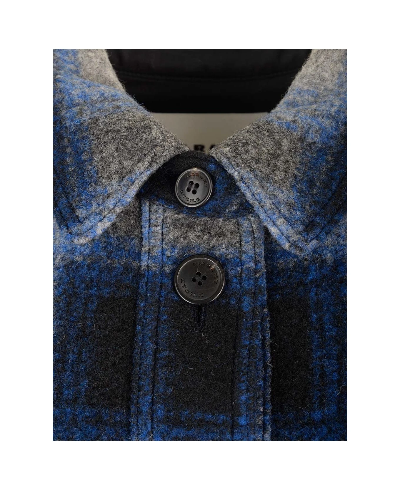 ‘Harveli’ overshirt by Marant Etoile in check wool cloth with logo embroidered on the shoulders