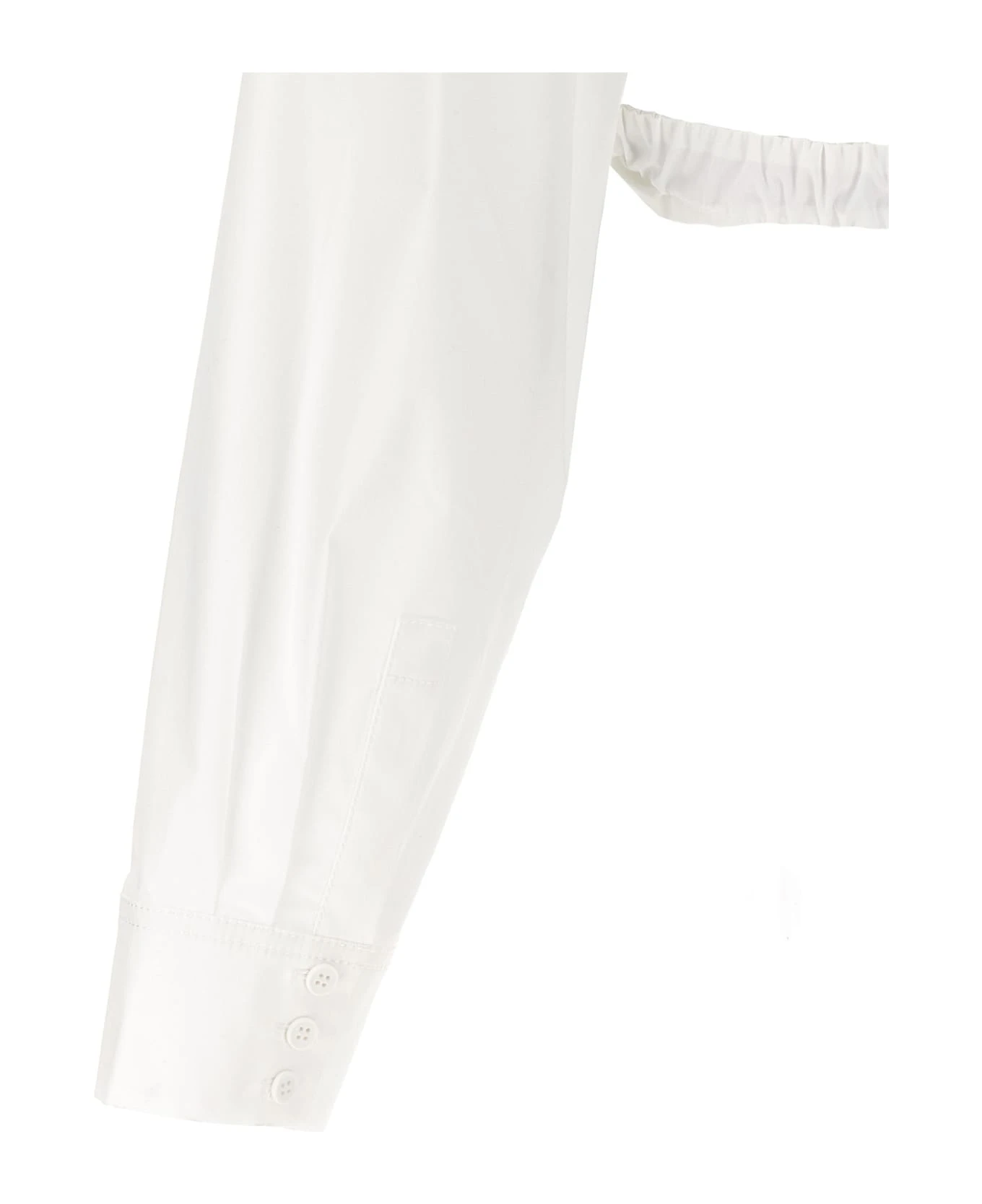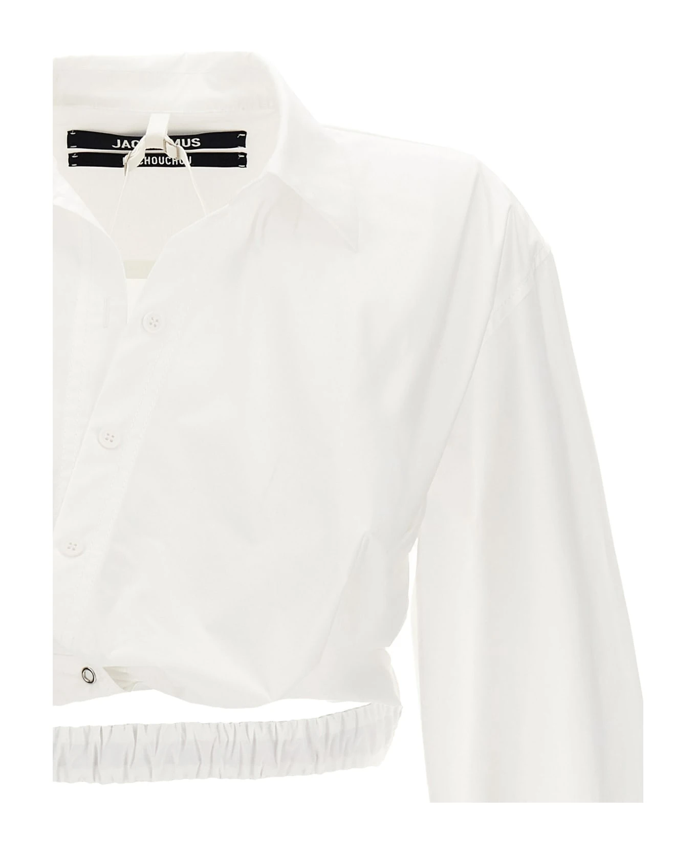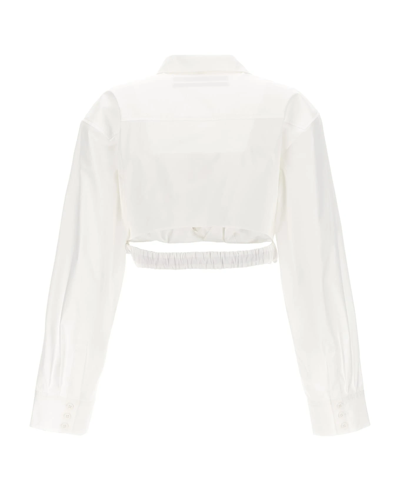 ‘Bahia Courte’ cropped cotton shirt with elastic waistband, button closure, long cuffed sleeves.