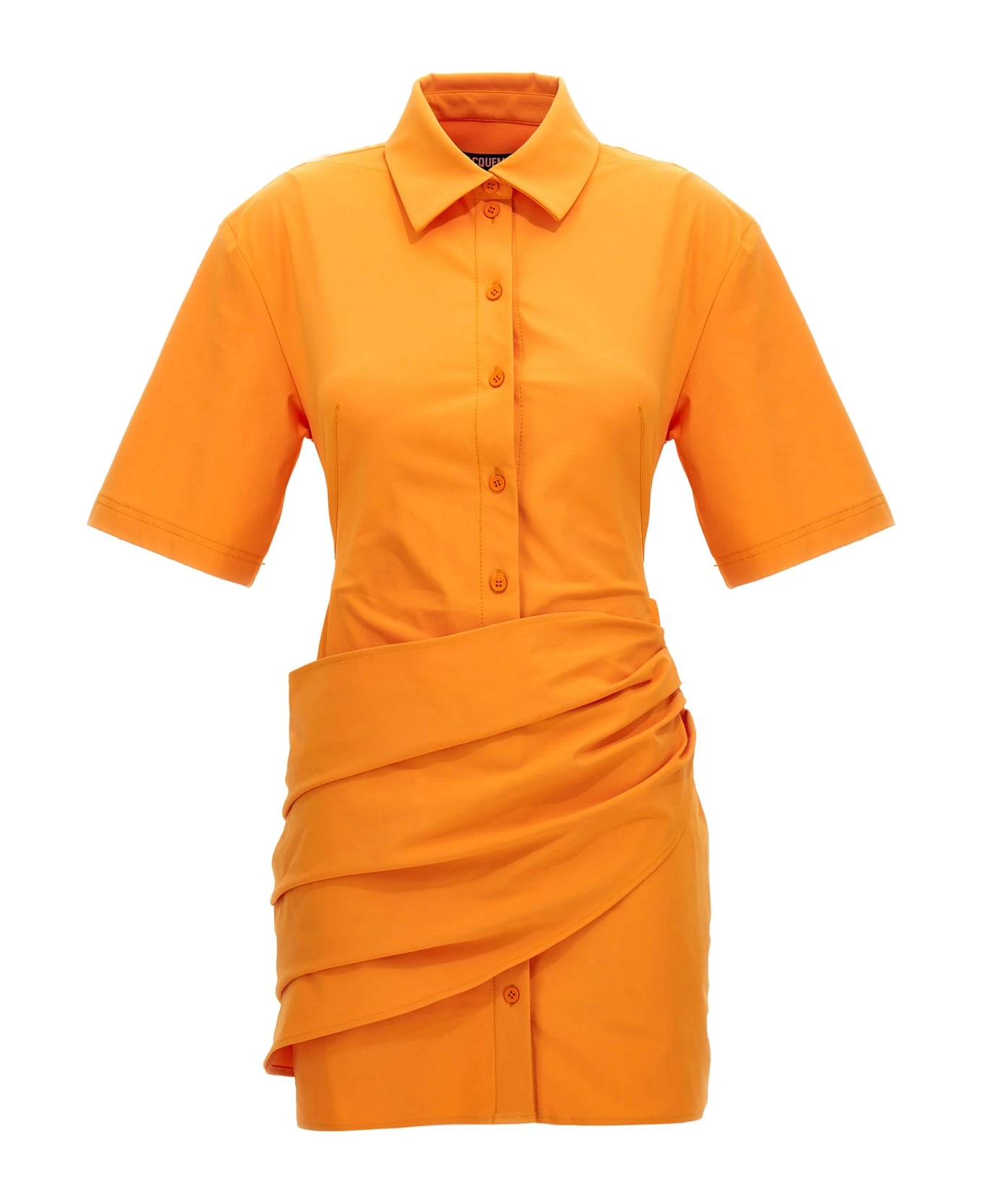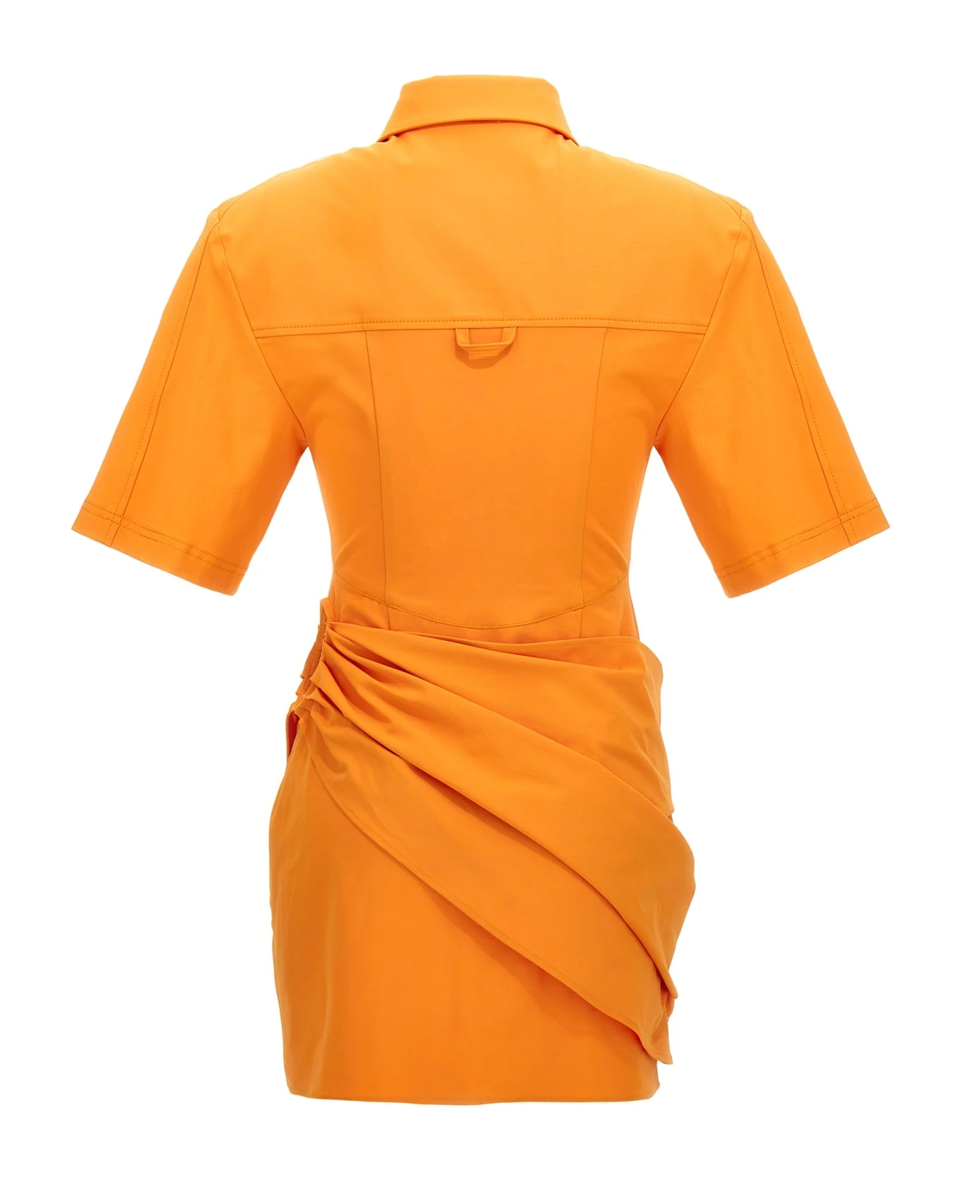 ‘La Robe Camisa stretch cotton blend twill dress with a shirt collar, short sleeves, front button closure, draped yolk on the sides and cut out detailing on the left side. e.