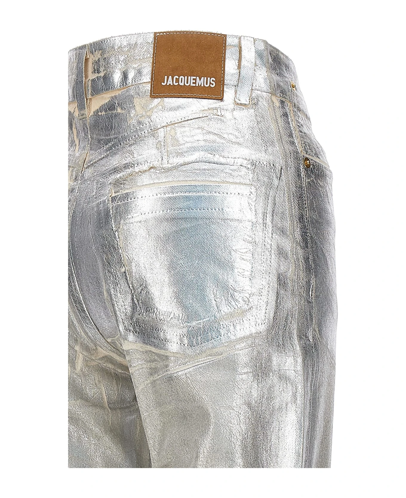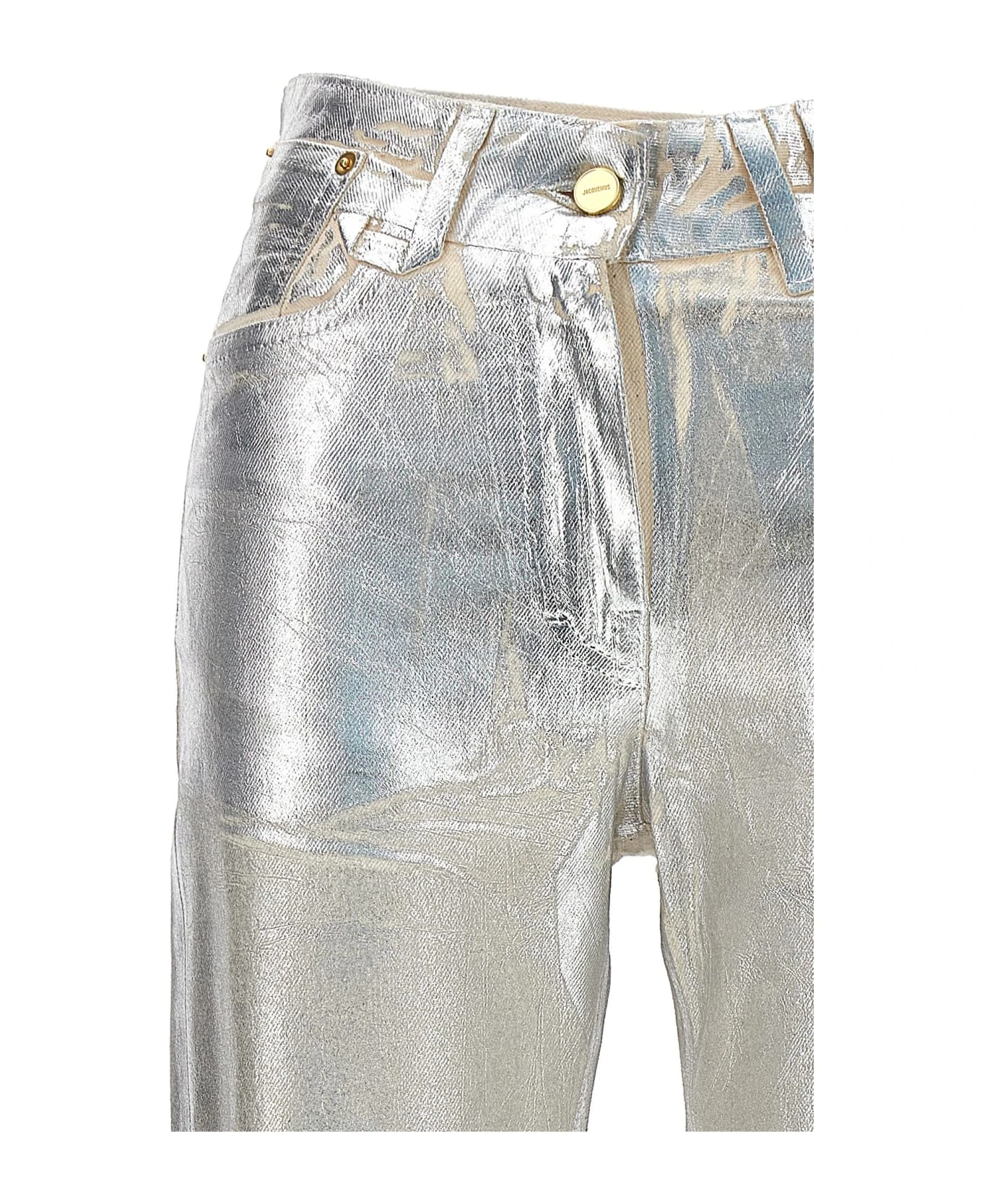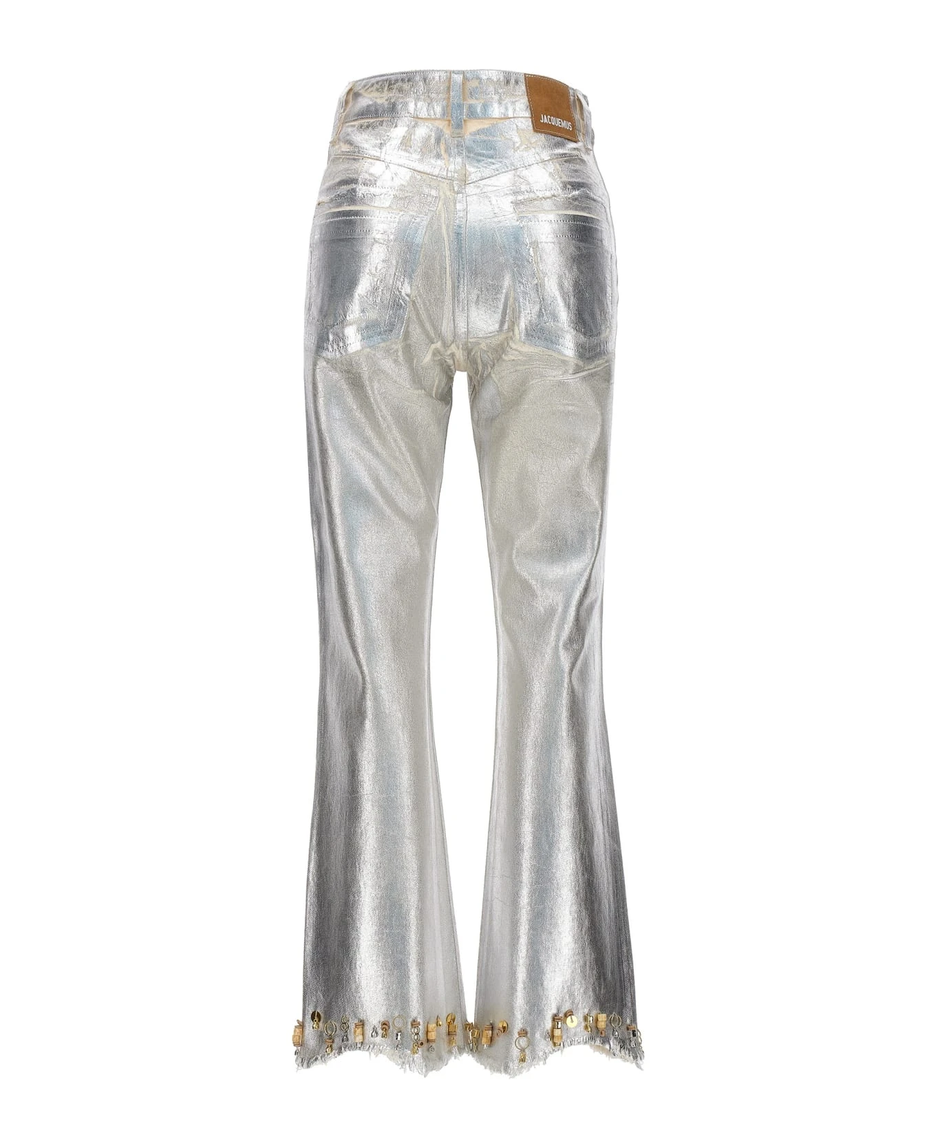 Le de N mes court Articha’ medium waist, five-pocket cotton denim jeans with beads and metal details, a zip and button closure and a back logo patch. : This product is made in organic cotton.