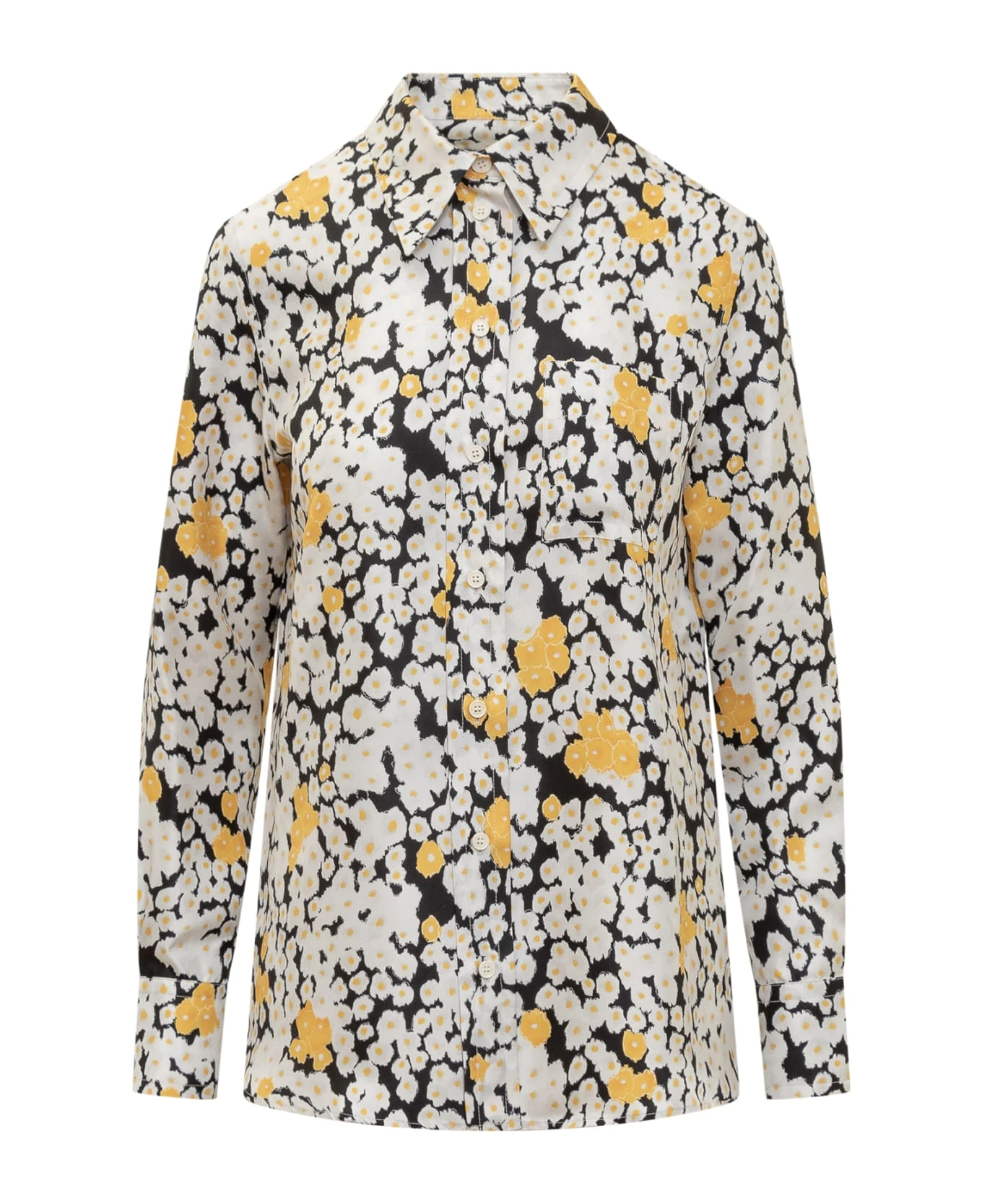Long-sleeved shirt. Classic collar. Button closure. Button cuffs. Small Daisy Bouquets all-over pattern.