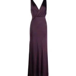 Purple Melodie dress made of jersey fabric, fitted maxi dress, low-cut V-neck, Sleeveless dress with shoulder straps, invisible side zipper, Mélodie jewel buckle on one shoulder