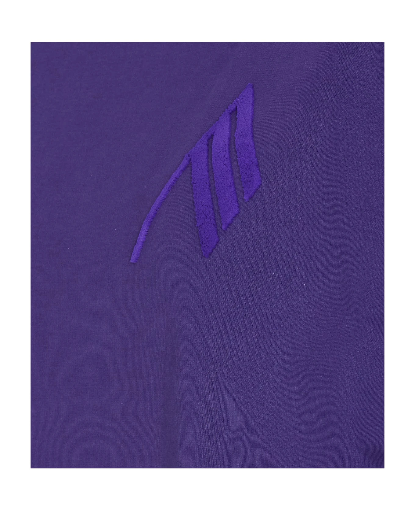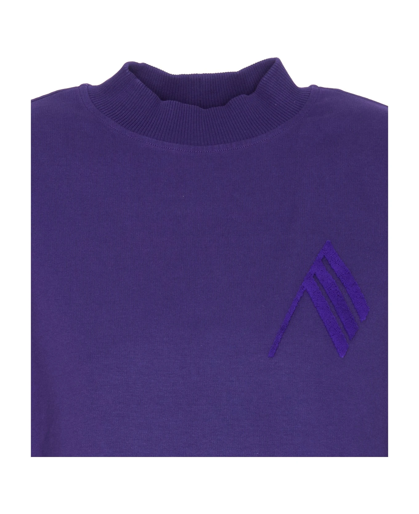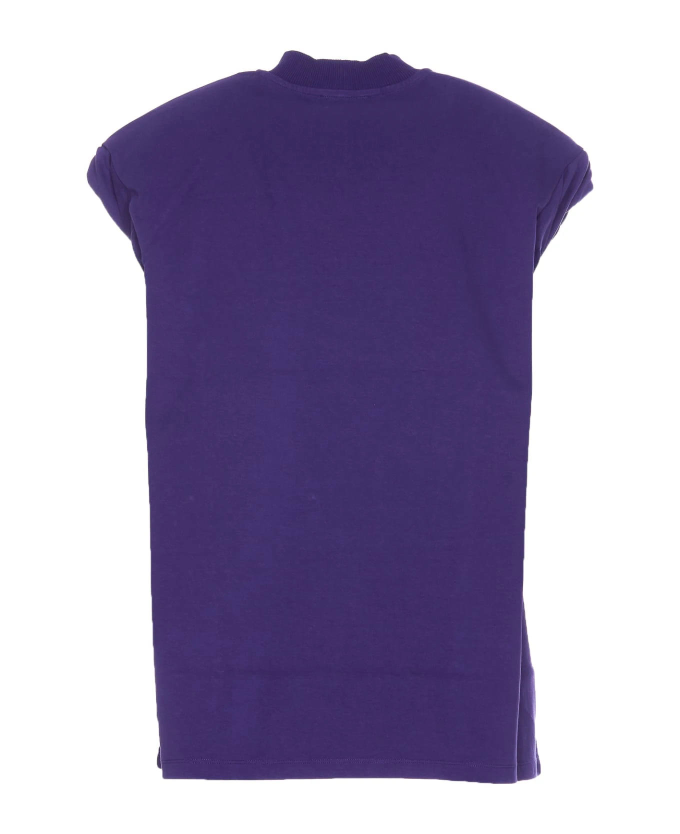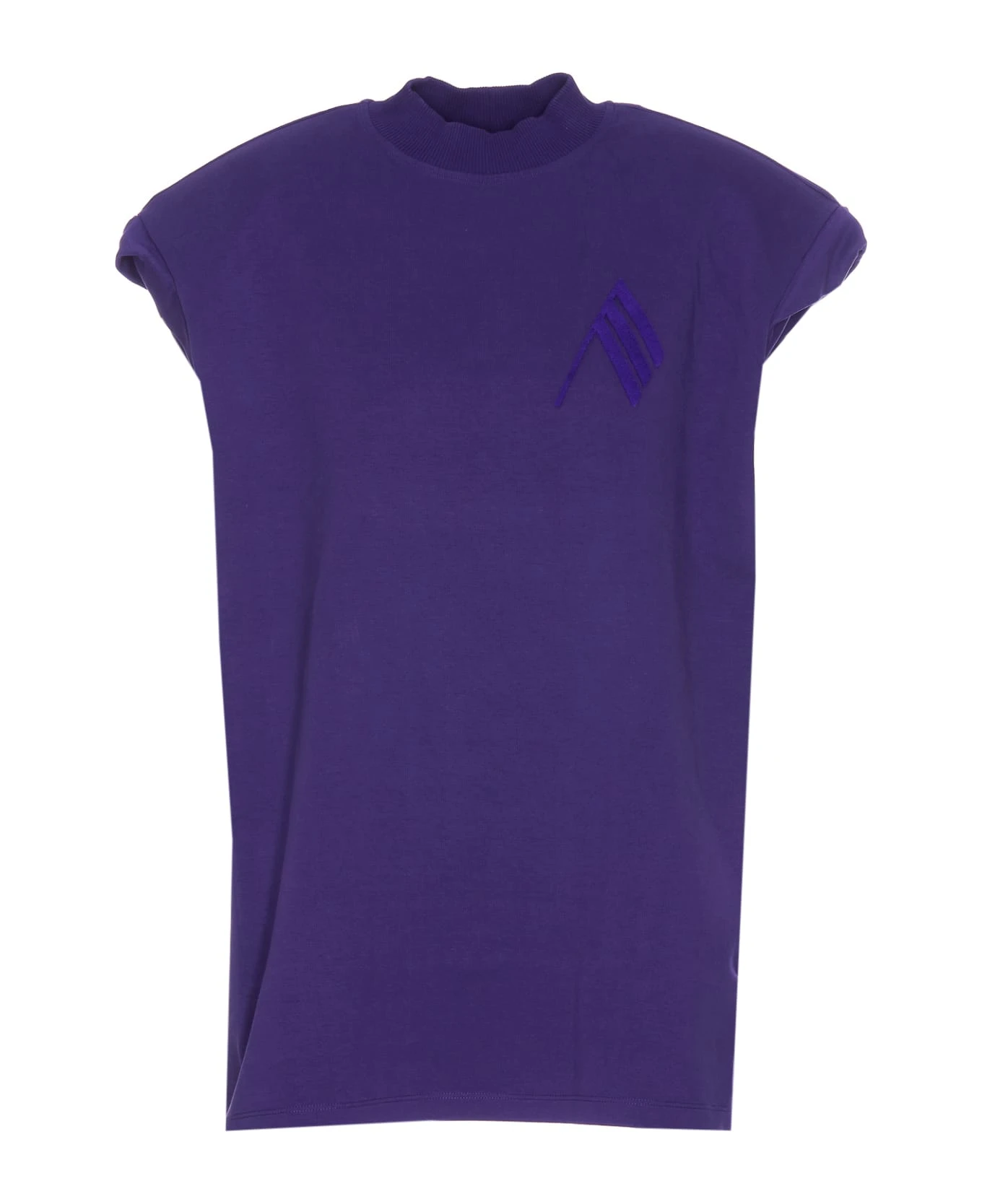 The Attico purple Laurie top, reinforced shoulders, frontal velvet logo, sleeveless, round neck