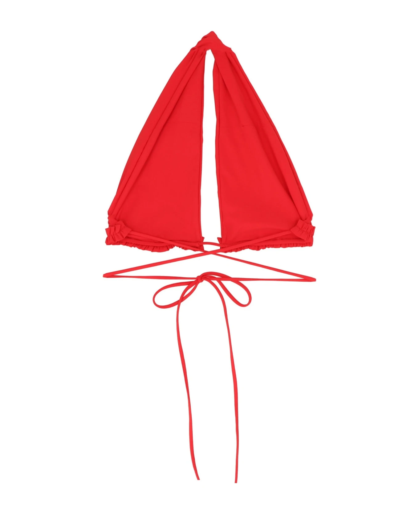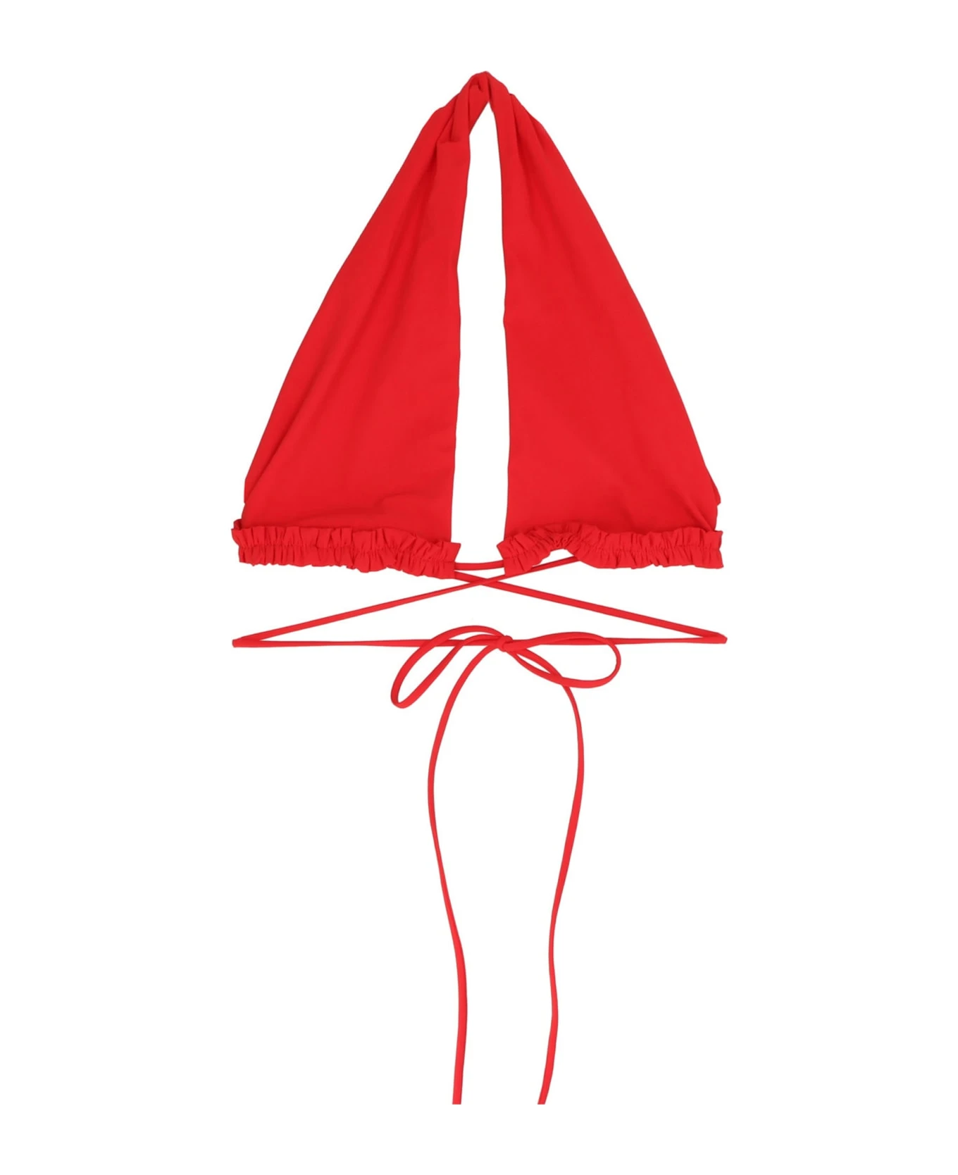 Bikini top crafted in tech fabric with rups, band style, lacing on the neck and a front cut out detail.