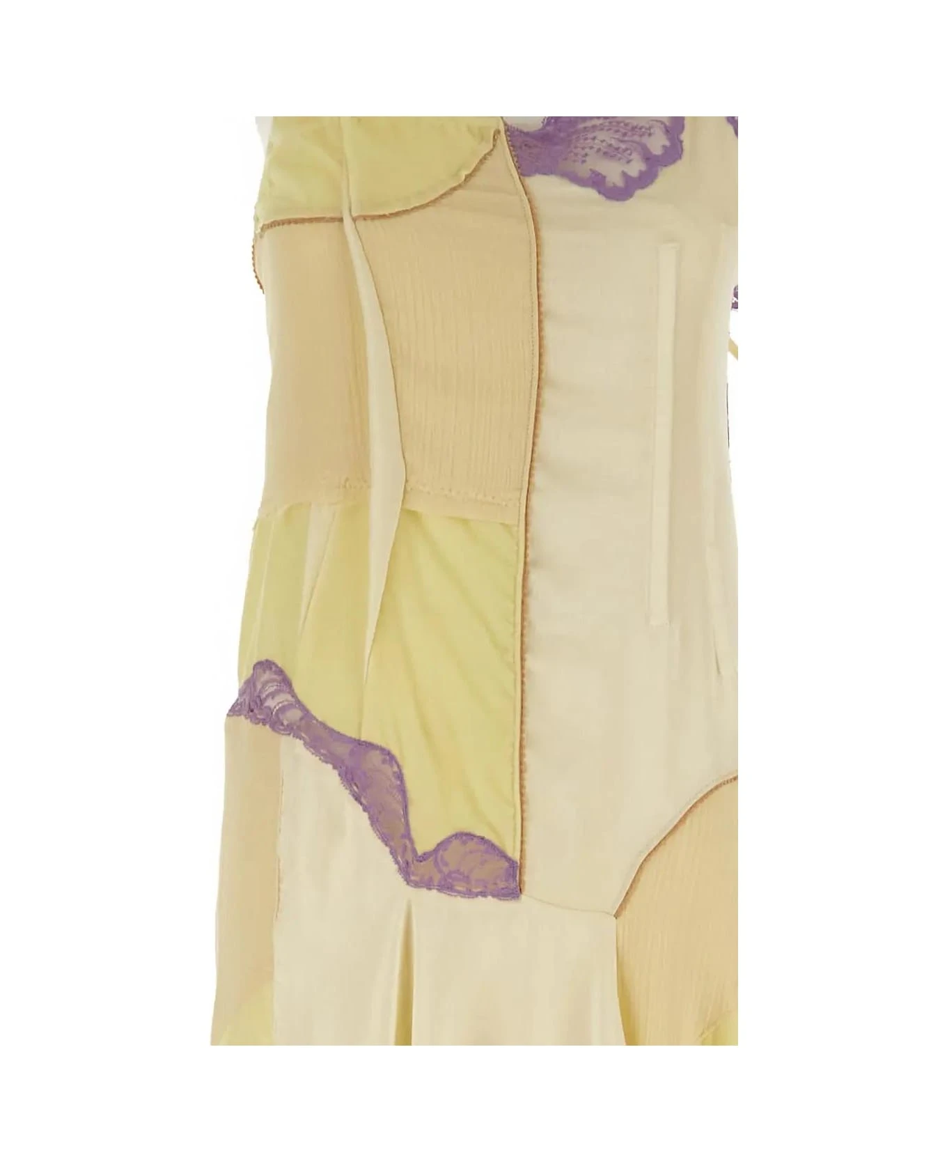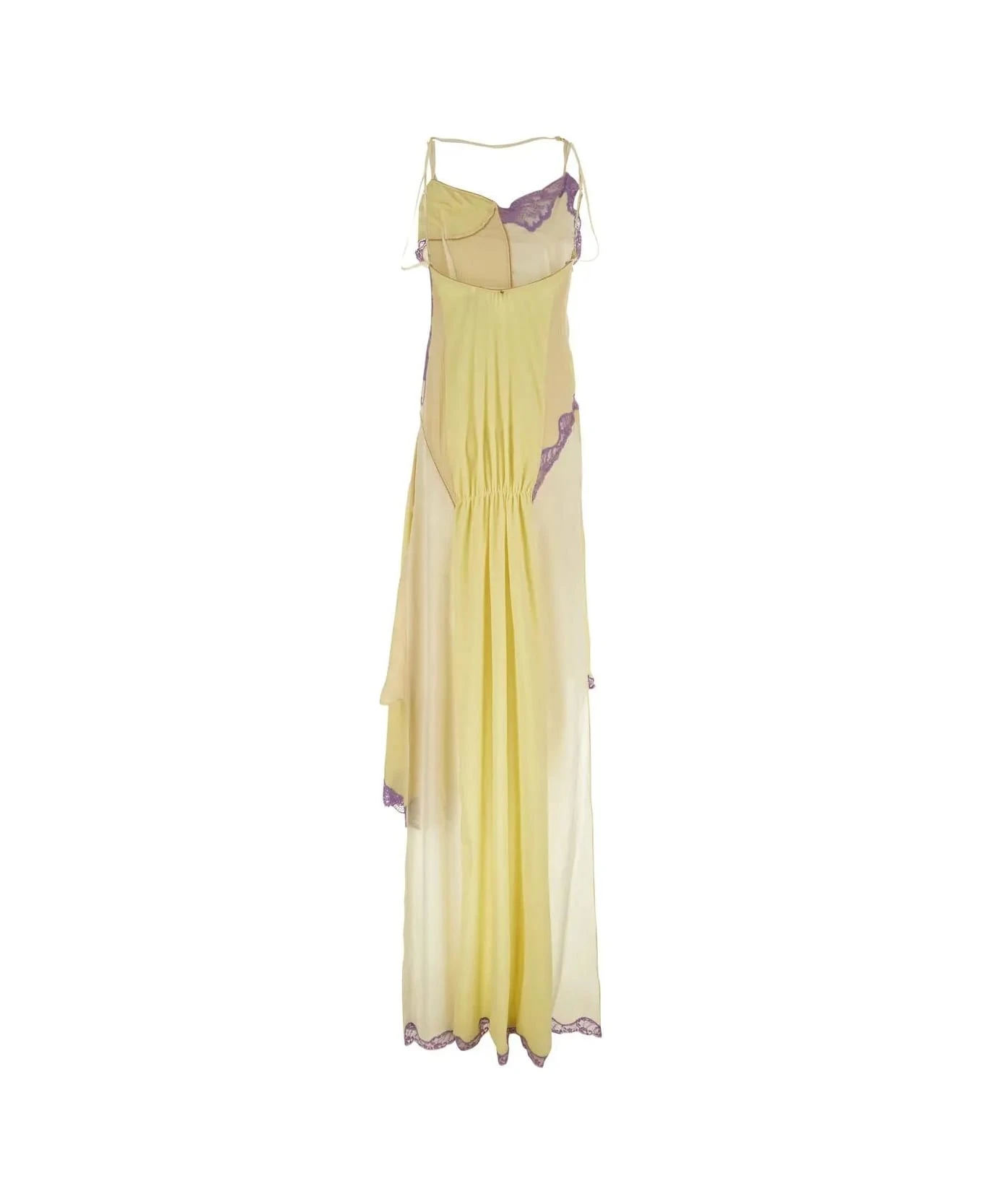 Sportmax dress in multicolor cotton with straps, lilac lace trims and ribbed details.