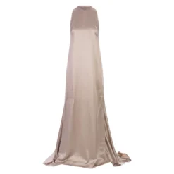 Hoyo long petticoat dress by Max Mara made of precious heavy pink pure silk satin, with an American neckline and armholes finished with a matching fabric trim. The fluid and feminine silhouette is characterised by a wide drape at the back that creates a small train at the bottom. Invisible back zip fastening.