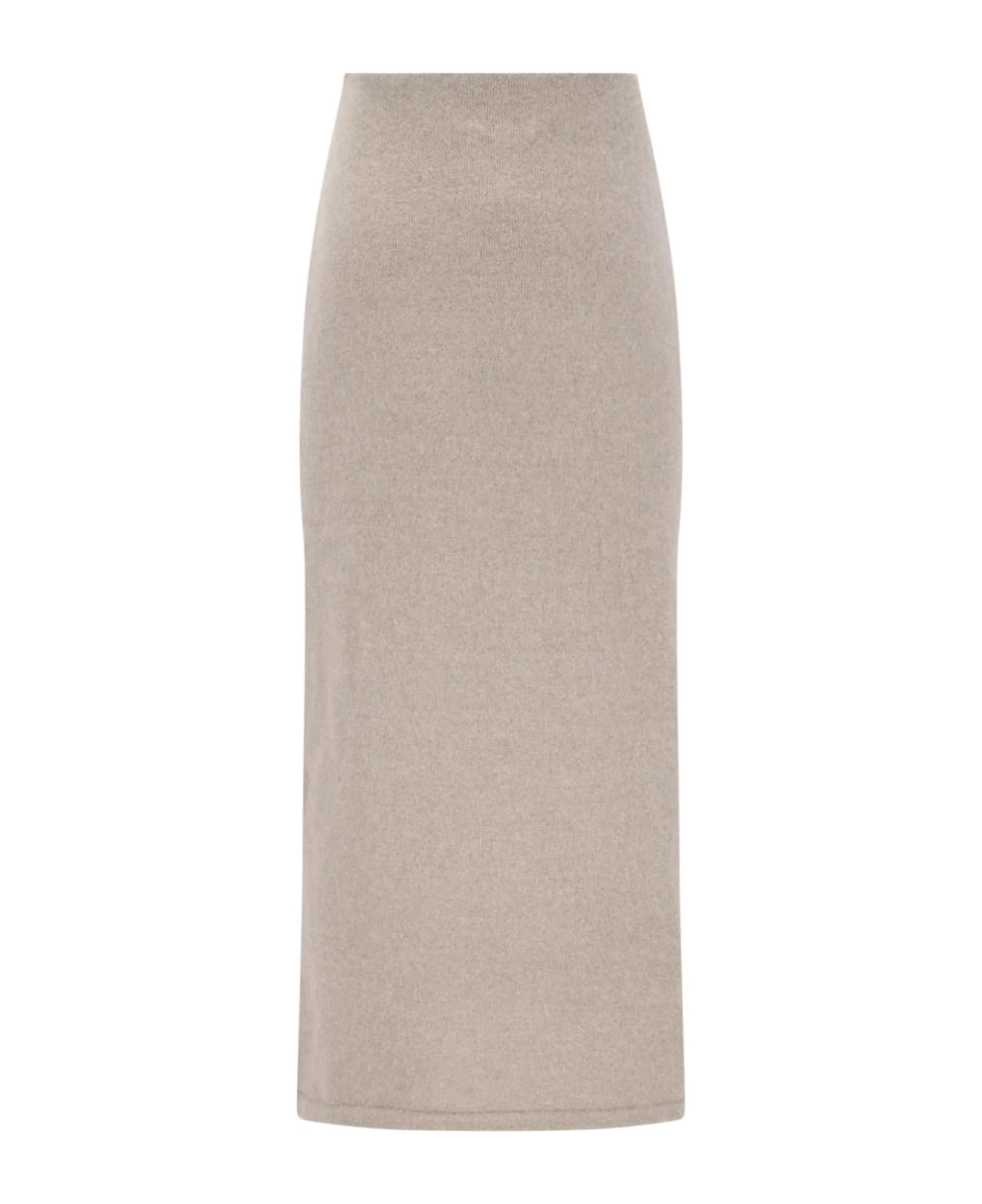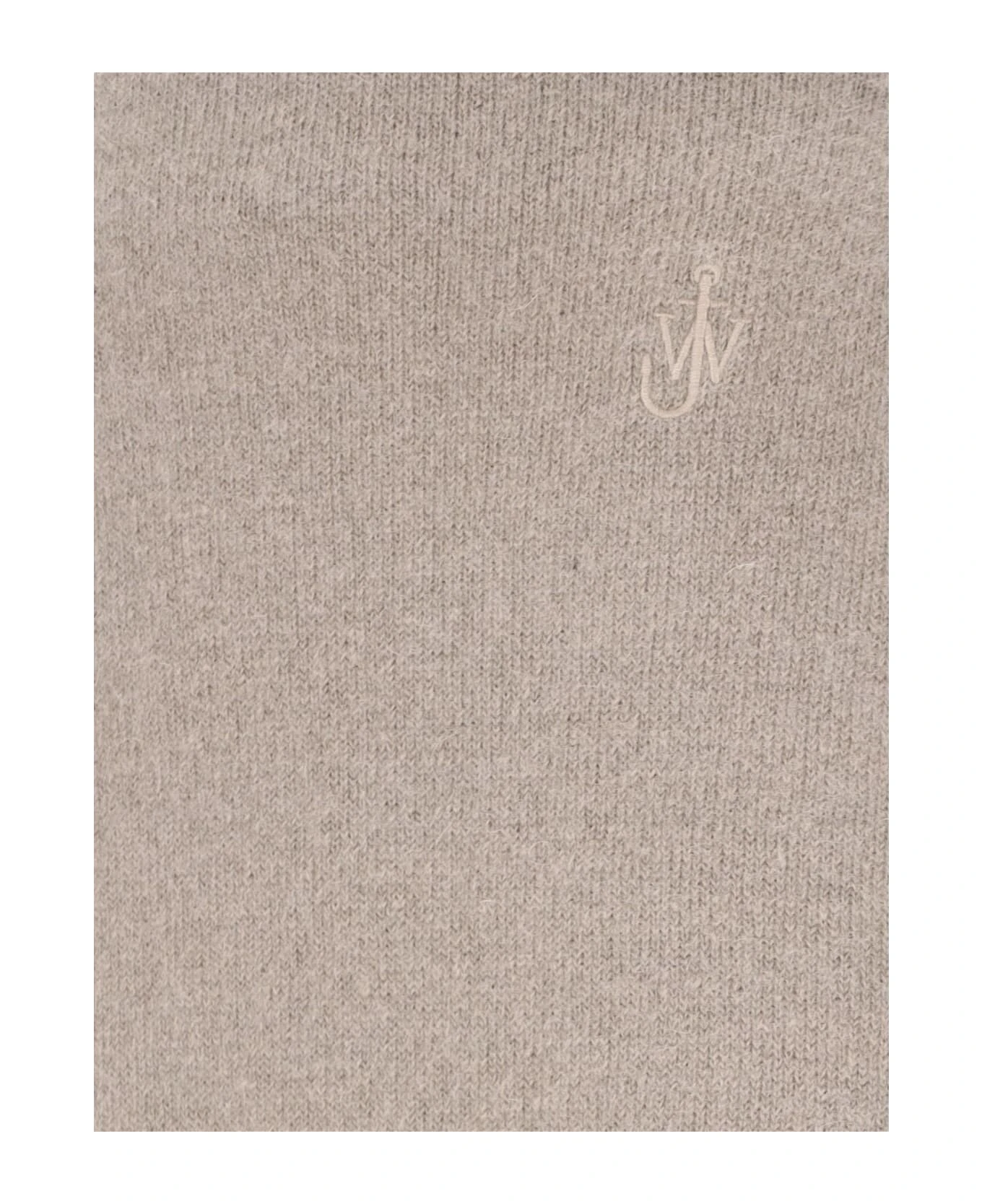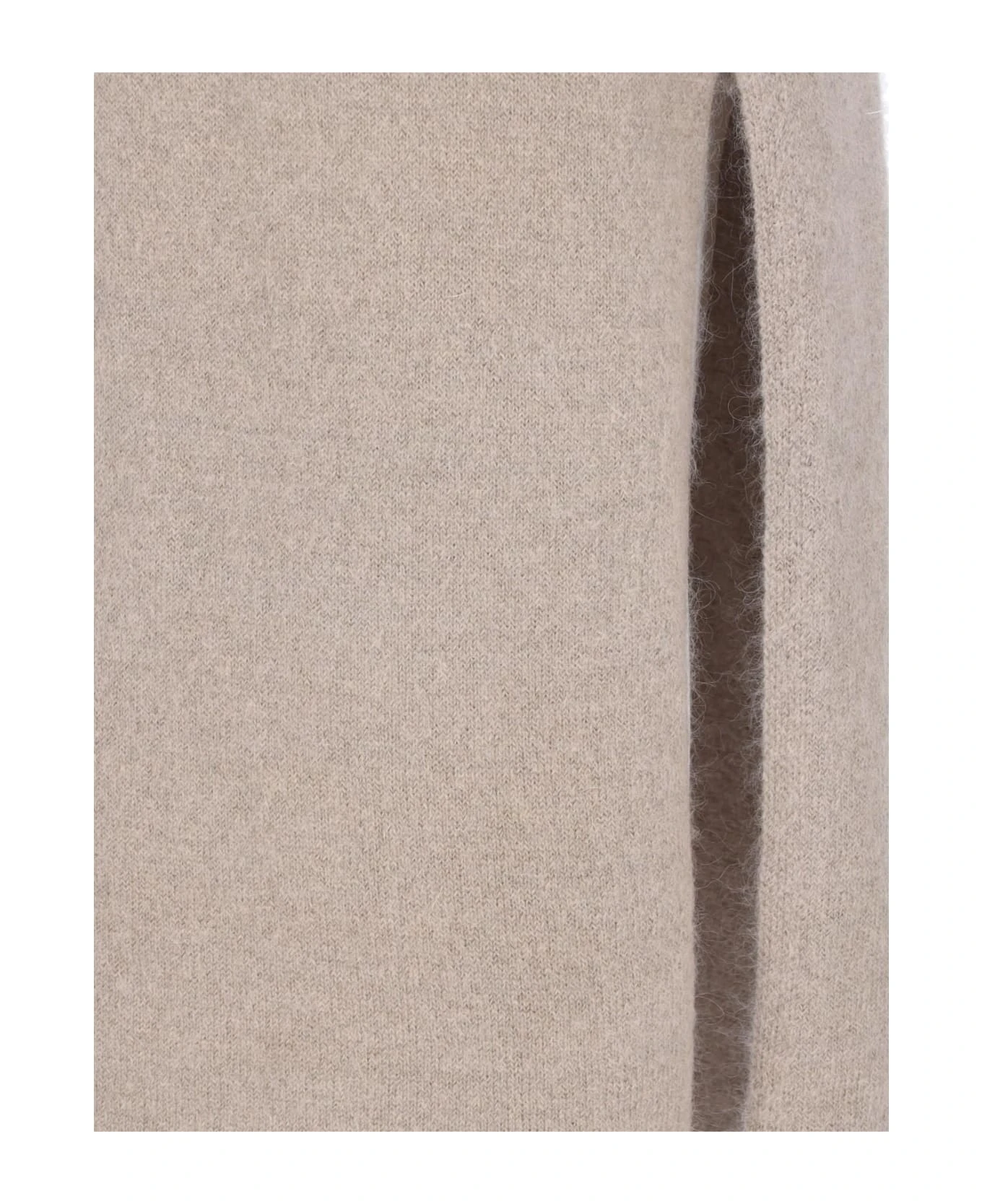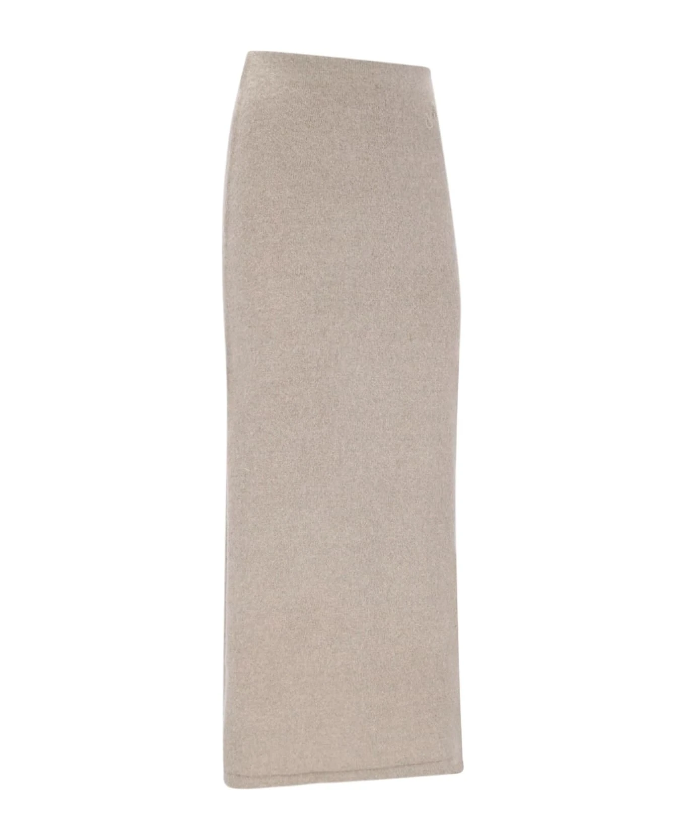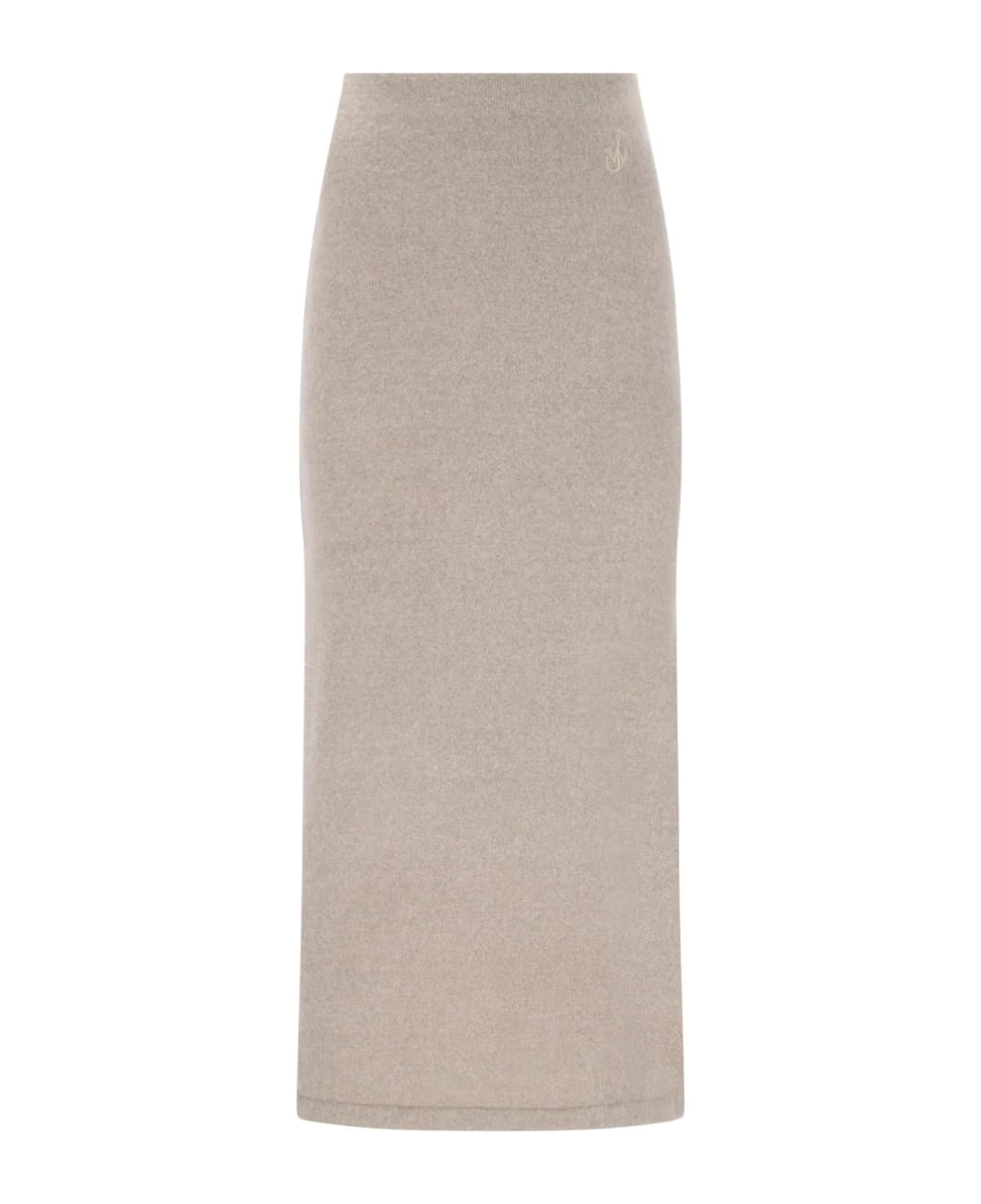 J. W. Anderson maxi sheath skirt in beige mohair blend with high waist, tone-on-tone embroidered logo on the side, side split, and straight hem.