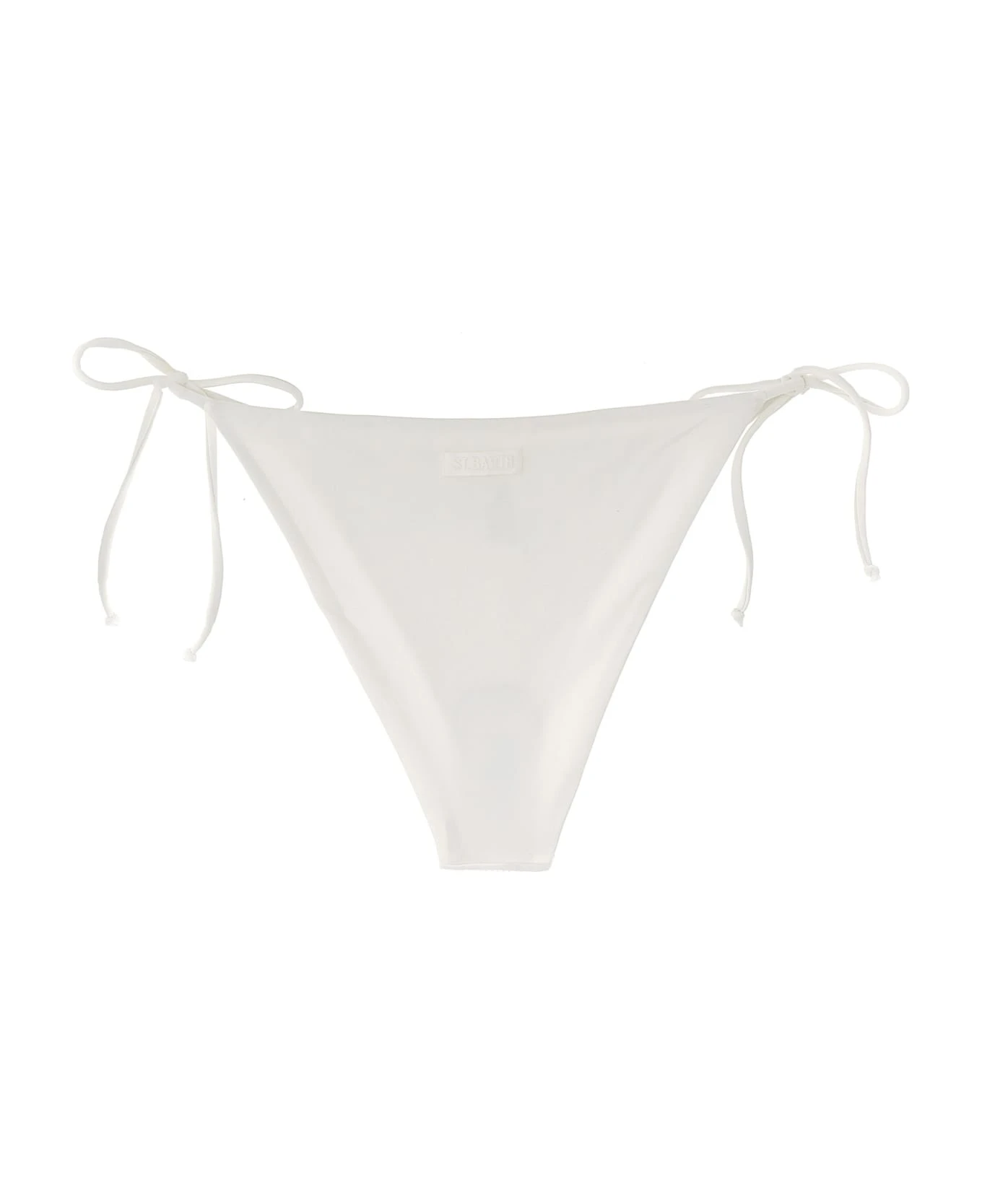 High-cut Virgo bikini bottoms in stretch fabric with rhinestone appliqué on the front and lacing on the sides.