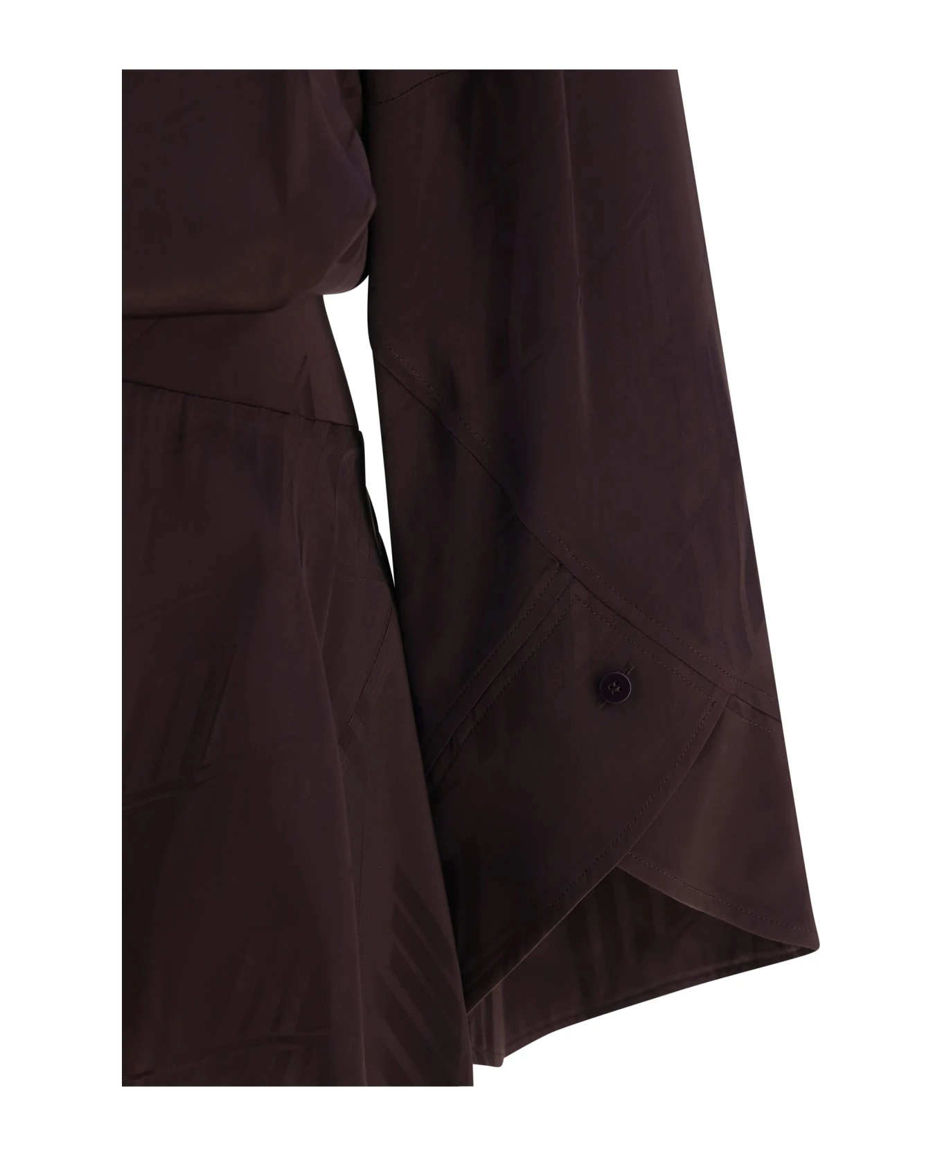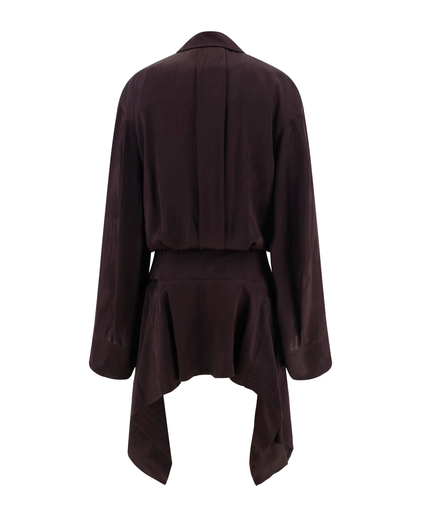 Silk satin mini mischia dress by the attico, classic collar, a front button fastening, wide geometric sleeves, adjustable button cuffs, a monochrome pattern, an asymmetrical mini skirt, side draping, and a regular fit.