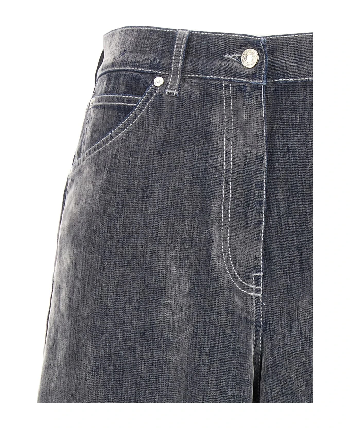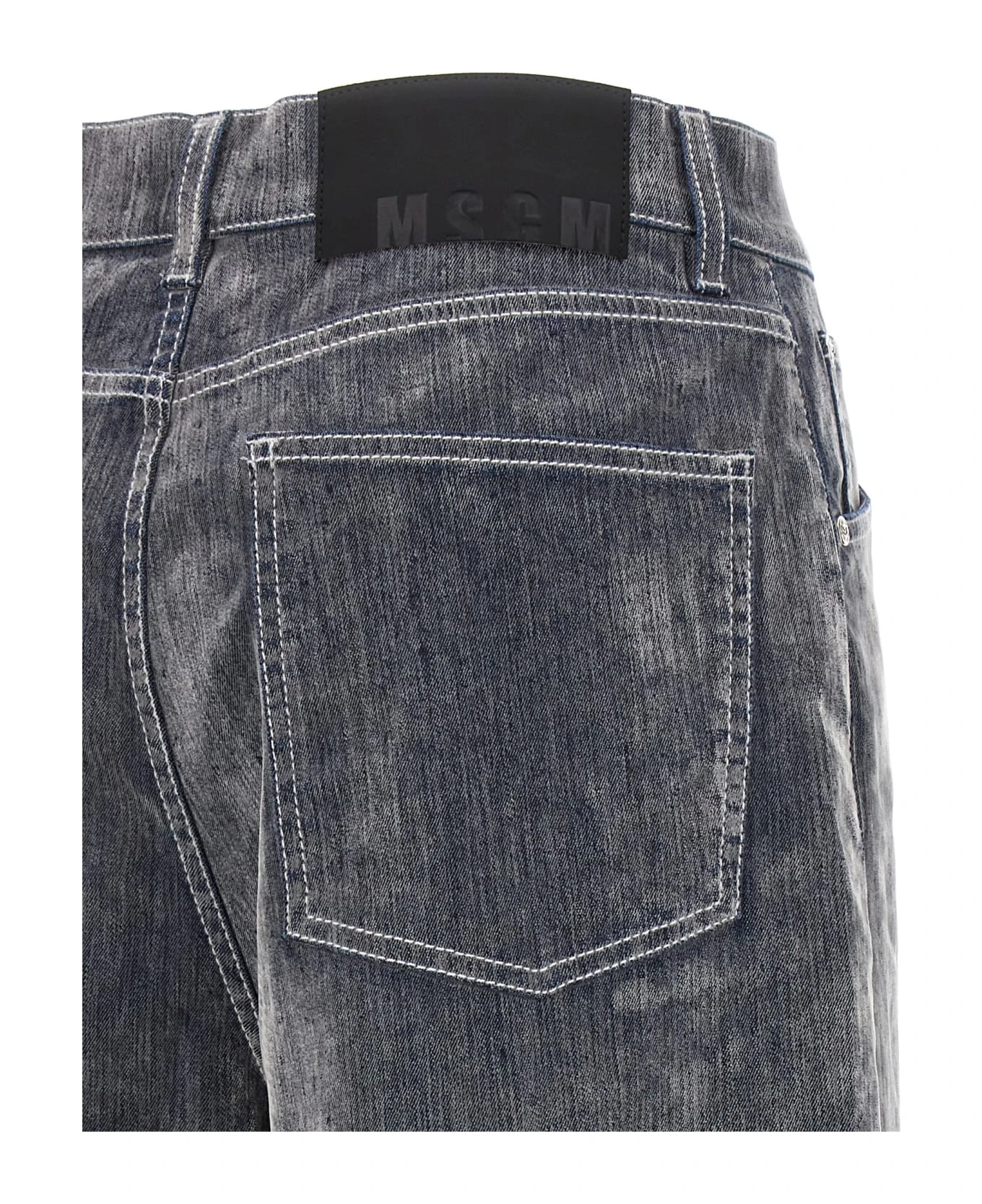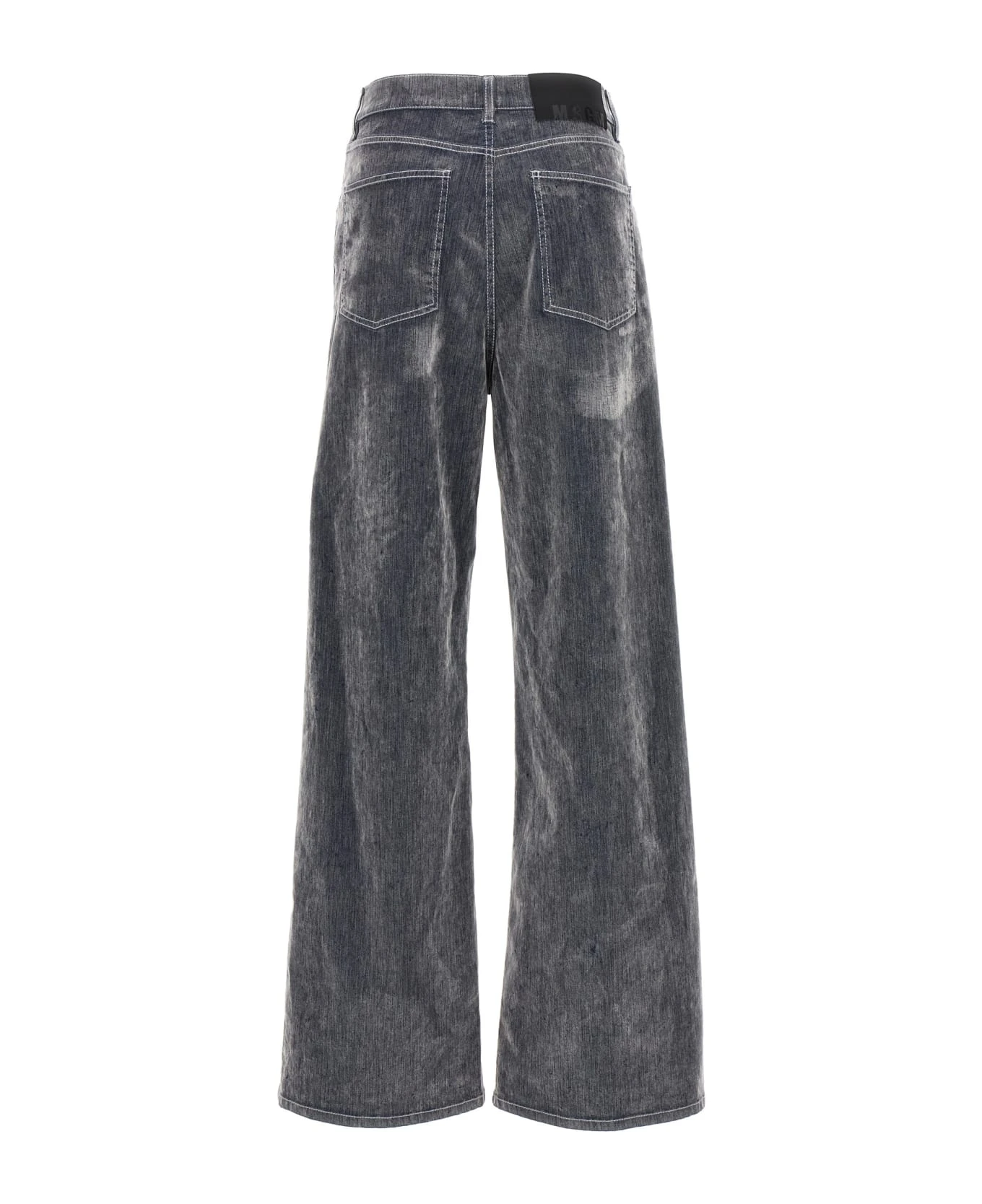 Flocked effect stretch cotton jeans with wide leg, high waist, zip and button closure.