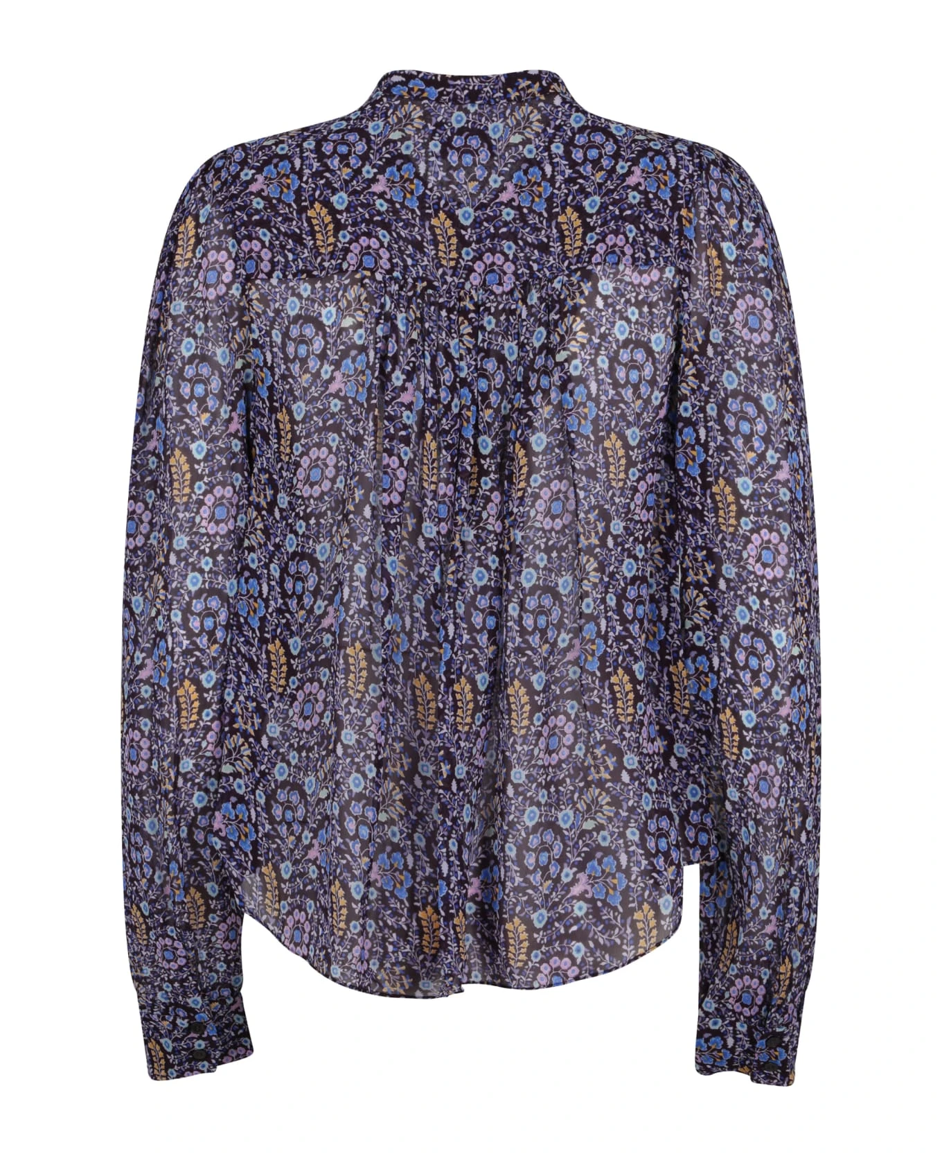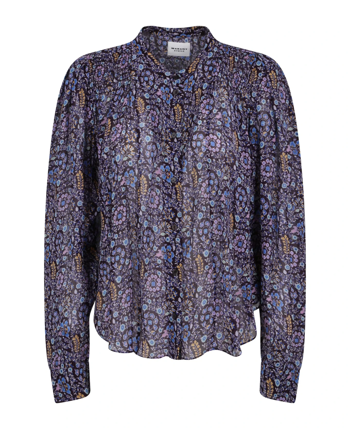 Noeline blousa by marant etoile, round neckline, front button closure, adjustable cuffs, semi-transparent fabric, multicolored floral pattern, regular fit.