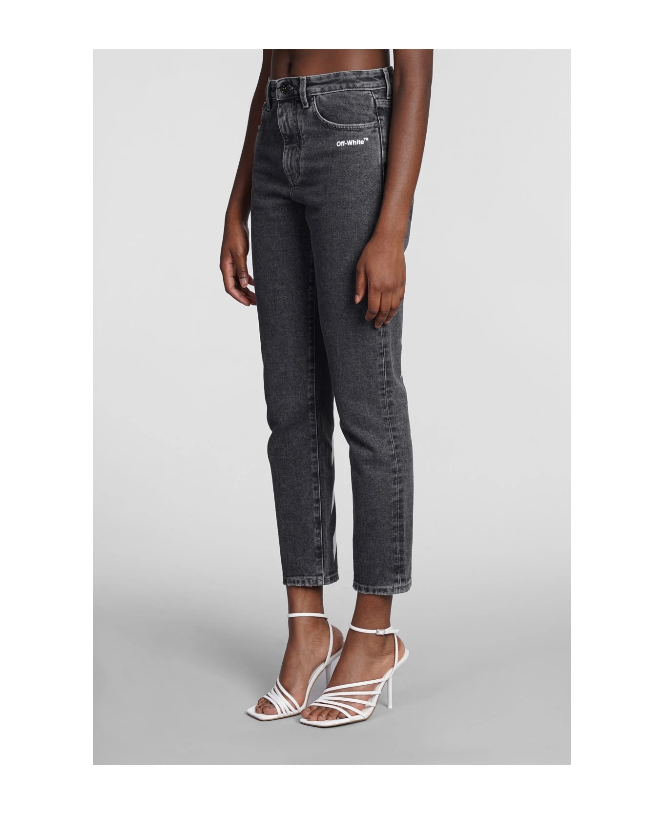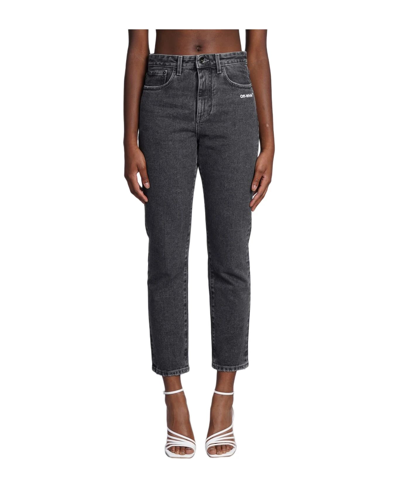 Jeans in grey denim, button and zip closure, waist belt loops, five pockets, logo print back, 100% cotton, Made in Italy, model is 180 cm and wears size 27