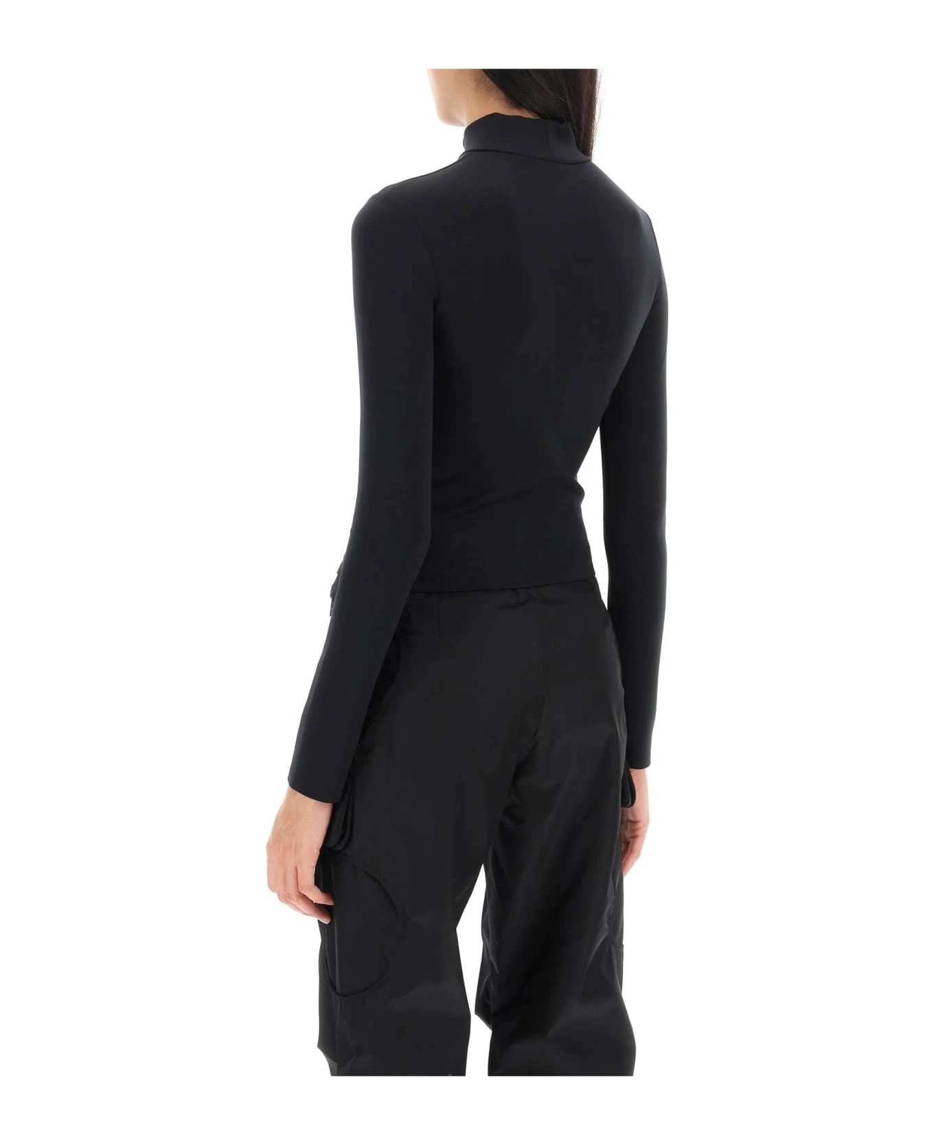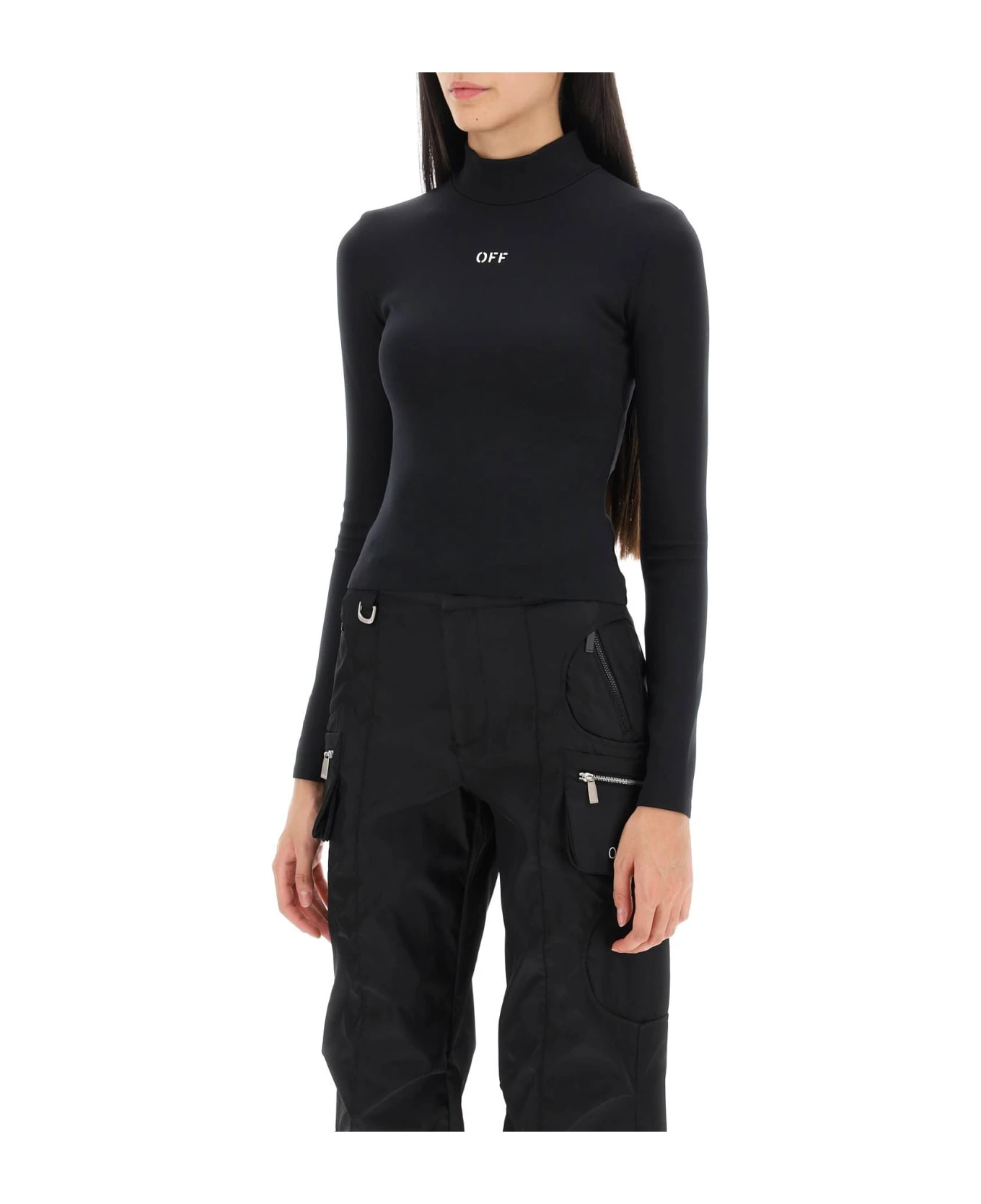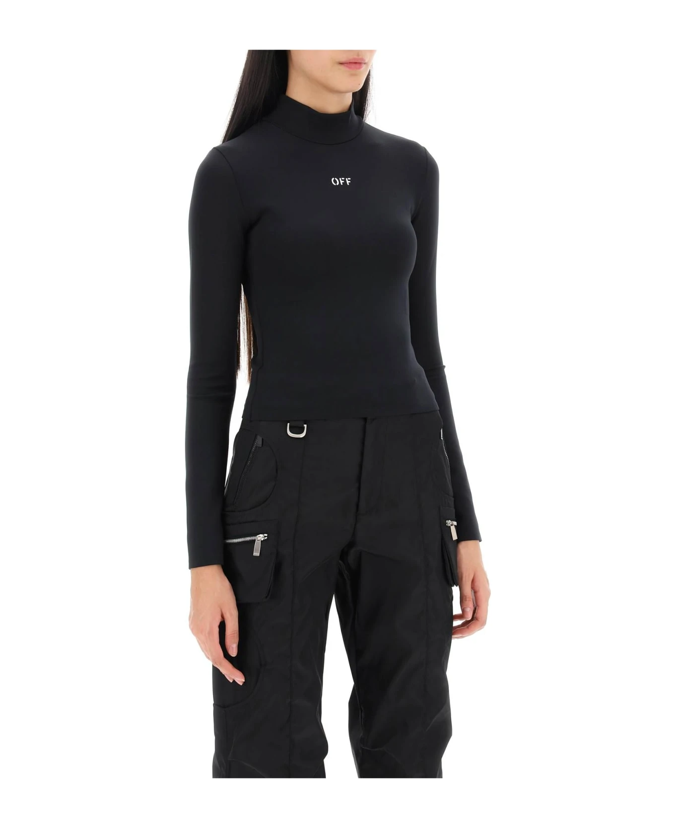 Long-sleeved top by Off-White crafted in solid techno jersey with OFF print on the chest. It features stand collar. Fitted with cropped cut. The model is 177 cm tall and wears size XS.