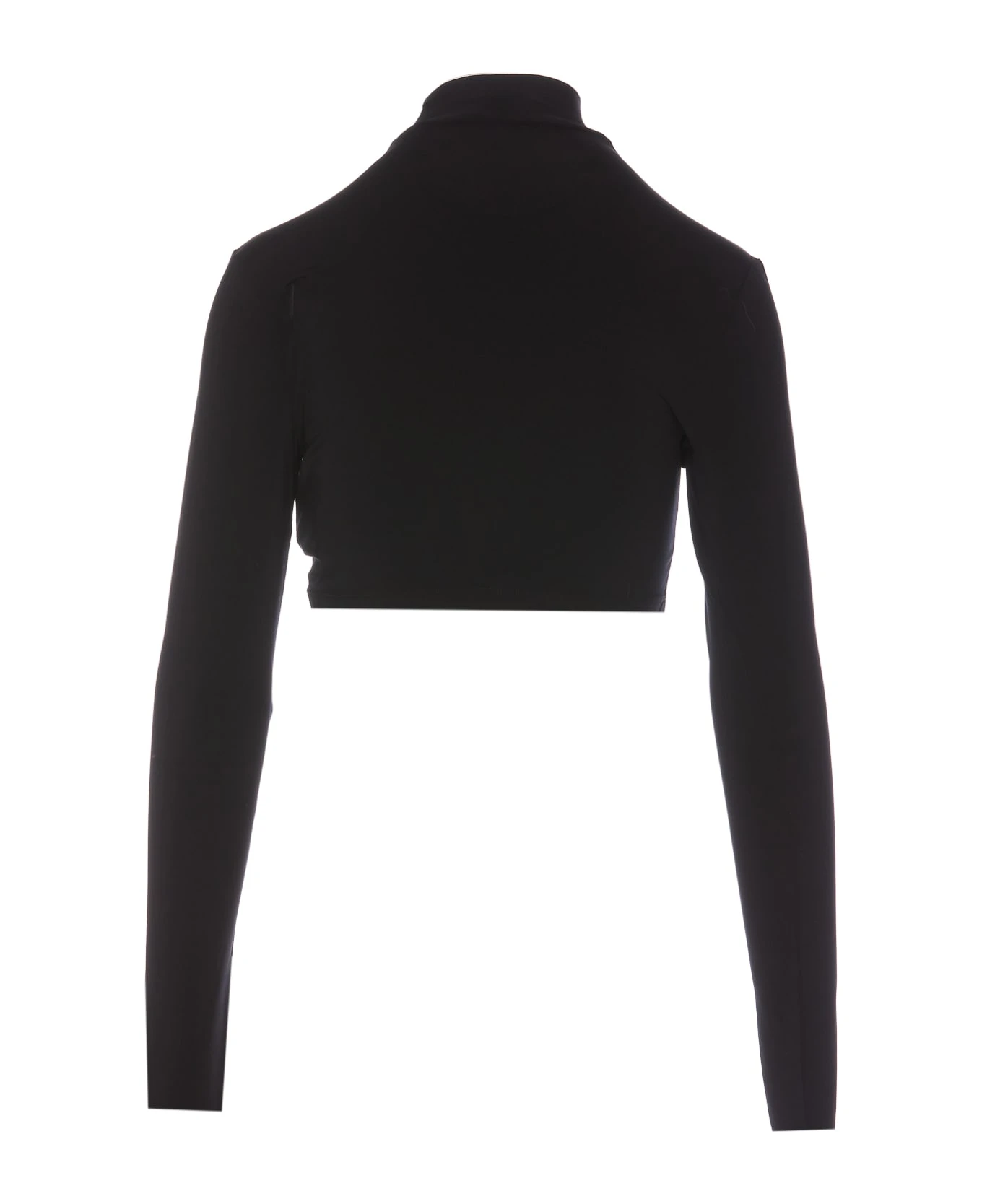 Versace Light Blue Crop Top With All-over Logo Lettering And Medusa Detail In Cotton Blend Woman