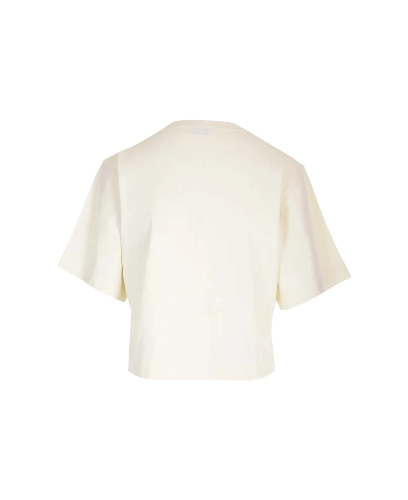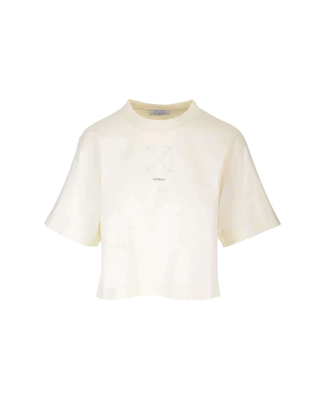 SMALL ARROW PEARLS CROP TEE BEIGE BLACK