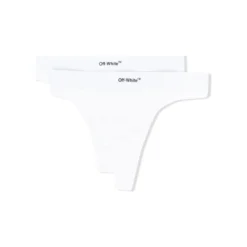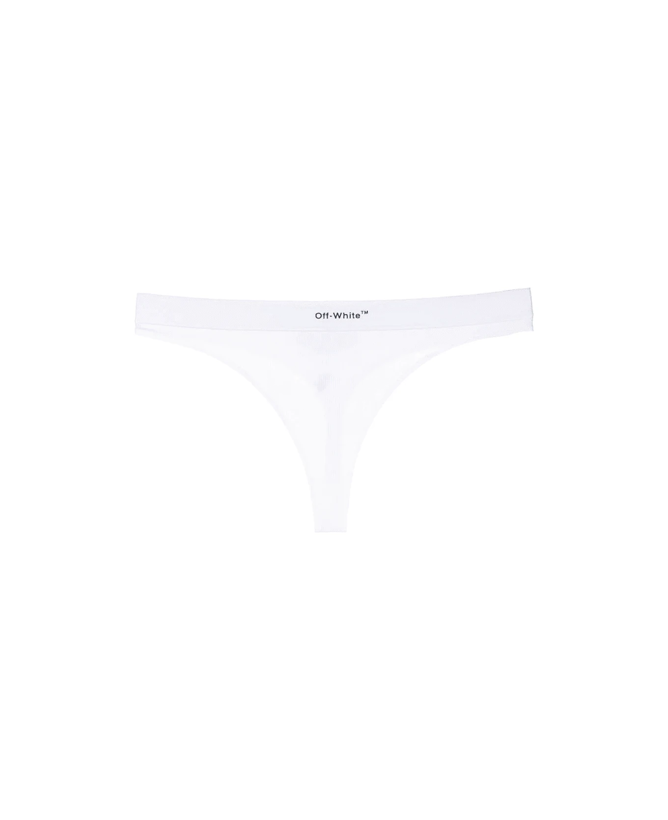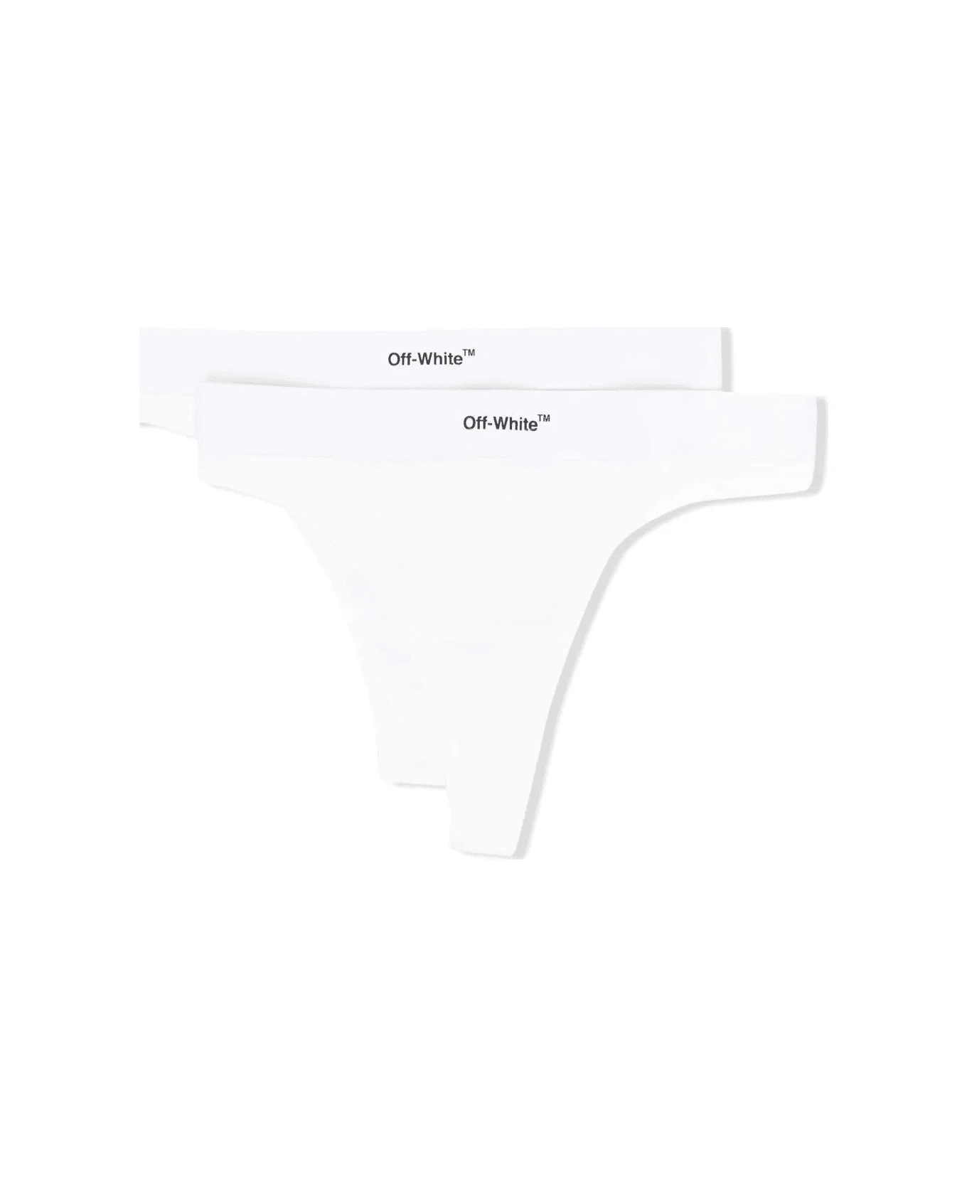 Set of two Off-White women’s thongs made of white ribbed stretch fabric and finished with a contrasting white logoed elastic band.
