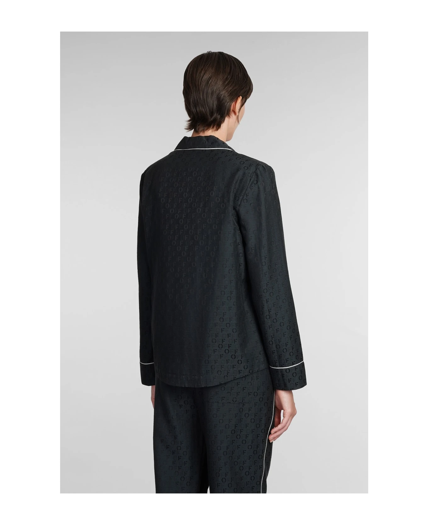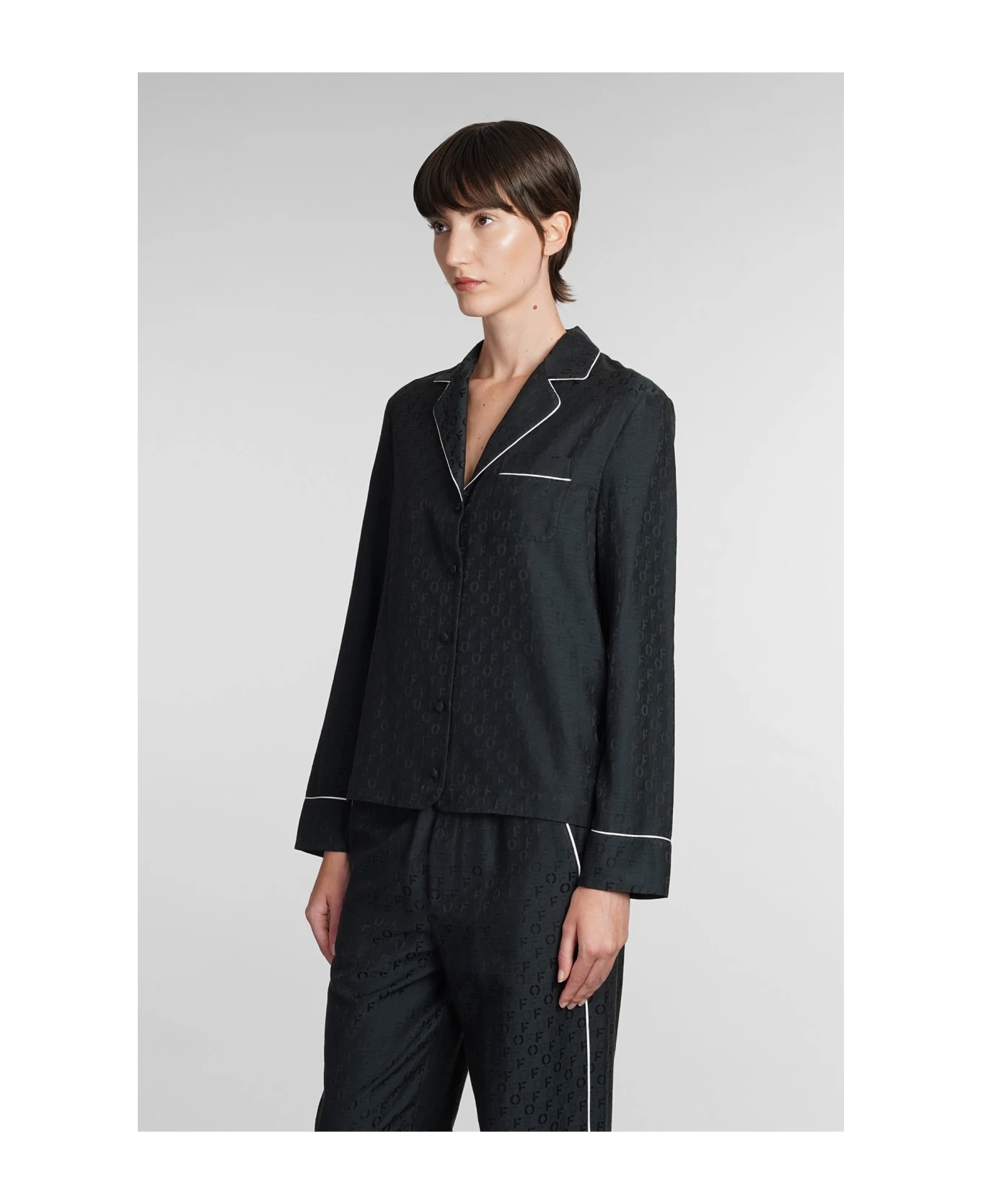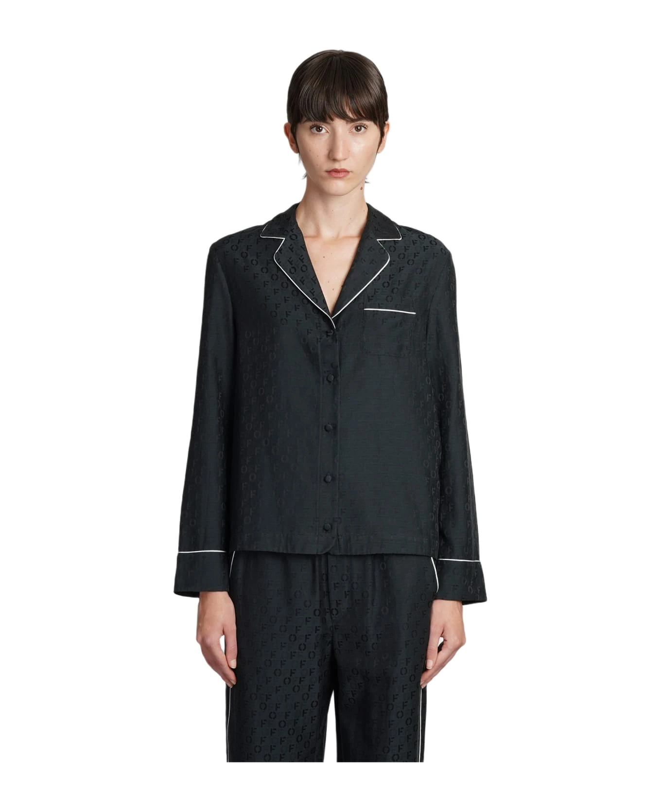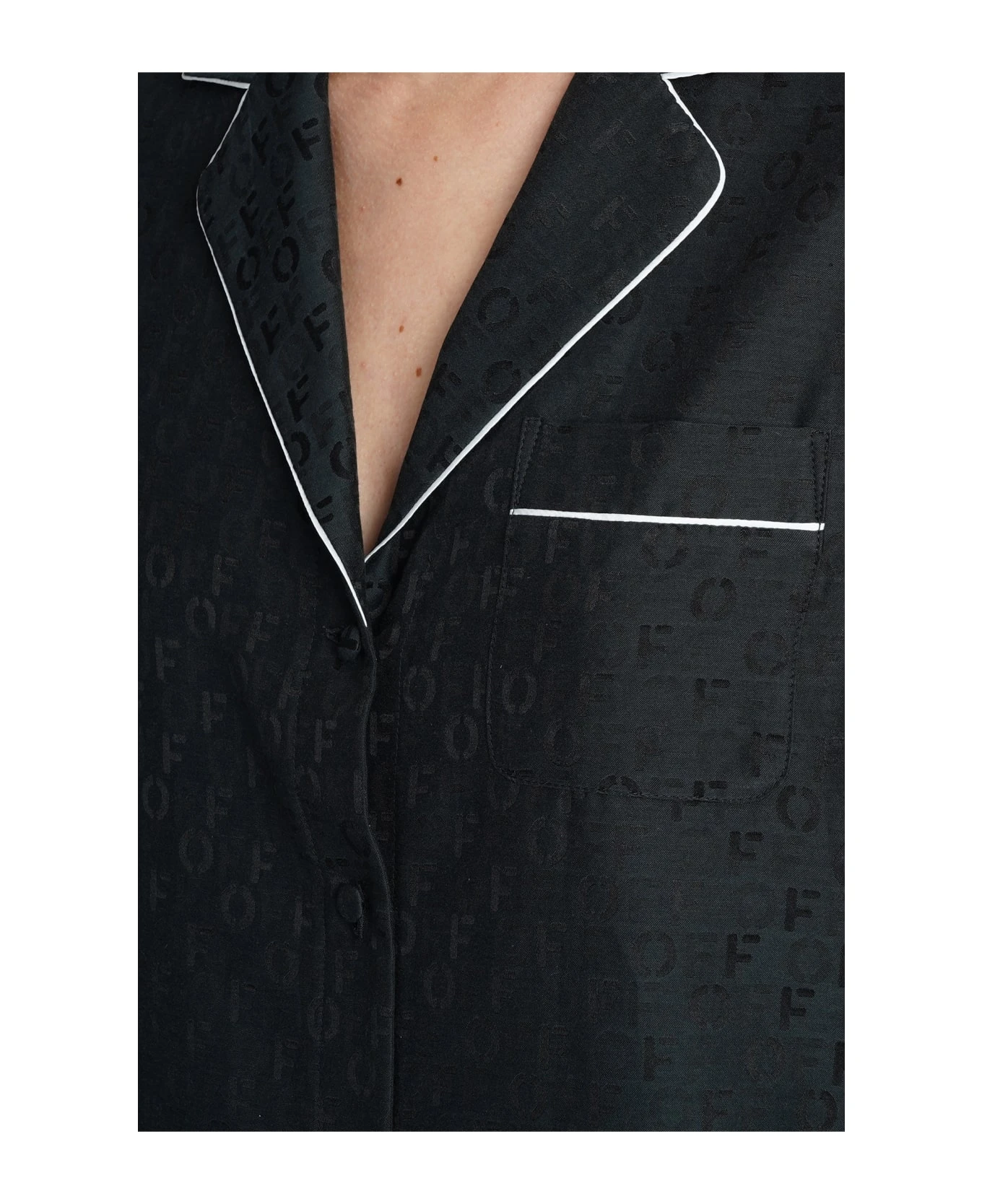 Shirt in black silk, revers, frontal buttoning, long sleeves, contrast hem, monogram print, breast pocket, 55% silk, 45% cotton, Made in Italy, model is 180 cm and wears size 40