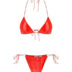 Microkini set by Oséree made of latex with adjustable ties. The model is 177 cm tall and wears size S.