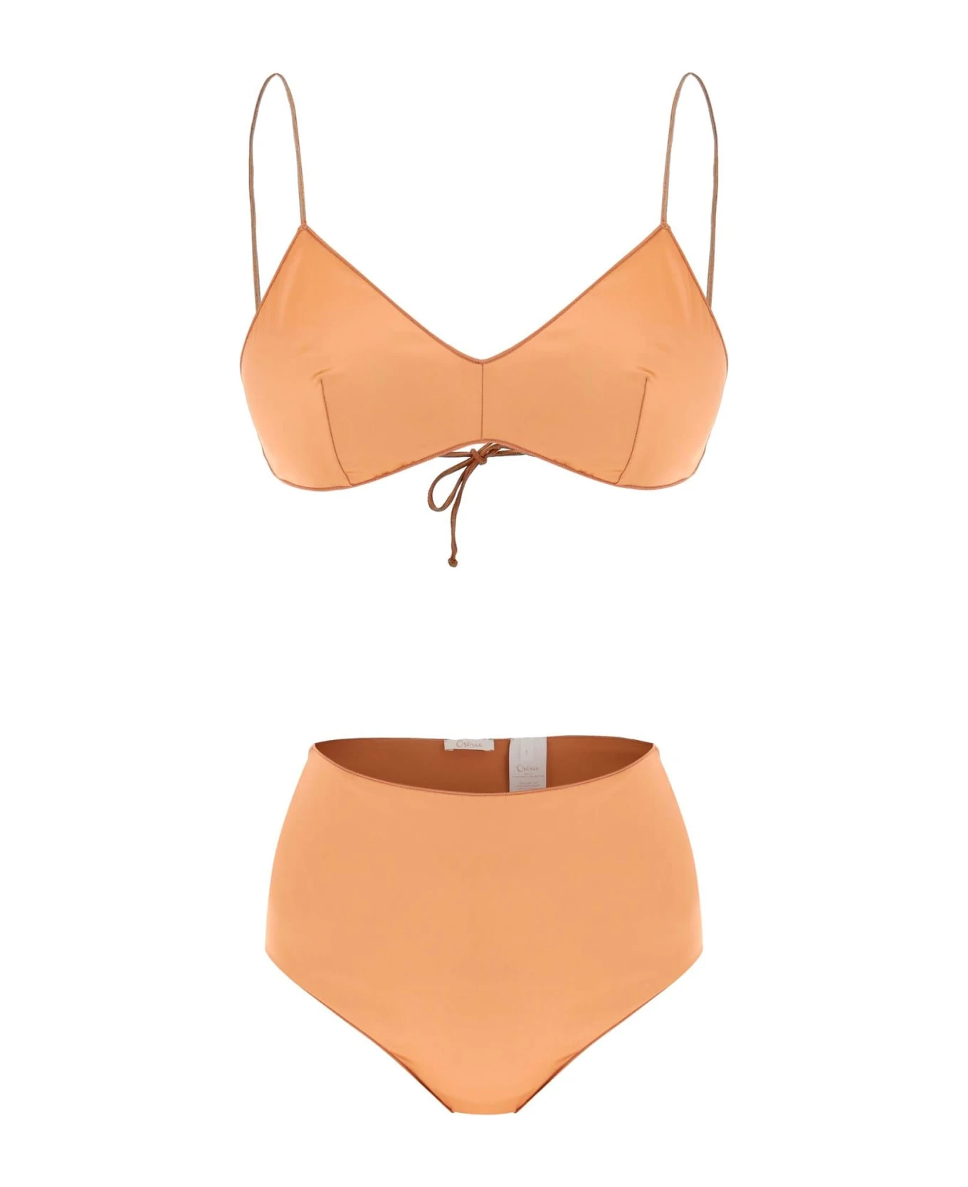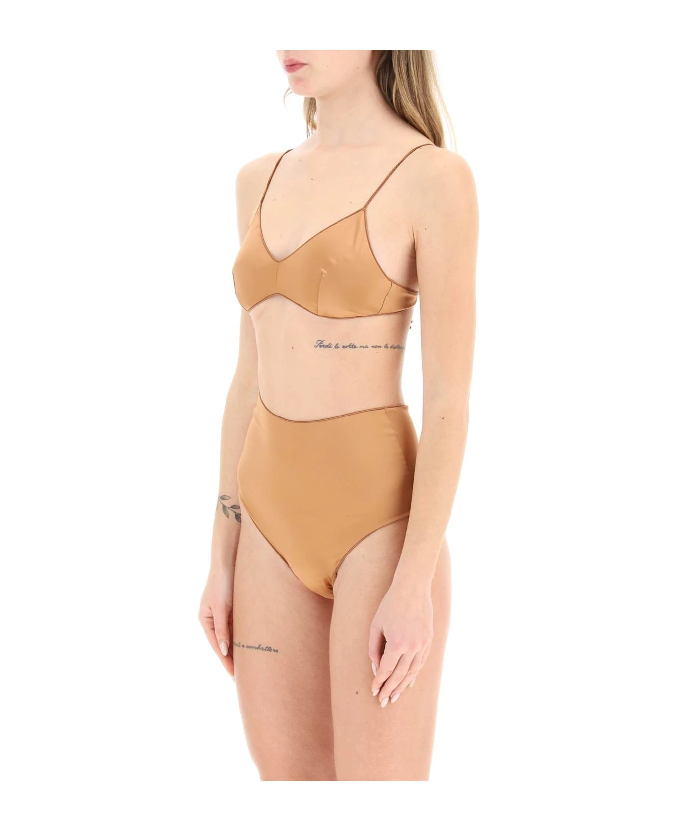 Oséree bikini set crafted in satin and featuring a high-waisted slip. The model is 177 cm tall and wears size S.
