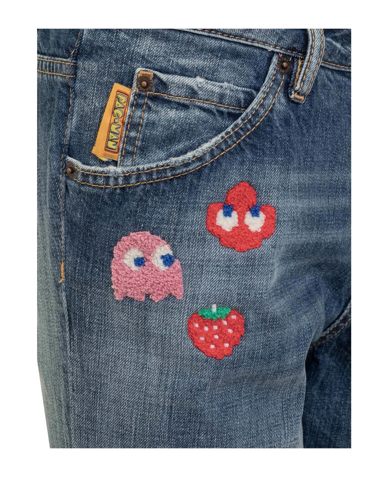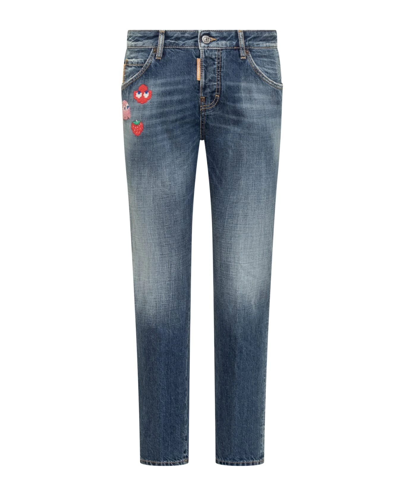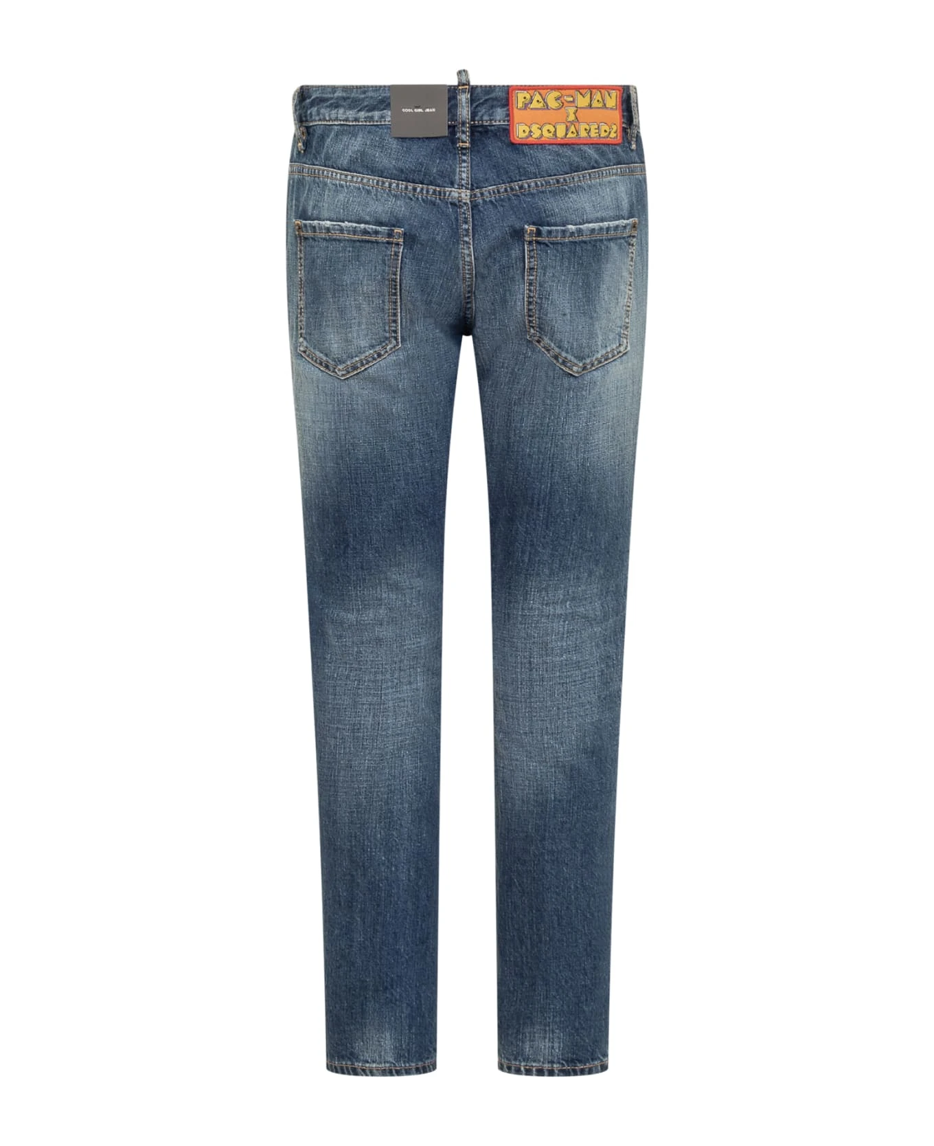 Long jeans. Button closure. Belt loops. Five pockets. Pac-Man x Dsquared2 logo embroidered on the front and with patch on the back.