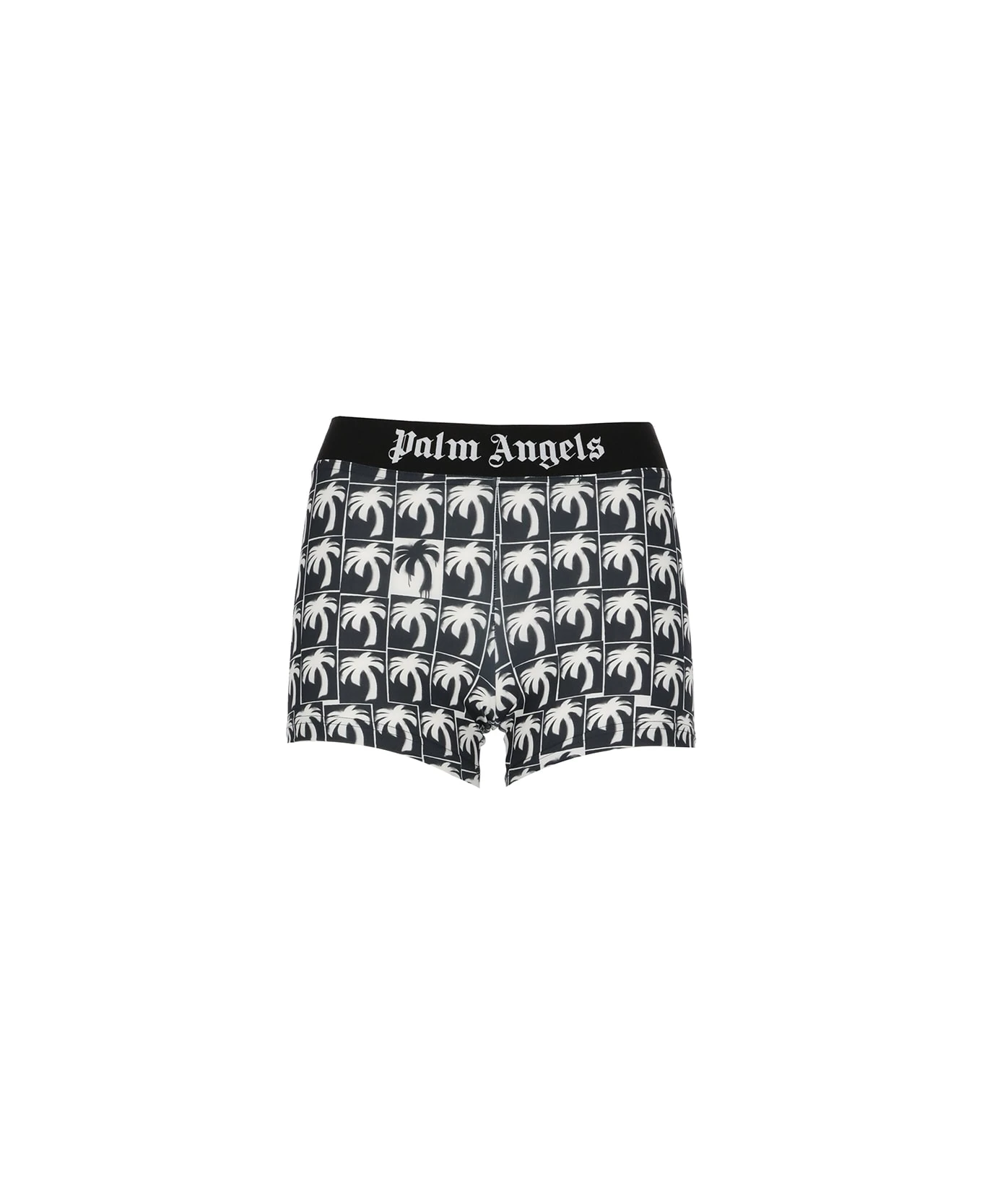 Short Leggings With Palm Logo from Palm Angels: – Black and white Palm Angels short leggings for woman
