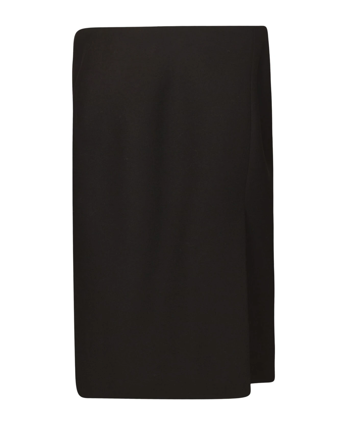 Skirt made of double wool cloth with high waist midi line. Wrap-around opening model characterized by maxi metal buttons with engraved triangular logo. Viscose lining. – Wool Skirt